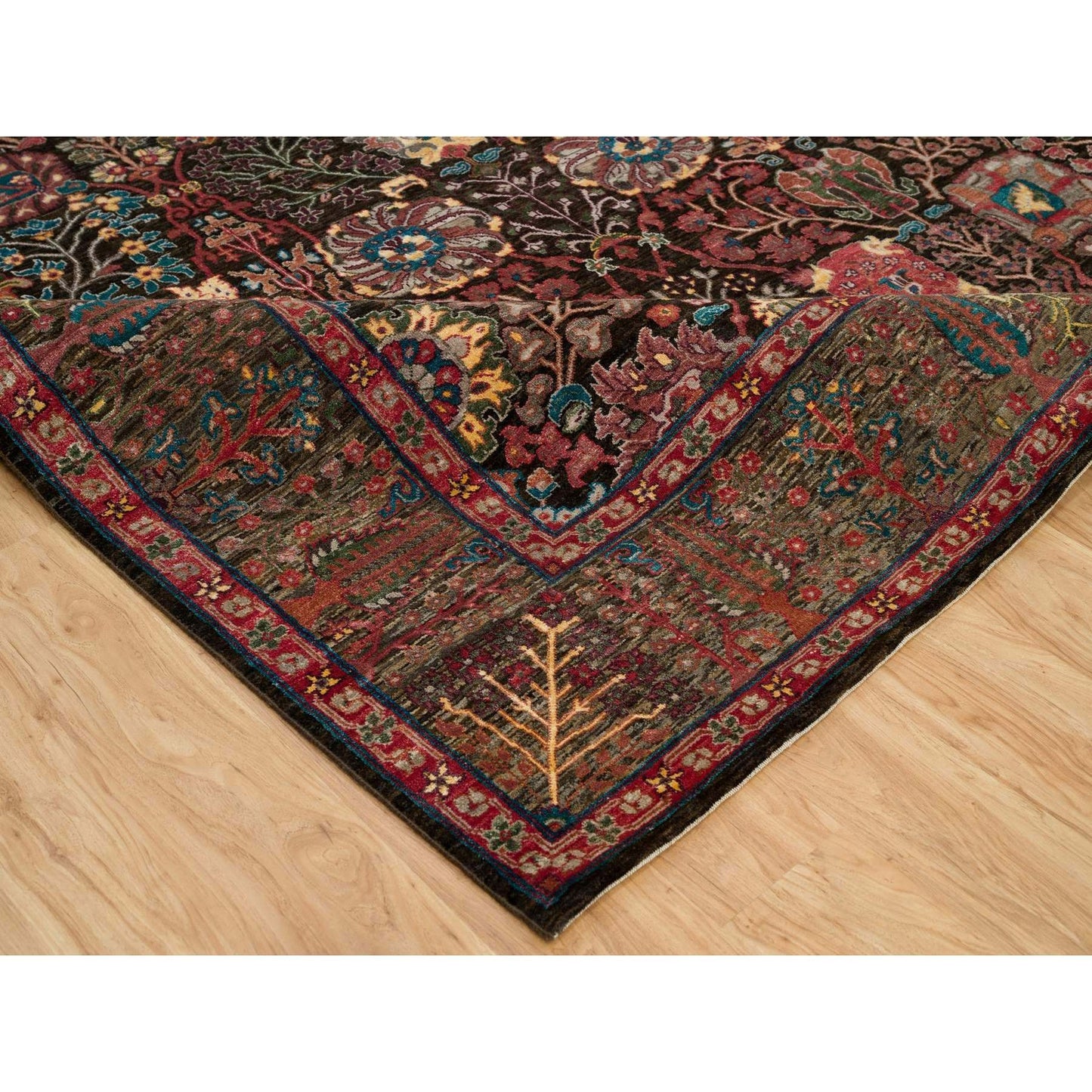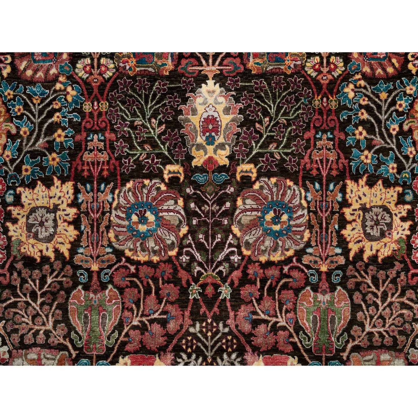 9'1"X12' Black Wool And Silk Hand Knotted Tebraz Vase Fine Oriental Rug