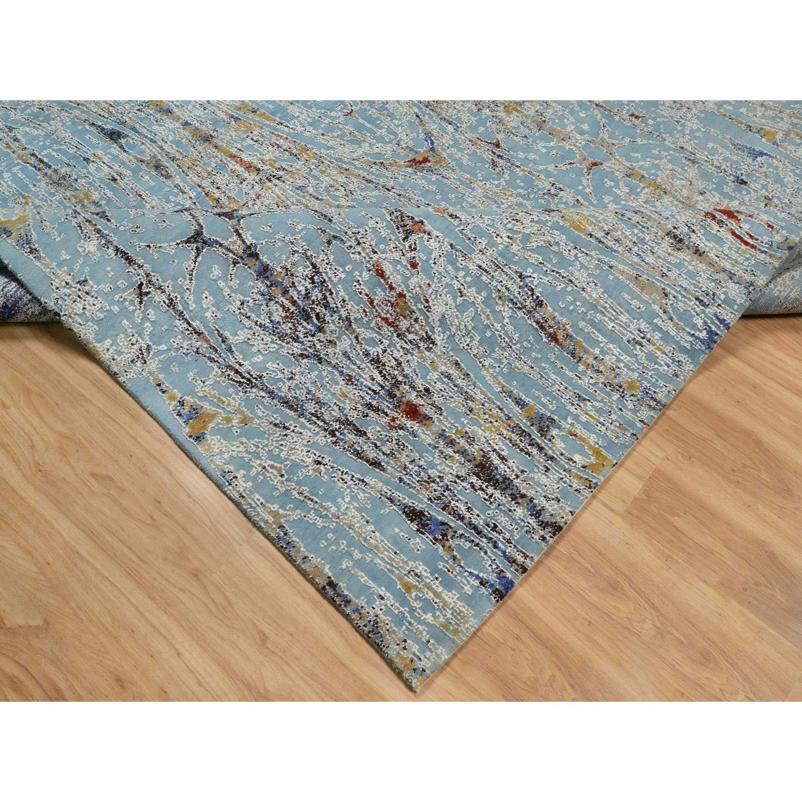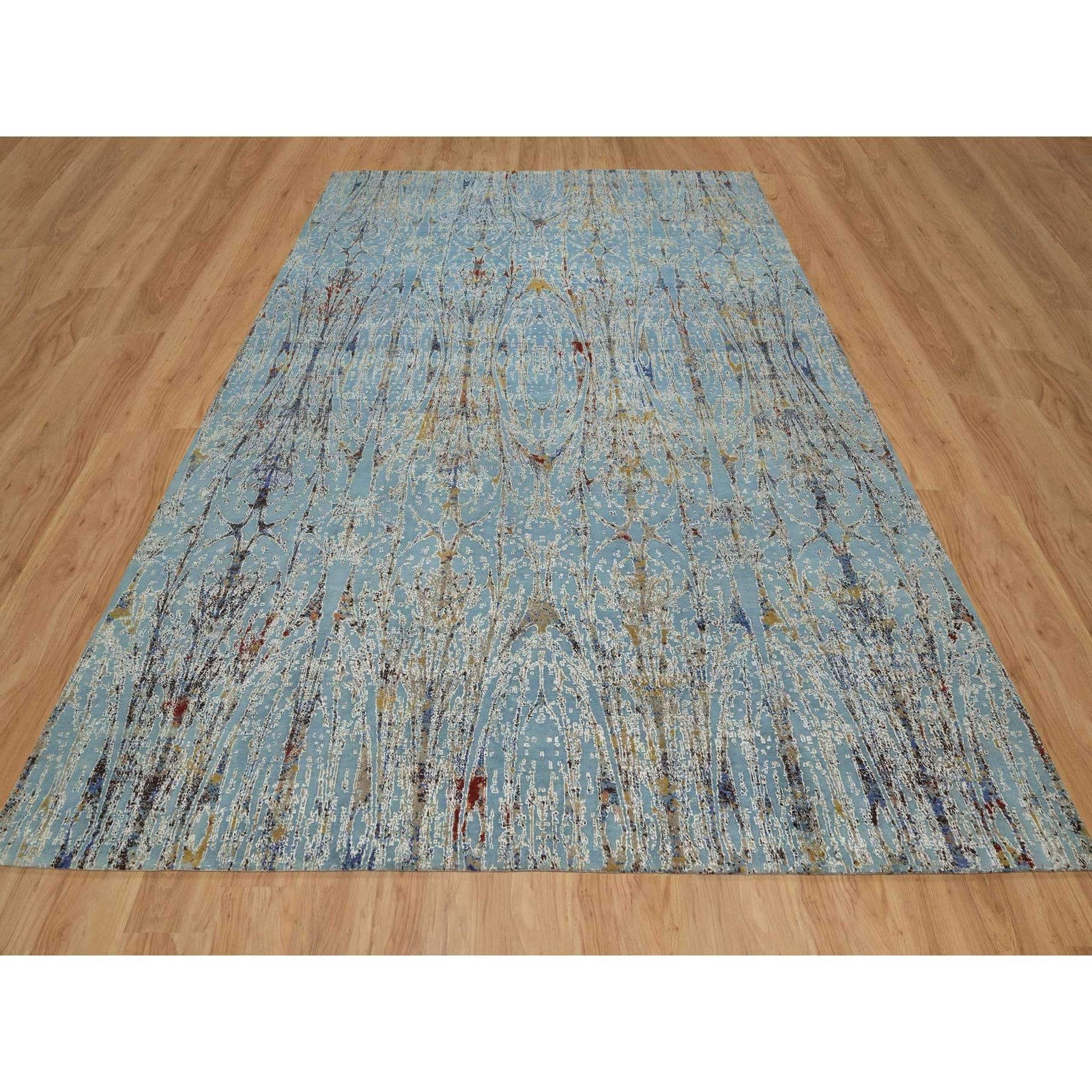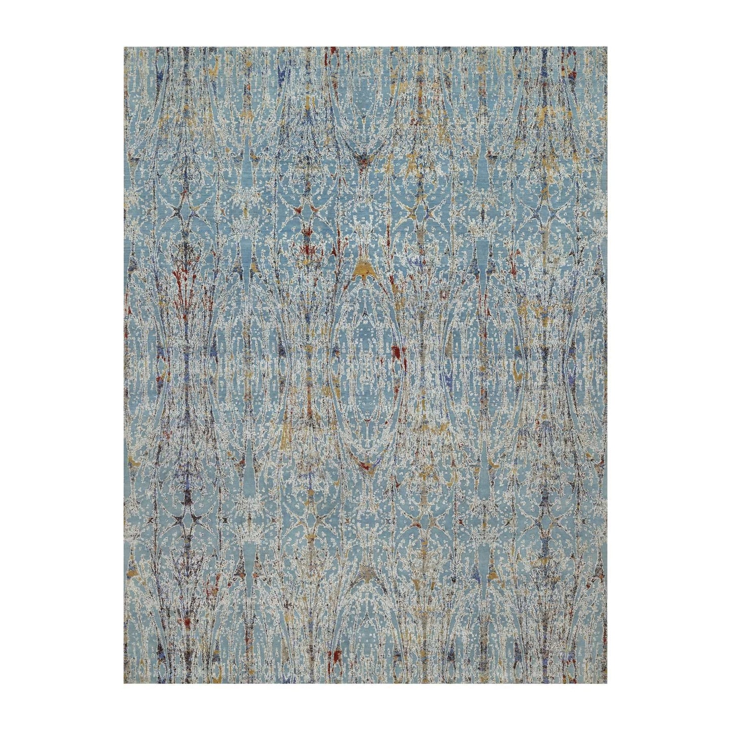 9'1"X12' Blue Modern Bamboo Cane Design Wool And Silk Hand Knotted Rug