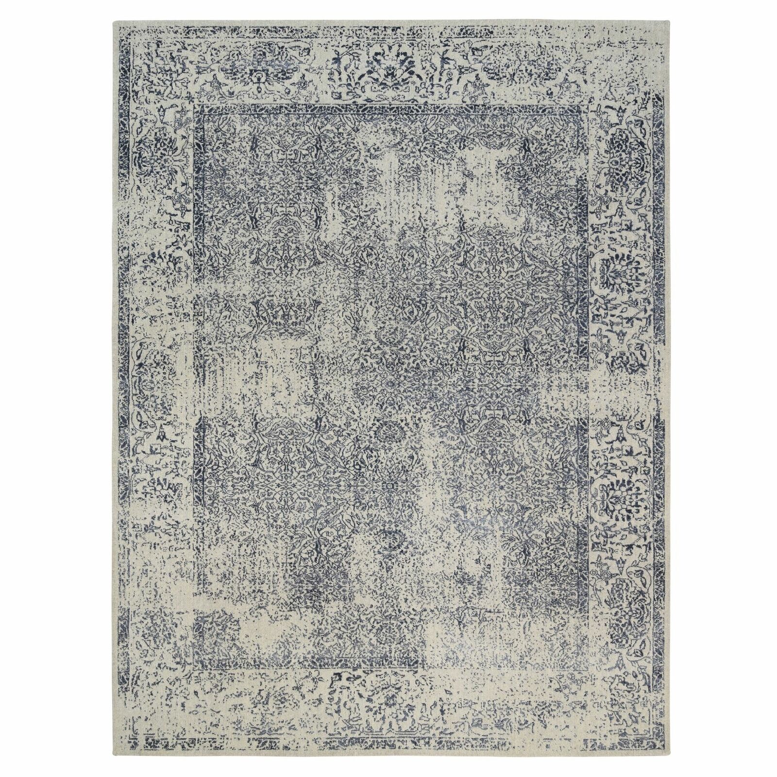 9'1"X12' Hand Loomed Light Gray Fine Jacquard Wool And Art Silk Rug