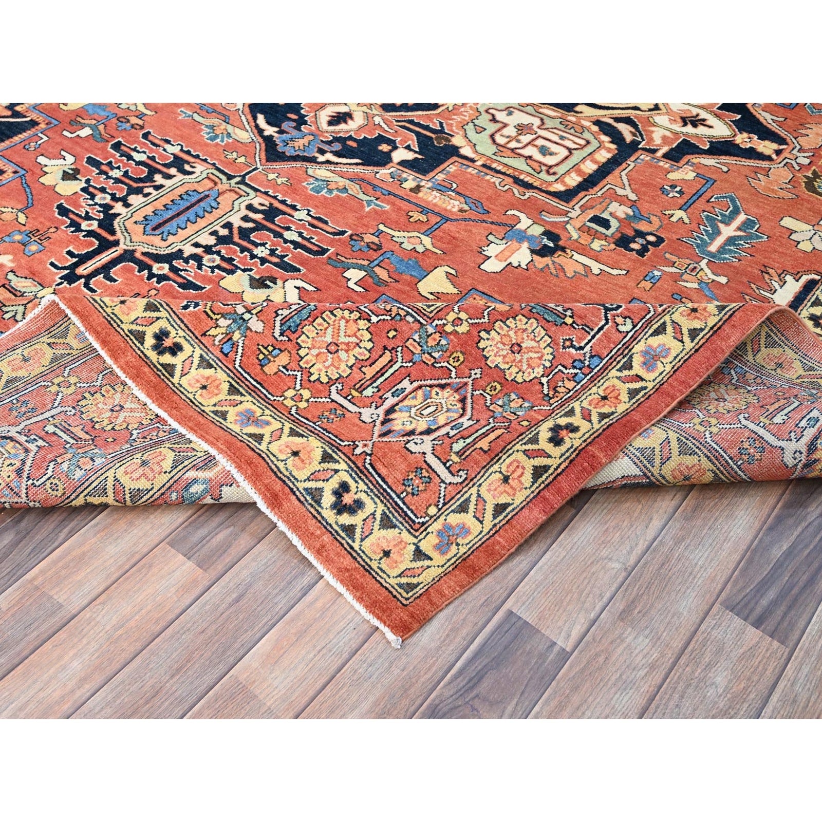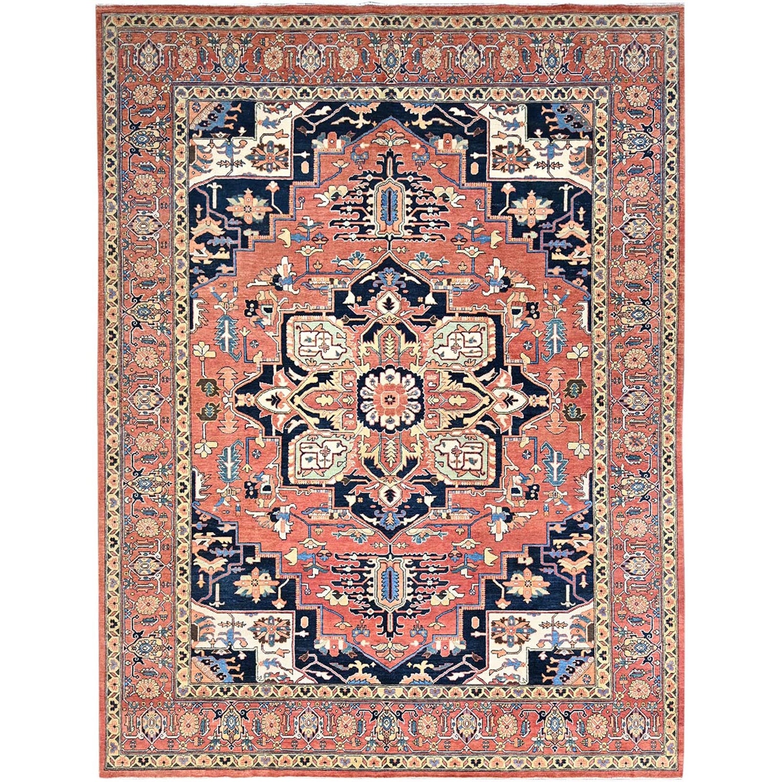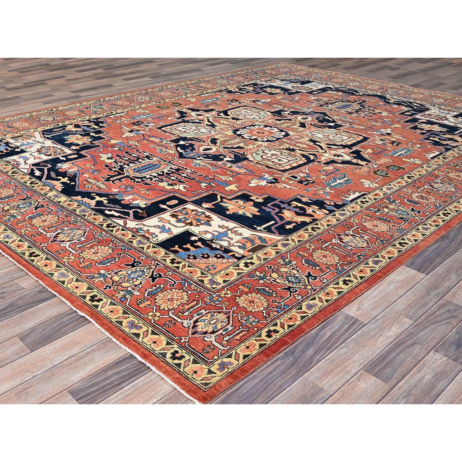 9'1"X12' Indian Red Hand Kontted Wool Afghan Seeripe Heris Design Rug