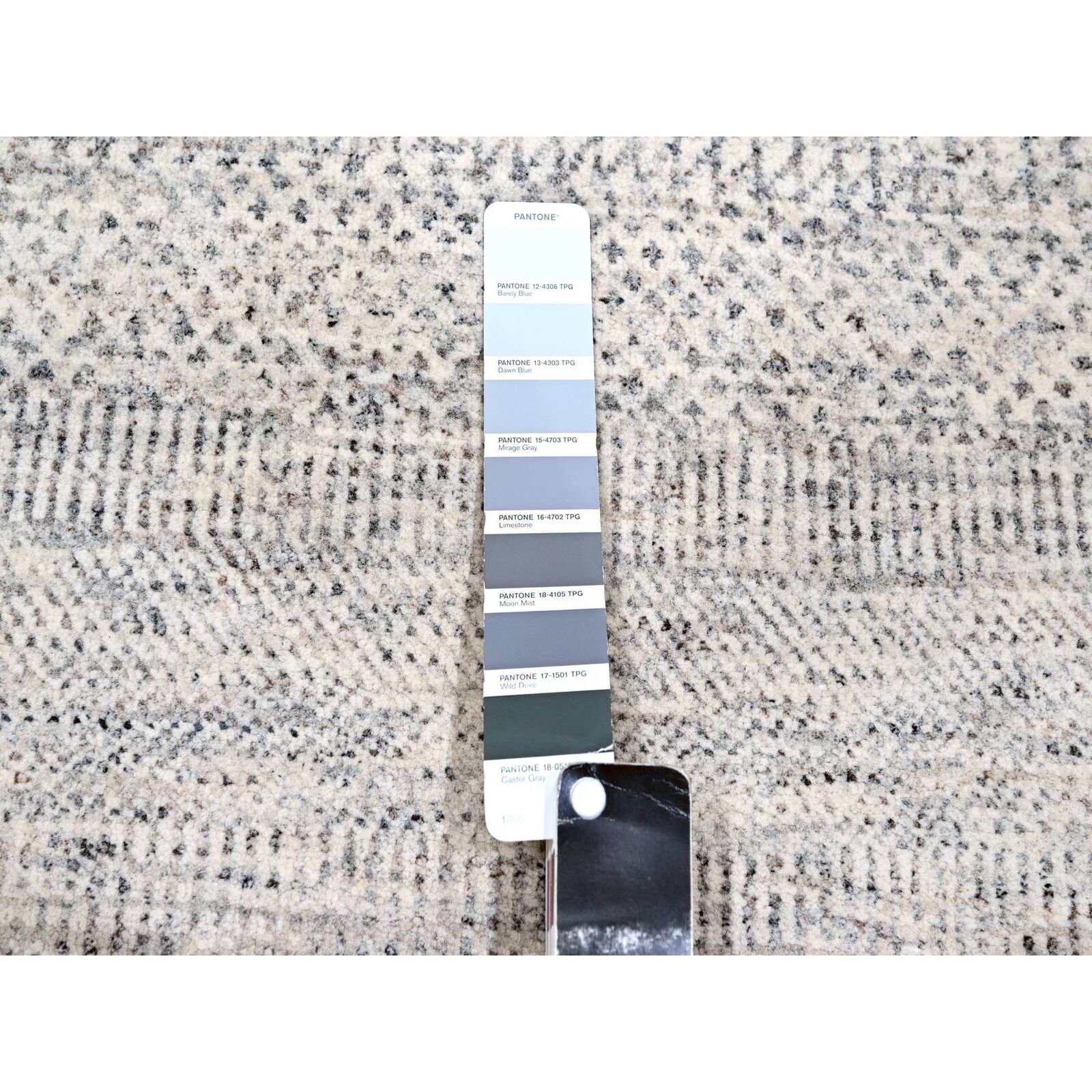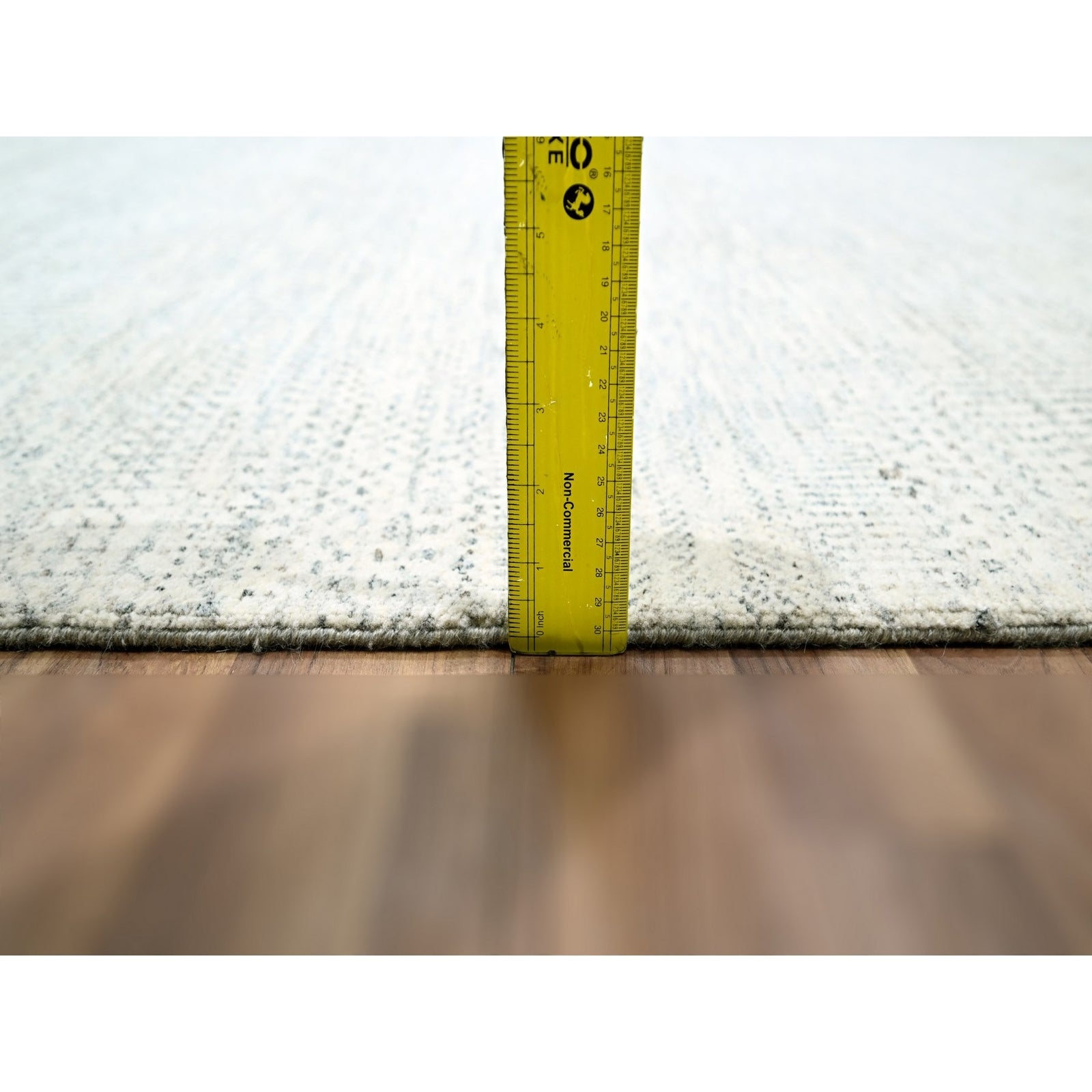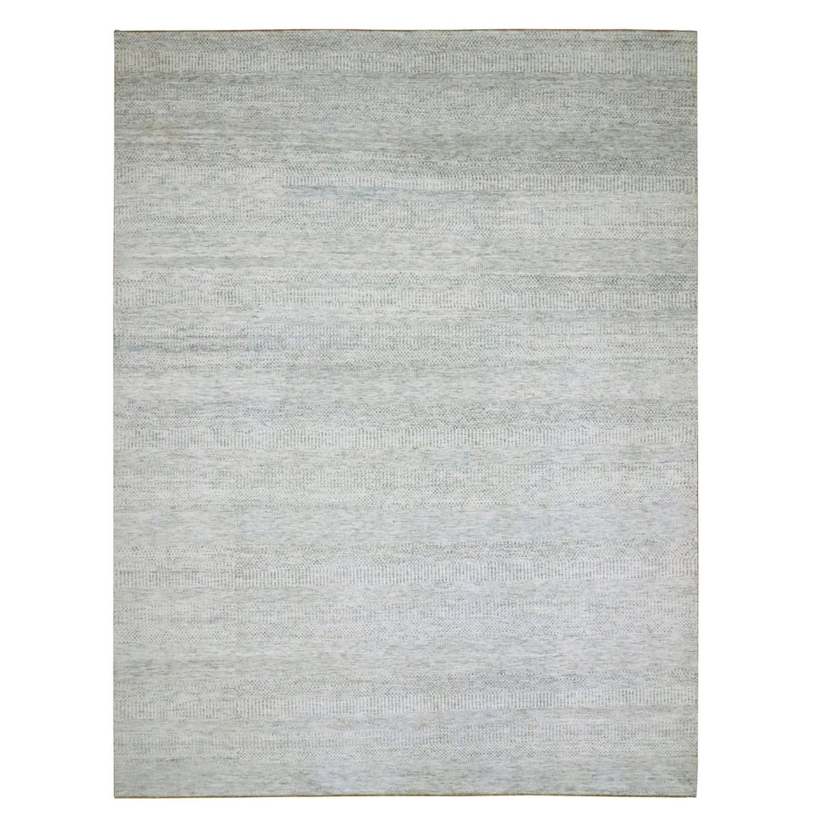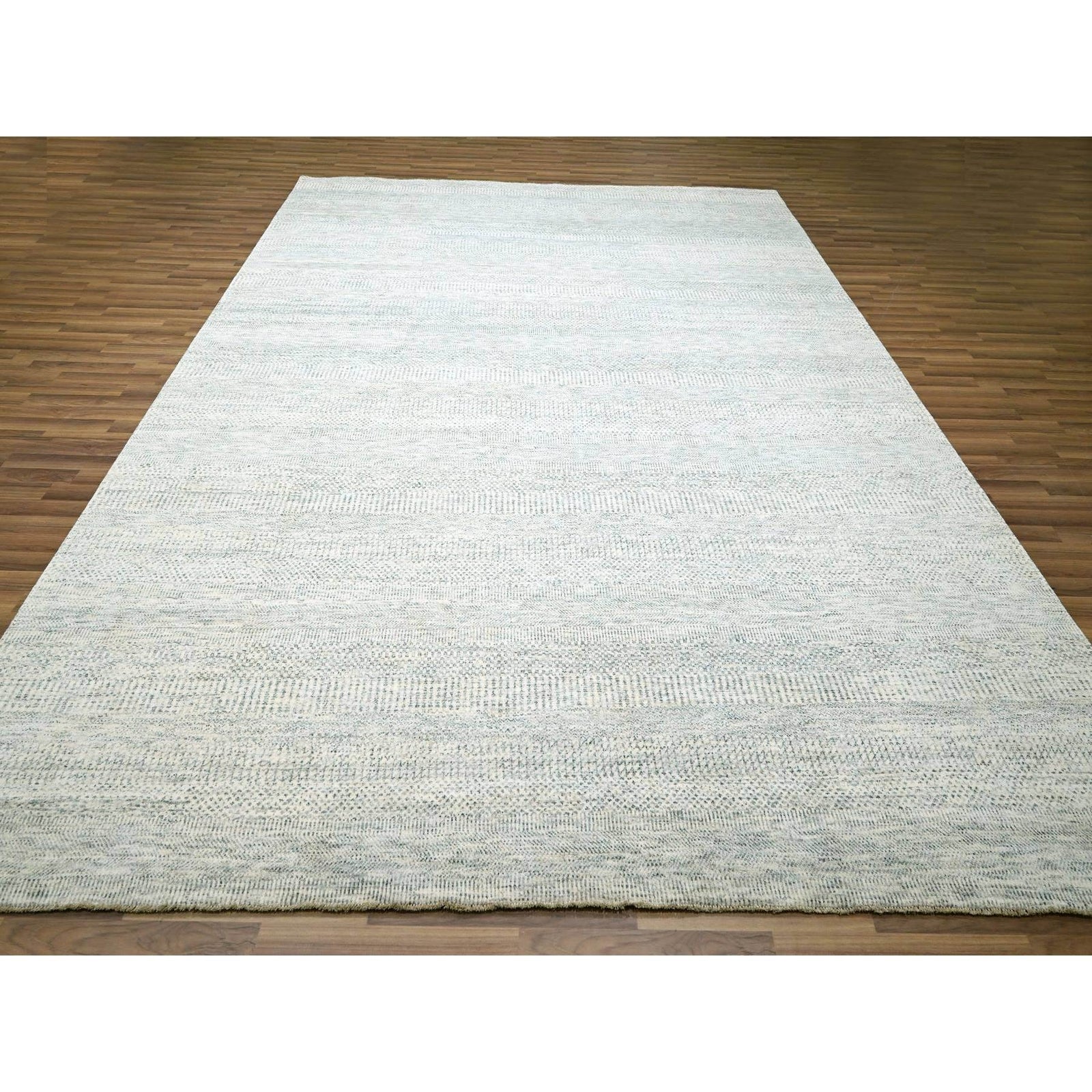 9'1"X12' Pearl White Modern Grass Design Hand Knotted Vibrant Wool Rug