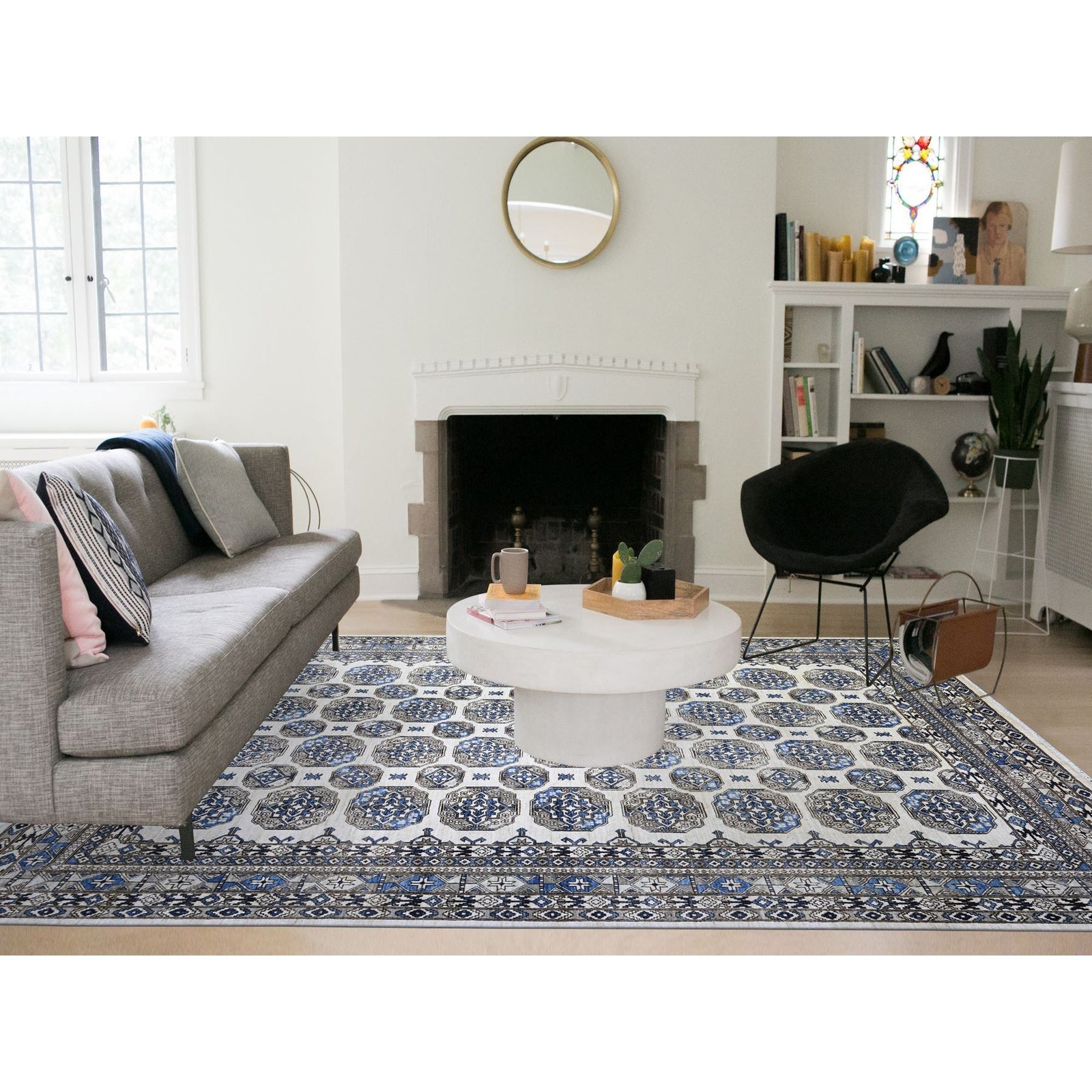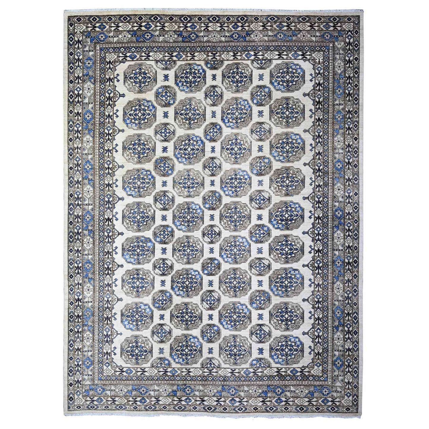 9'1"X12' Porcelain Ivory Afghan Ersari Design Hand Knotted Wool Rug