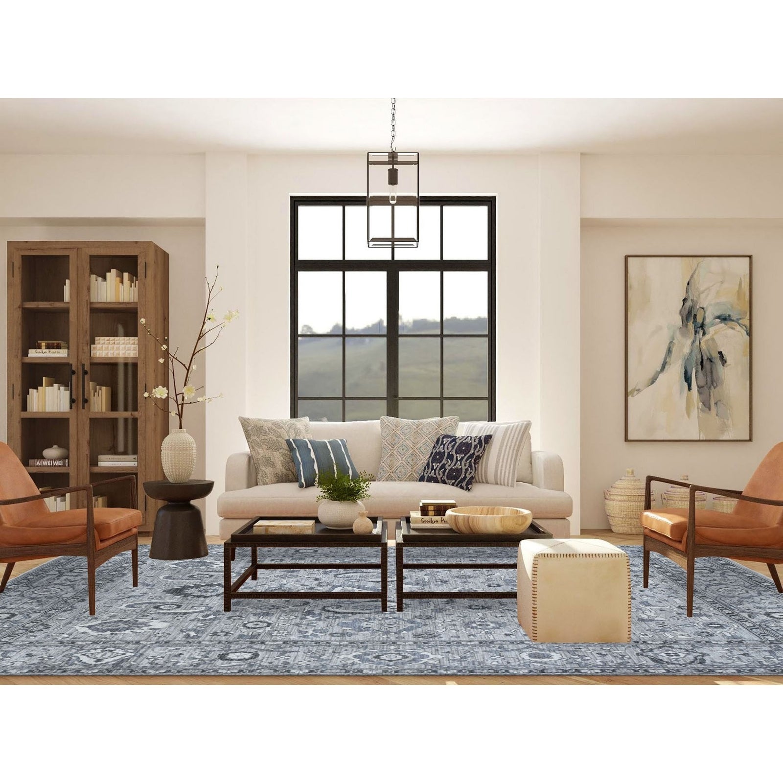 9'1"X12'3" Gray Peshawar Sultanabad All Over Design Hand Knotted Wool Rug