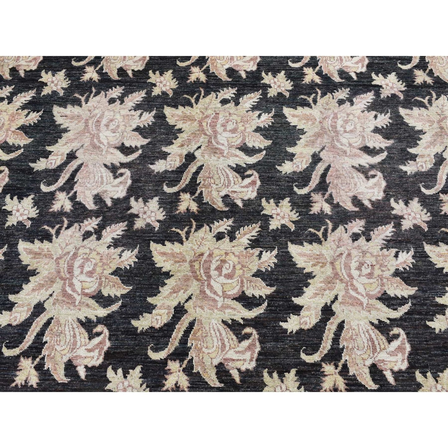 9'1"X12'4" Black Fine Peshawar Design Hand Knotted Pure Wool Rug