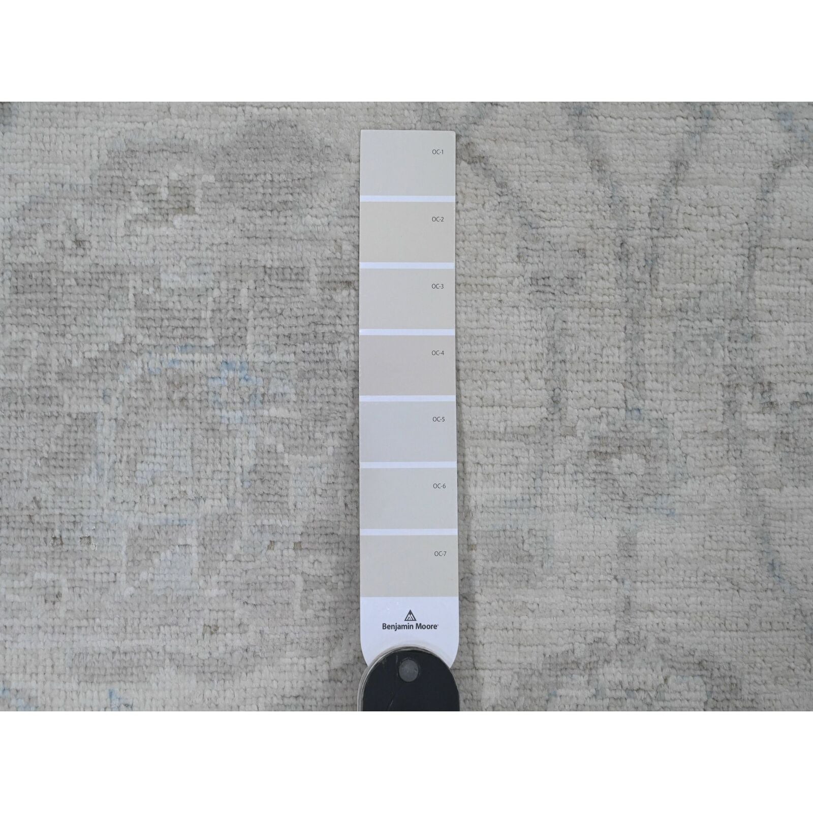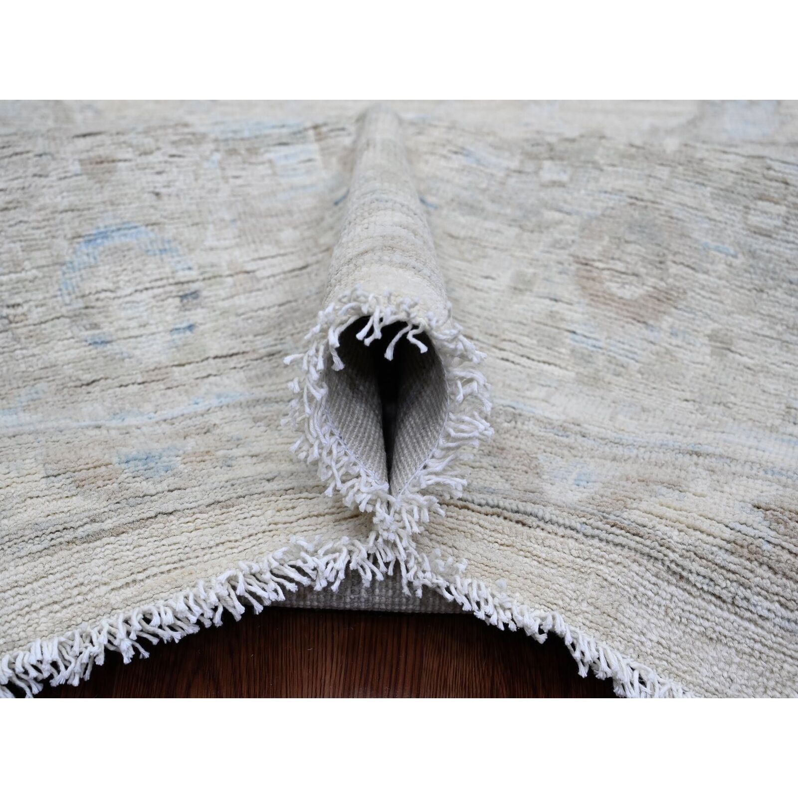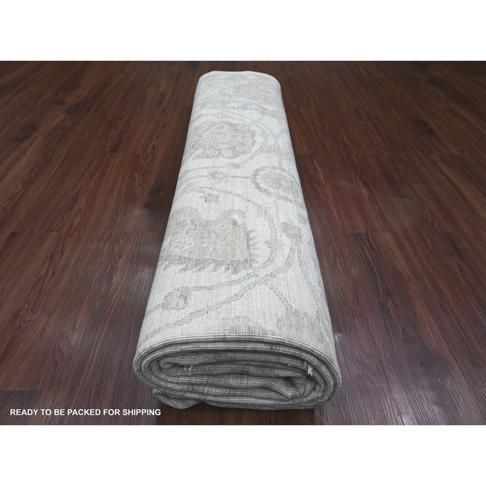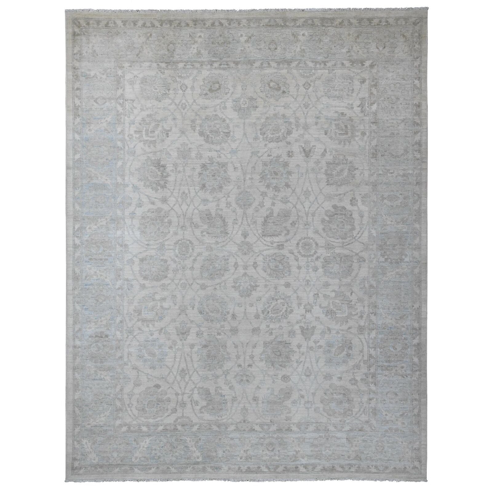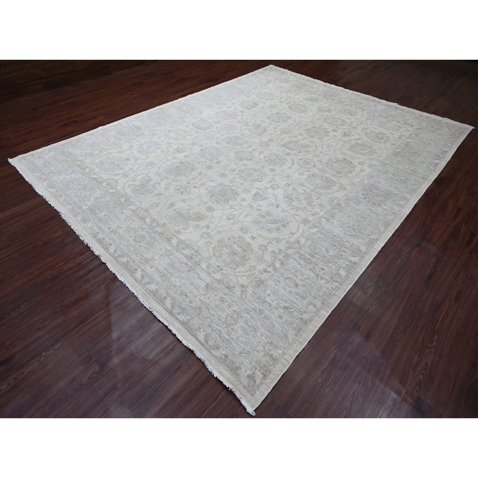 9'2"X11'10" White Washed Out Peshawar Leaf Design Hand Knotted Wool Rug