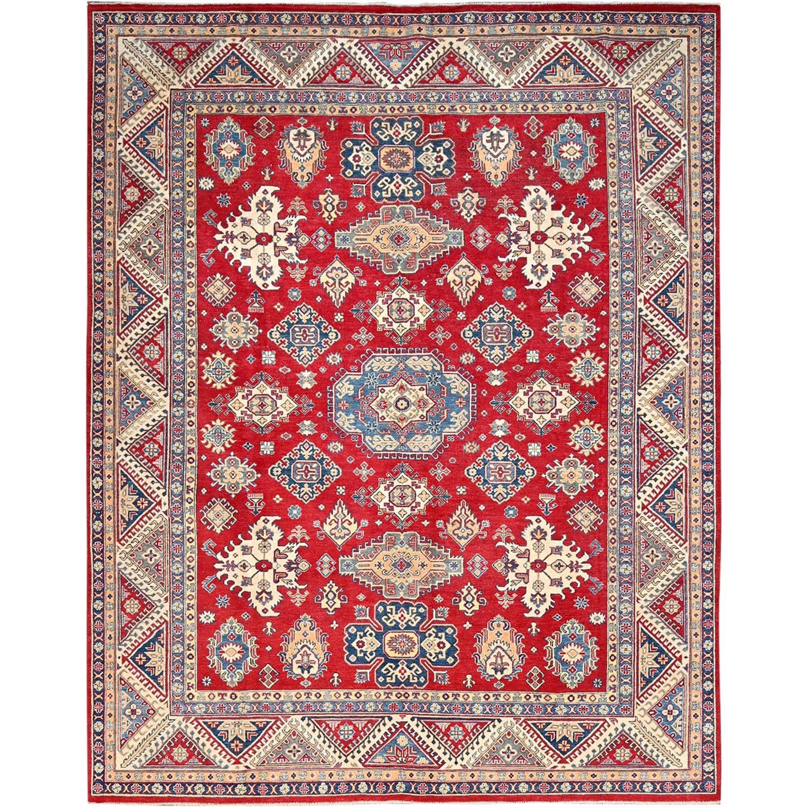 9'2"X11'6" Red Hand Knotted Soft Wool Kazak Tribal Motifs Oriental Rug