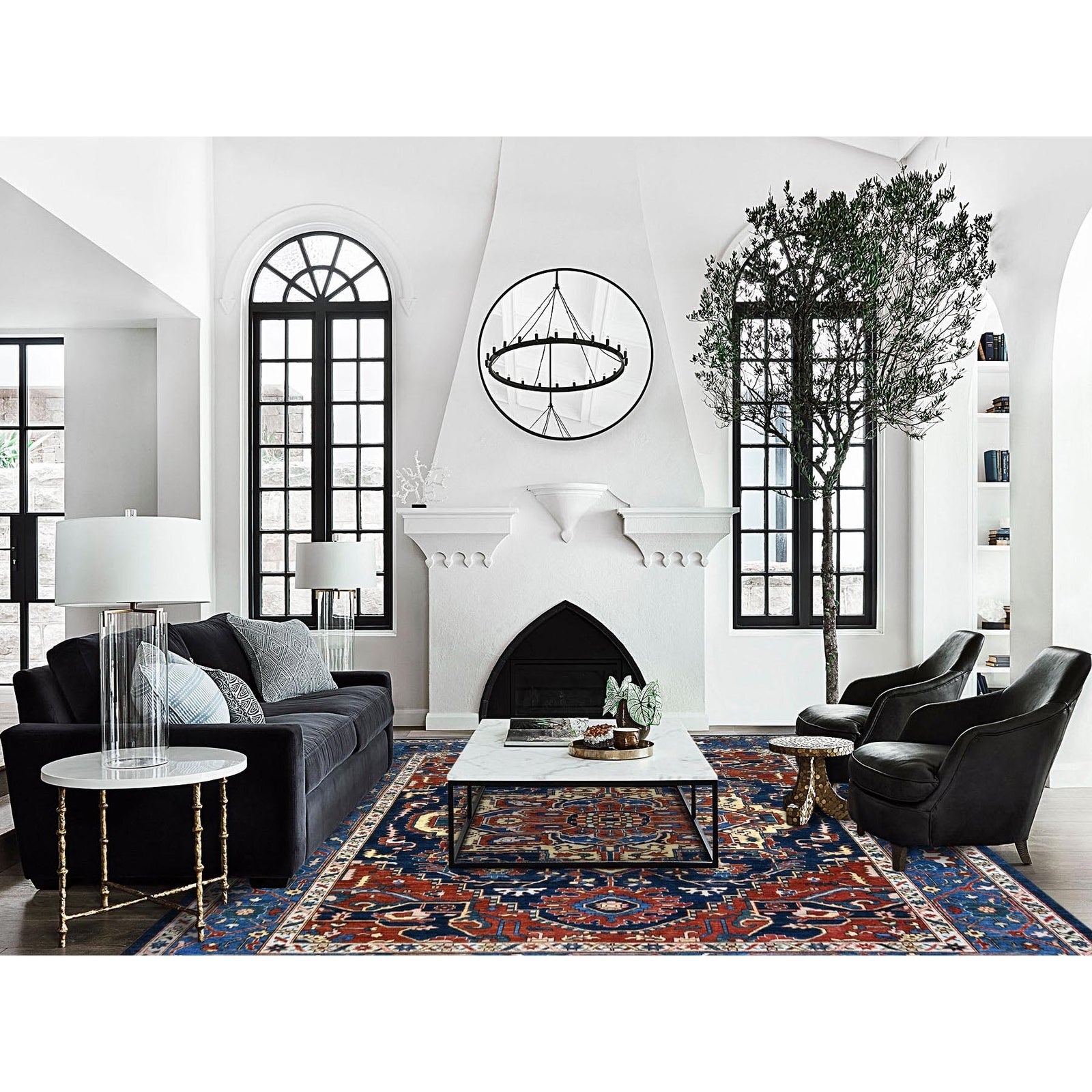 9'2"X11'8" Blue Hand Knotted Afghan Peshawar Seerape Heris Oriental Rug