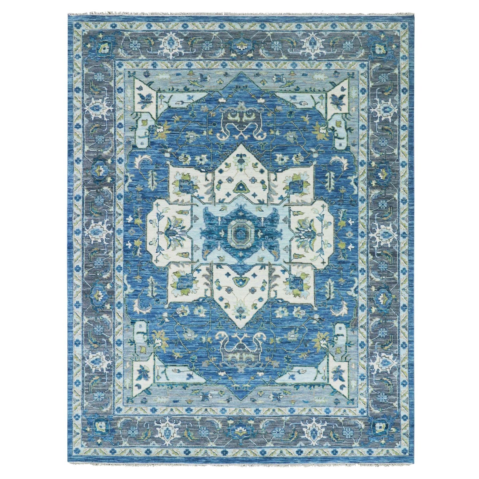 9'2"X12' Blue Soft To The Touch Seeripe Heris 100% Wool Hand Knotted Rug