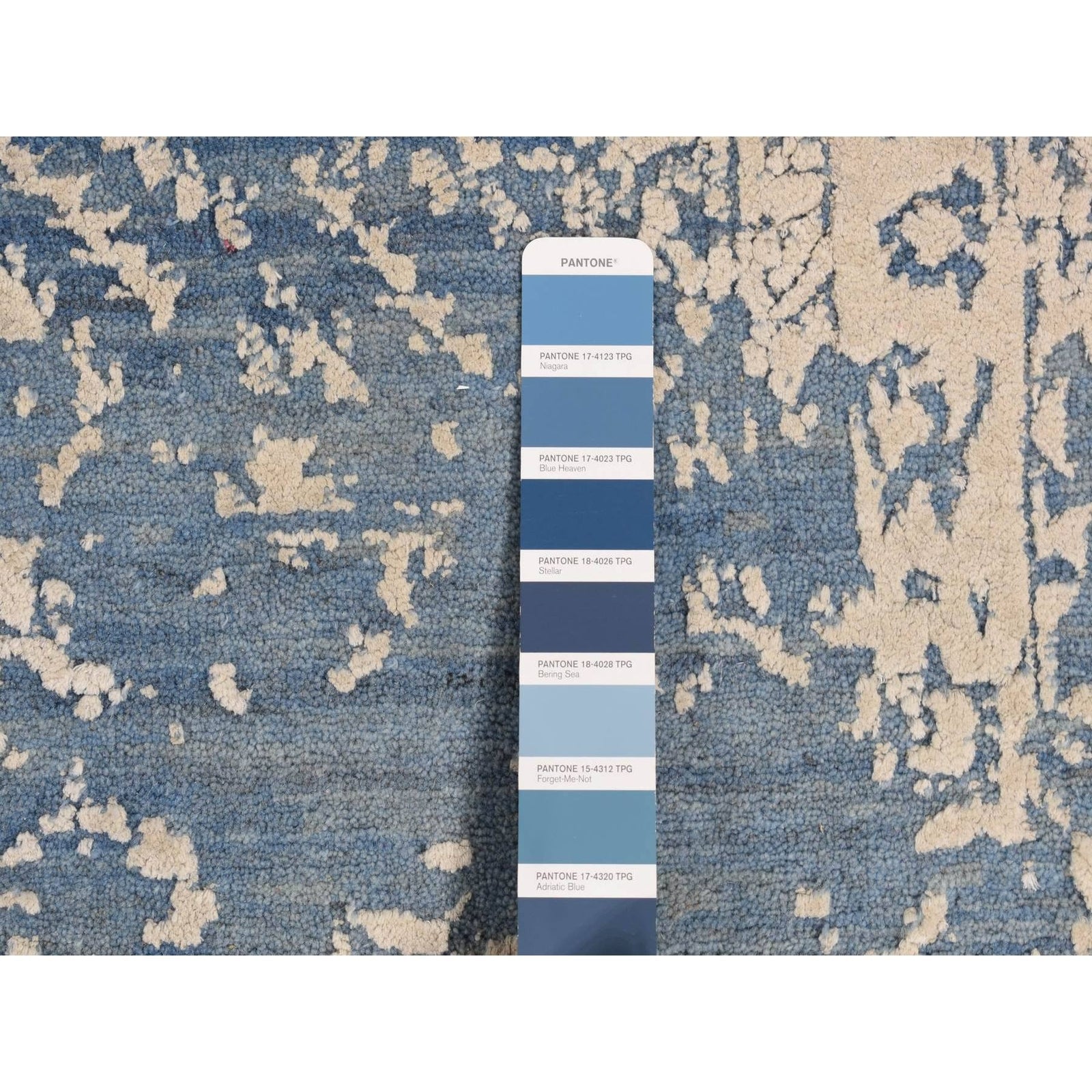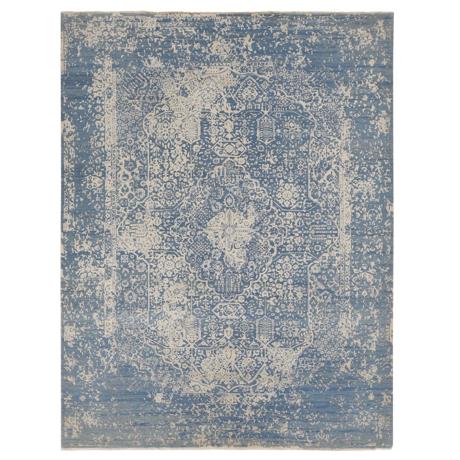 9'2"X12'1" Blue Broken Zoroastrian Design Wool And Silk Hand Knotted Rug