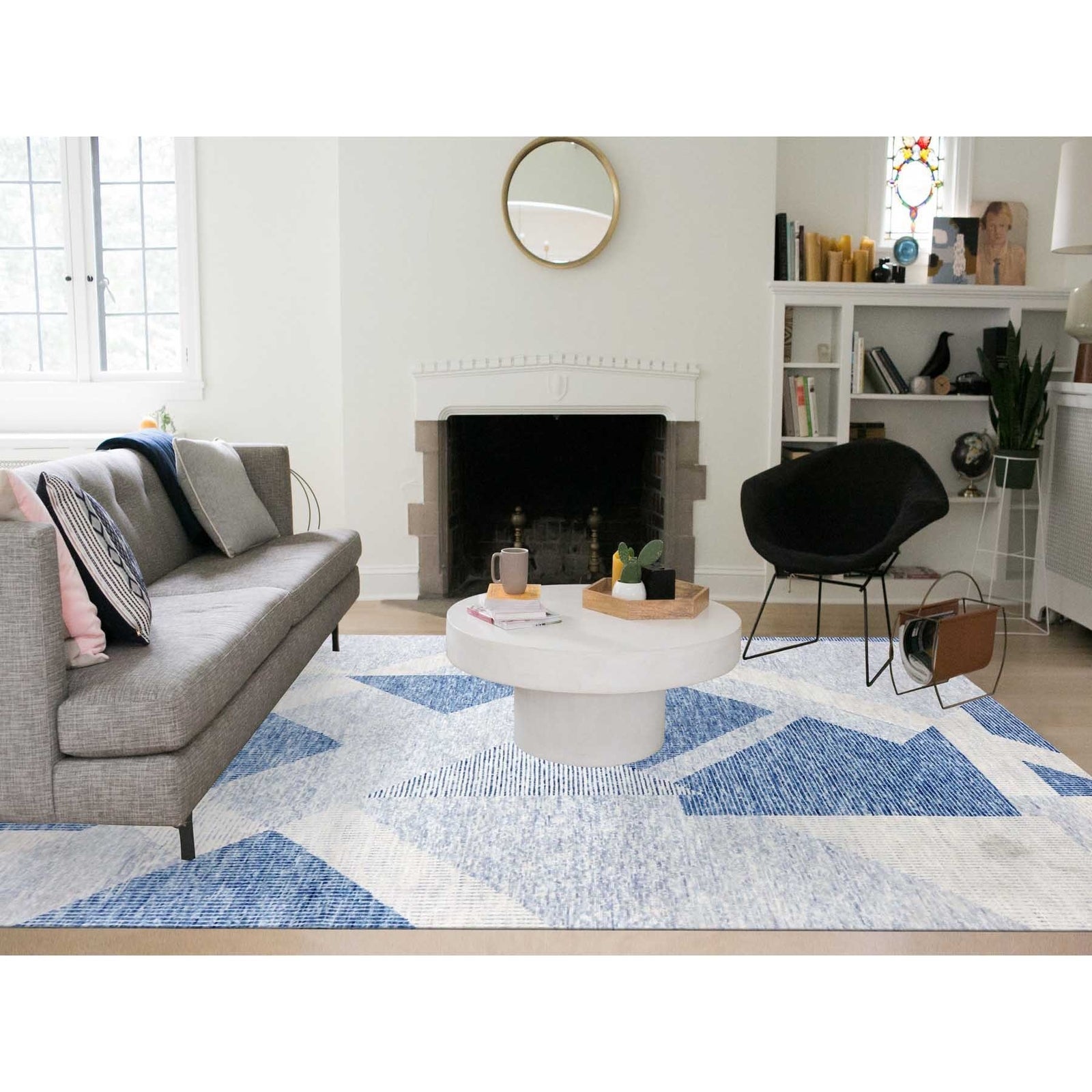 9'2"X12'3" Blue Wool Hand Knotted Geometric Art Deco Collection Rug