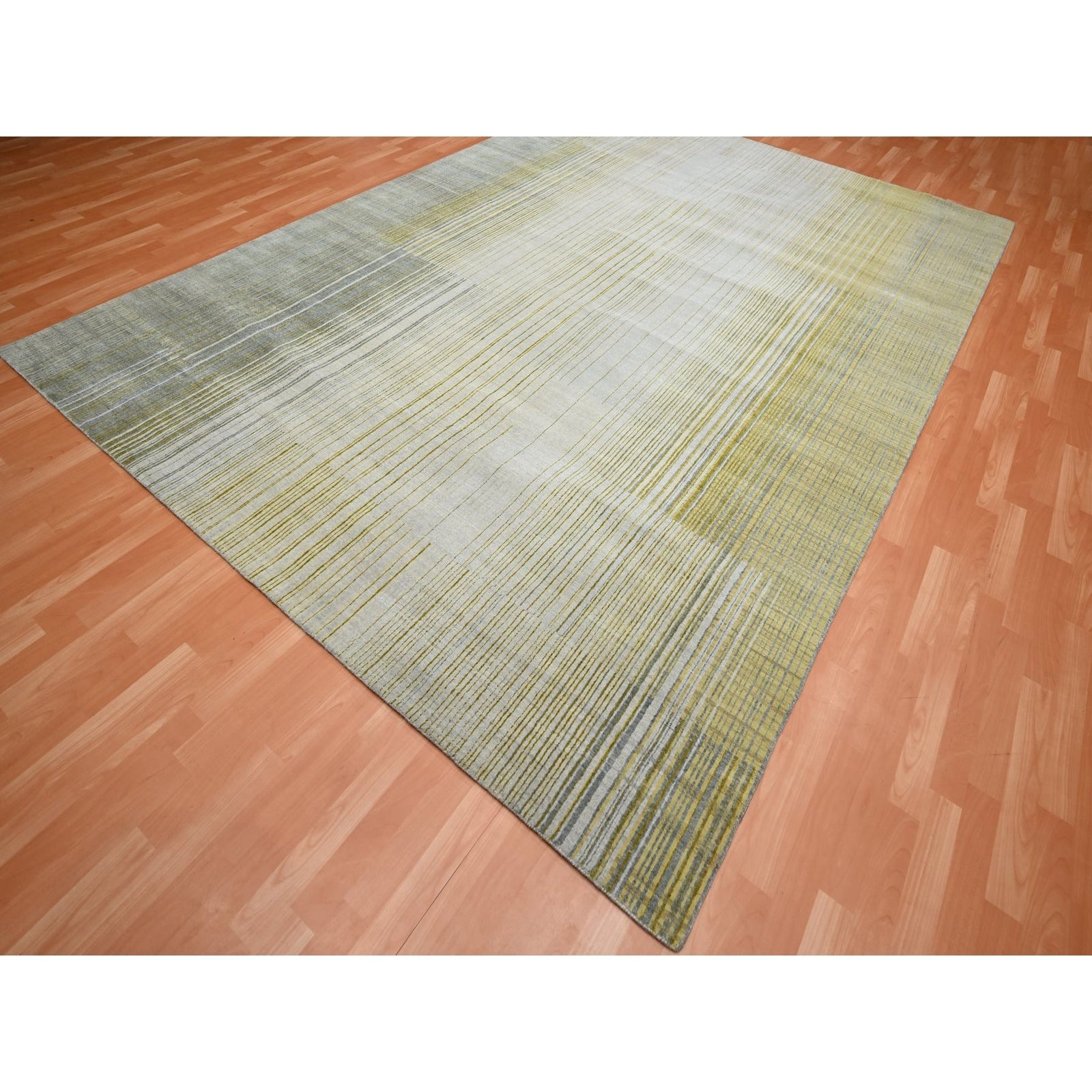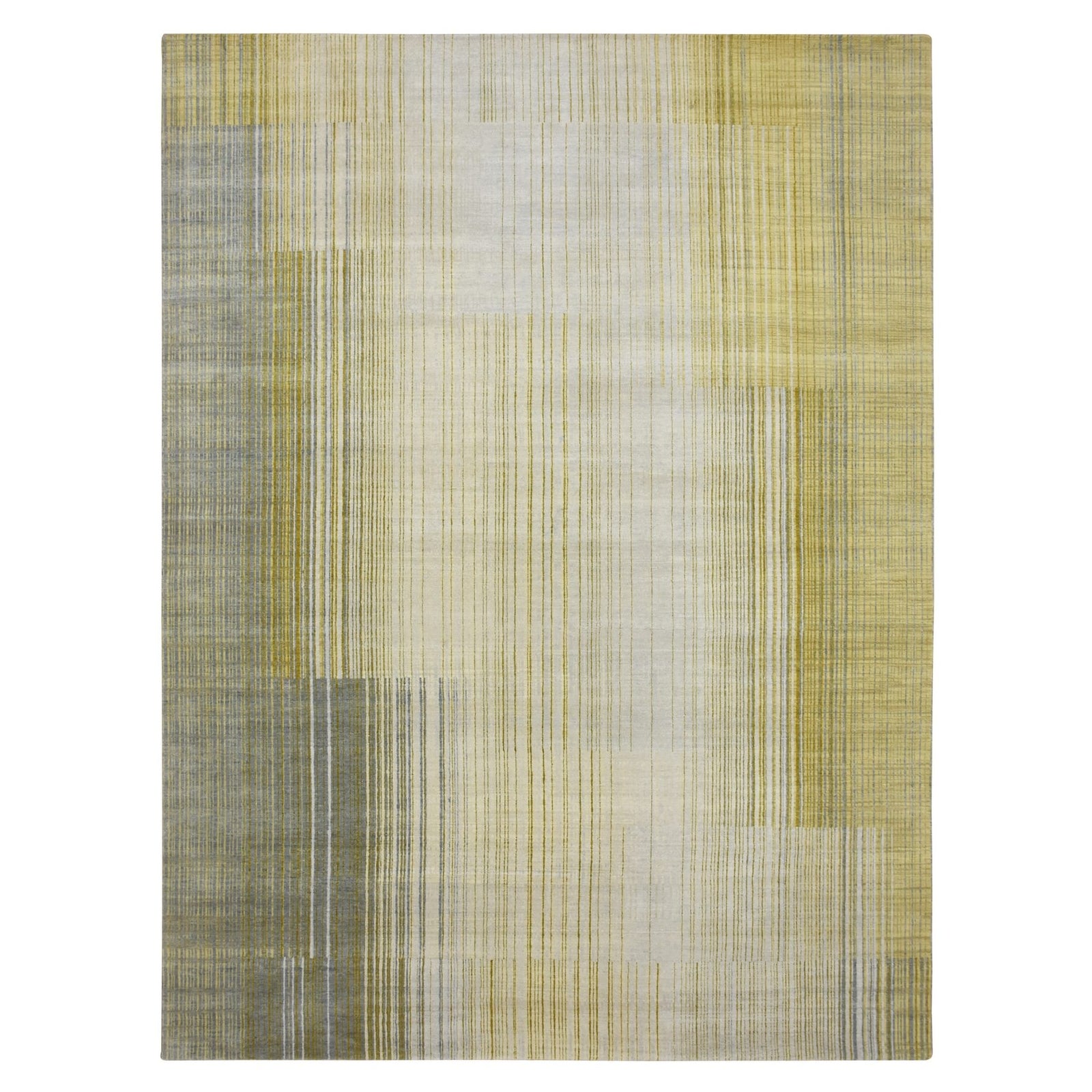 9'2"X12'4" Gray Mid Century Inspired Line Design Wool Hand Knotted Rug