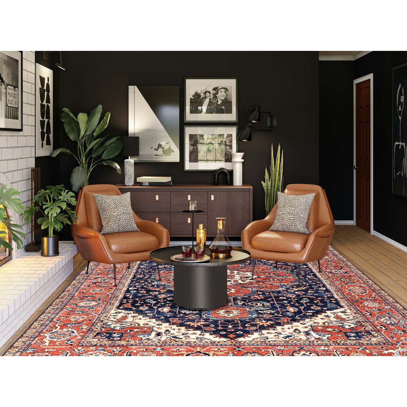 9'2"X12'8" Midnight Blue Seeripe Heris Hand Knotted High Mountain Wool Rug
