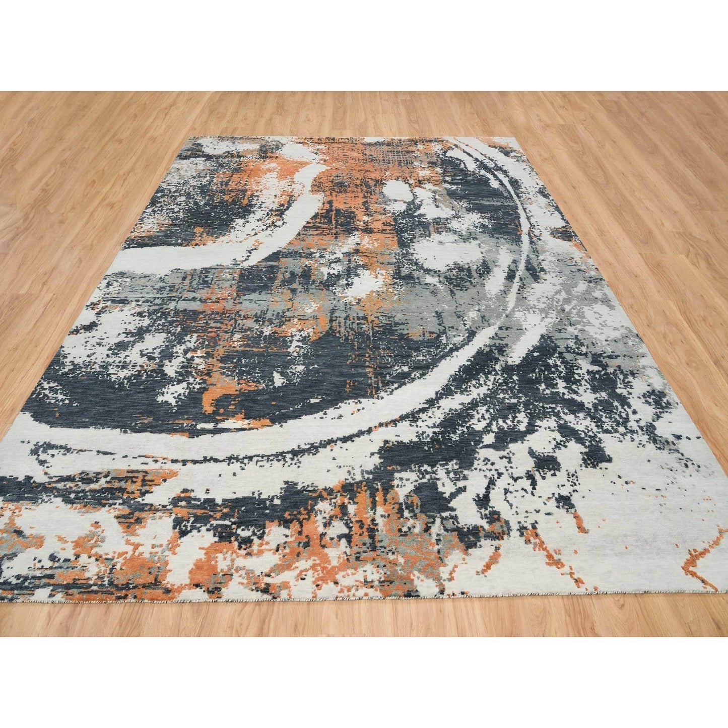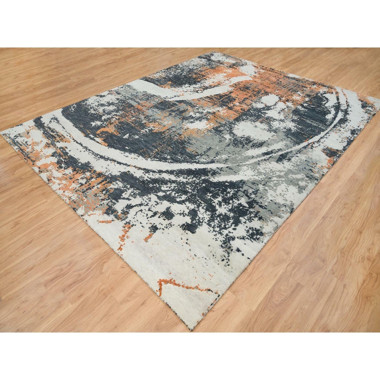 9'3"X11'9" Black Abstract With Curvilinear Motif Hand Knotted Modern Rug