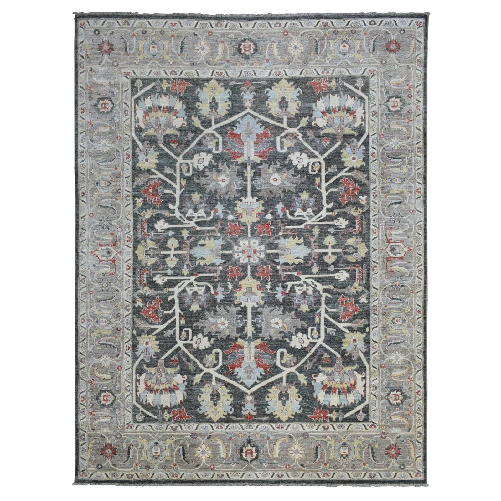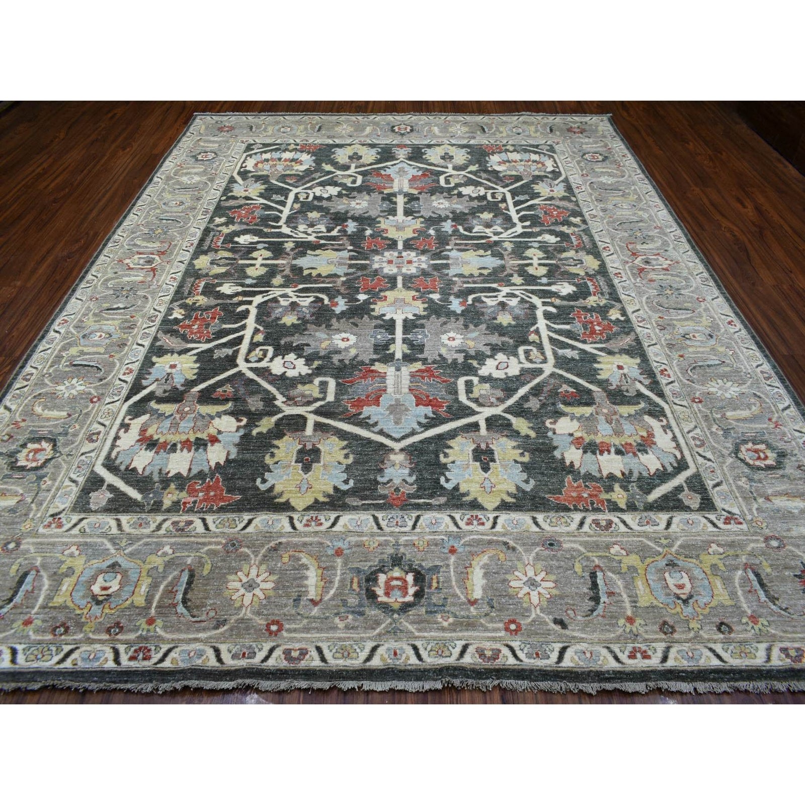 9'3"X11'9" Charcoal Black Afghan Peshawar Soft Wool Hand Knotted Rug