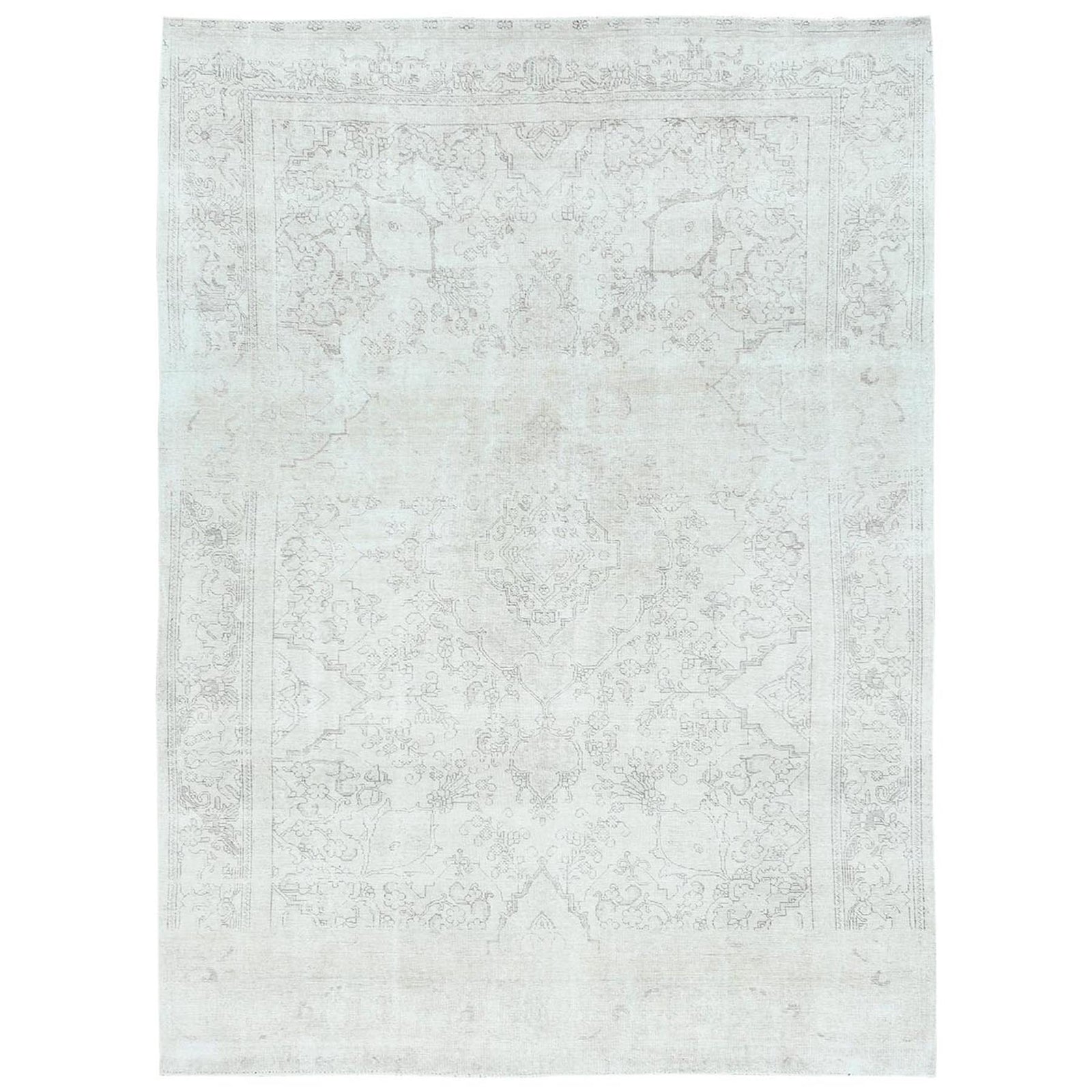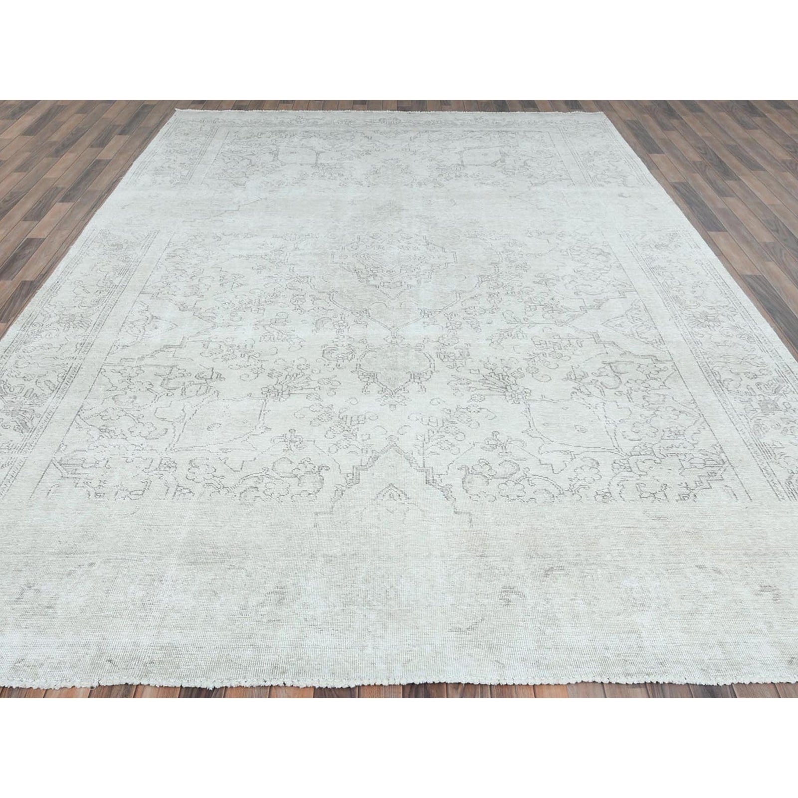 9'3"X13' Ivory Vintage Farsian Tebraz Worn Wool Hand Knotted Rug