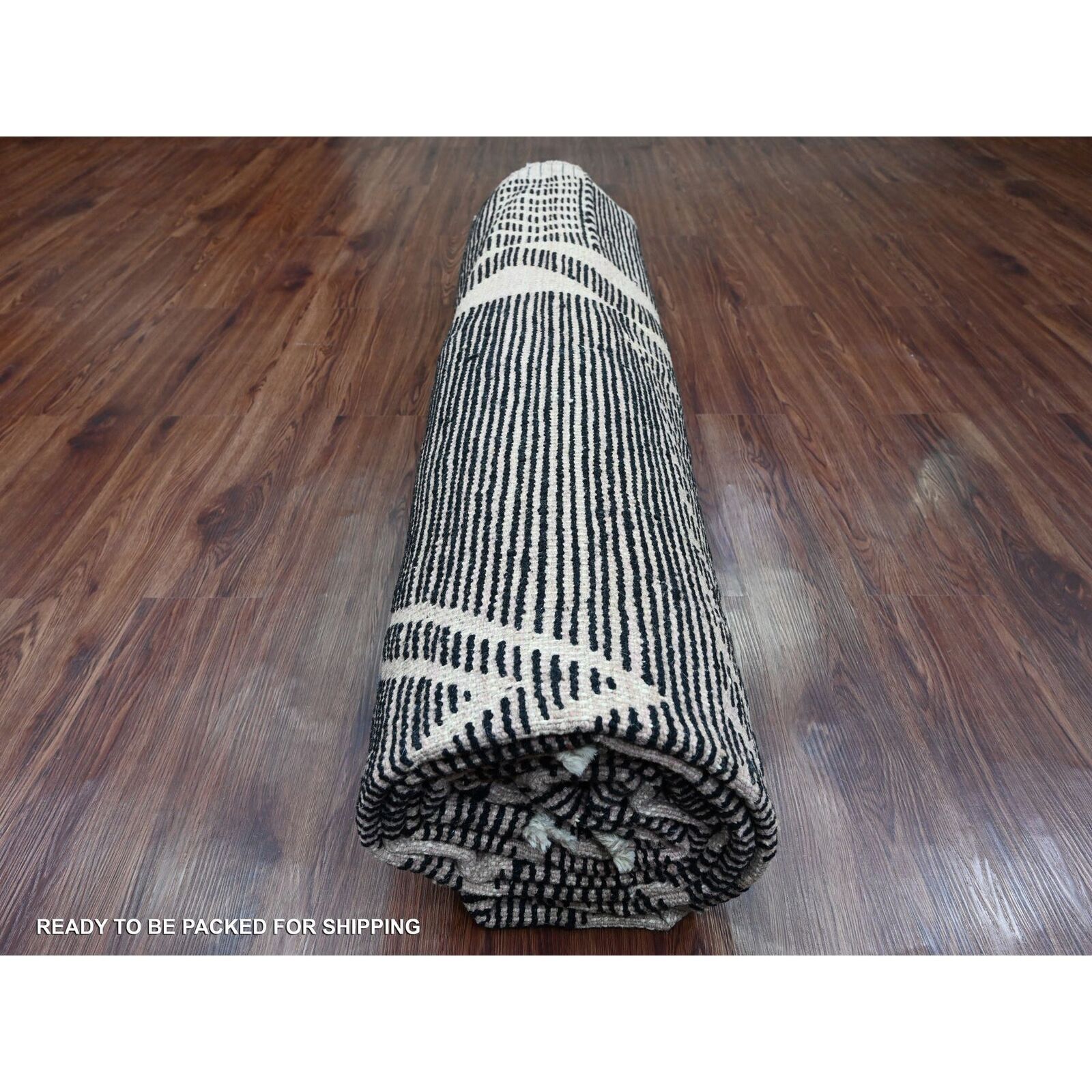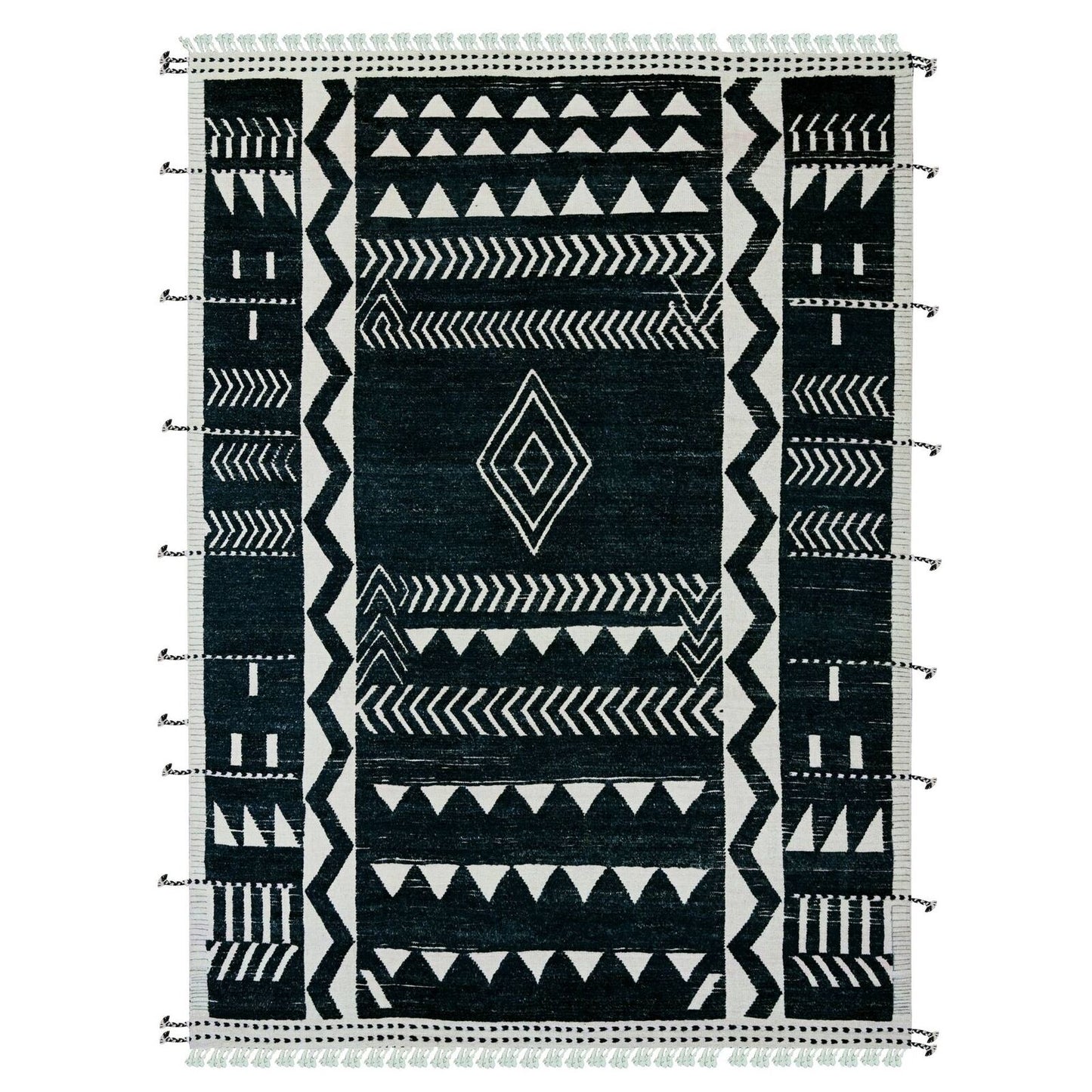 9'4"X12'10" Black Hand Knotted Moroccan Weave Ethnic Design Soft Wool Rug