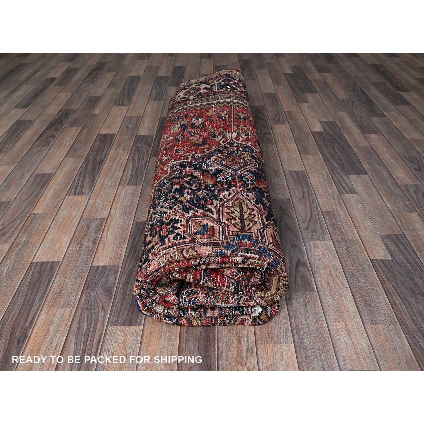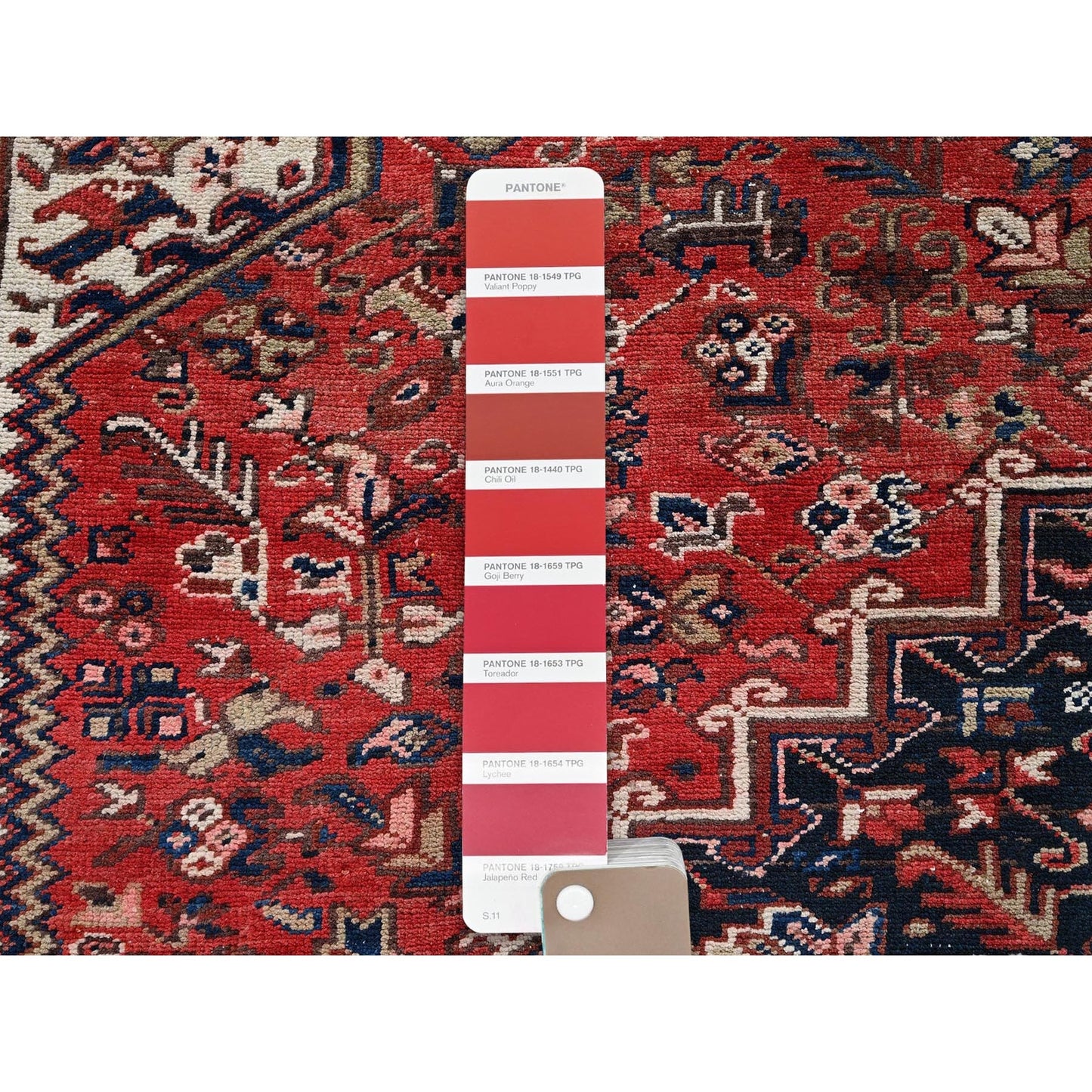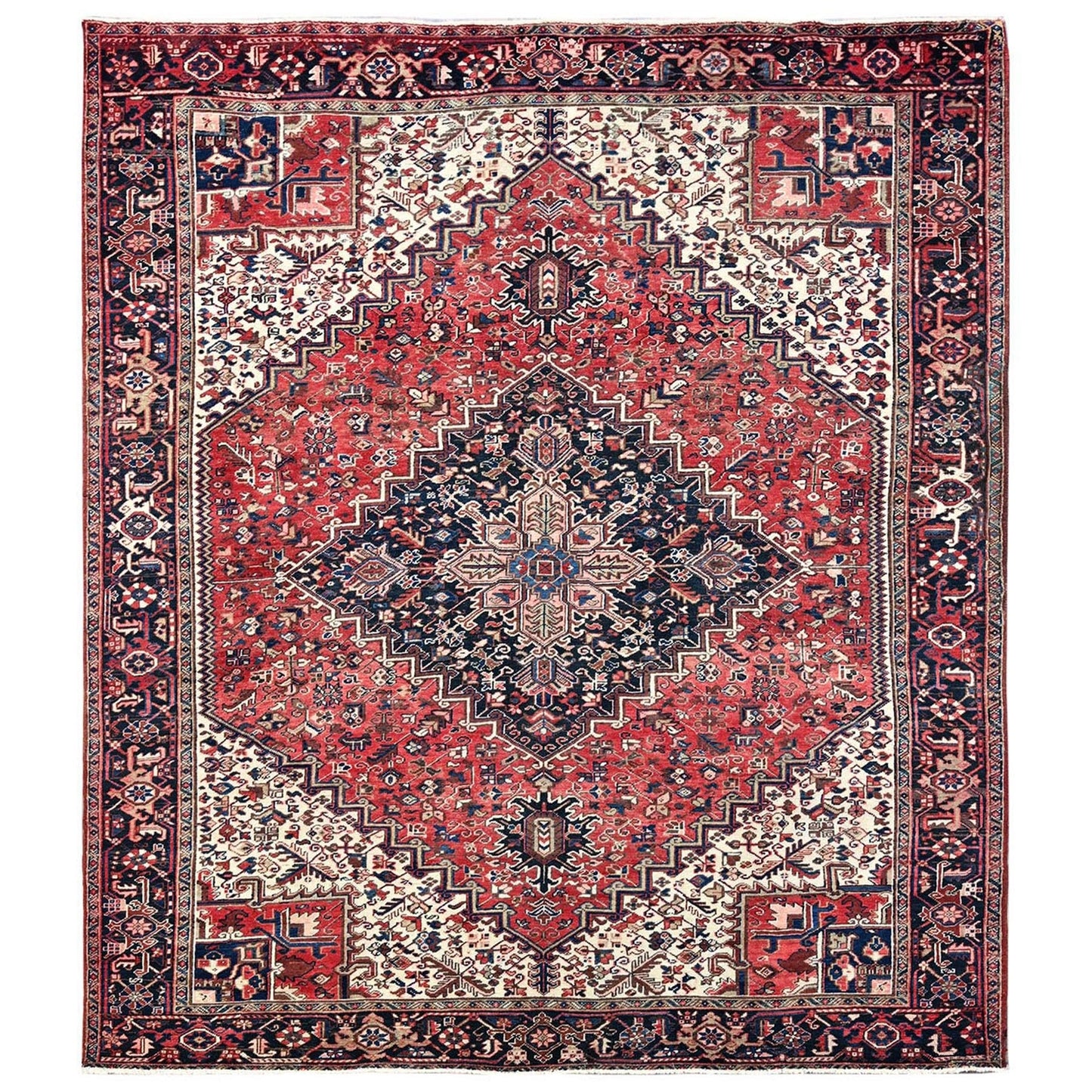 9'5"X11' Red Vintage Zoroastrian Heris Pure Wool Hand Knotted Squarish Rug