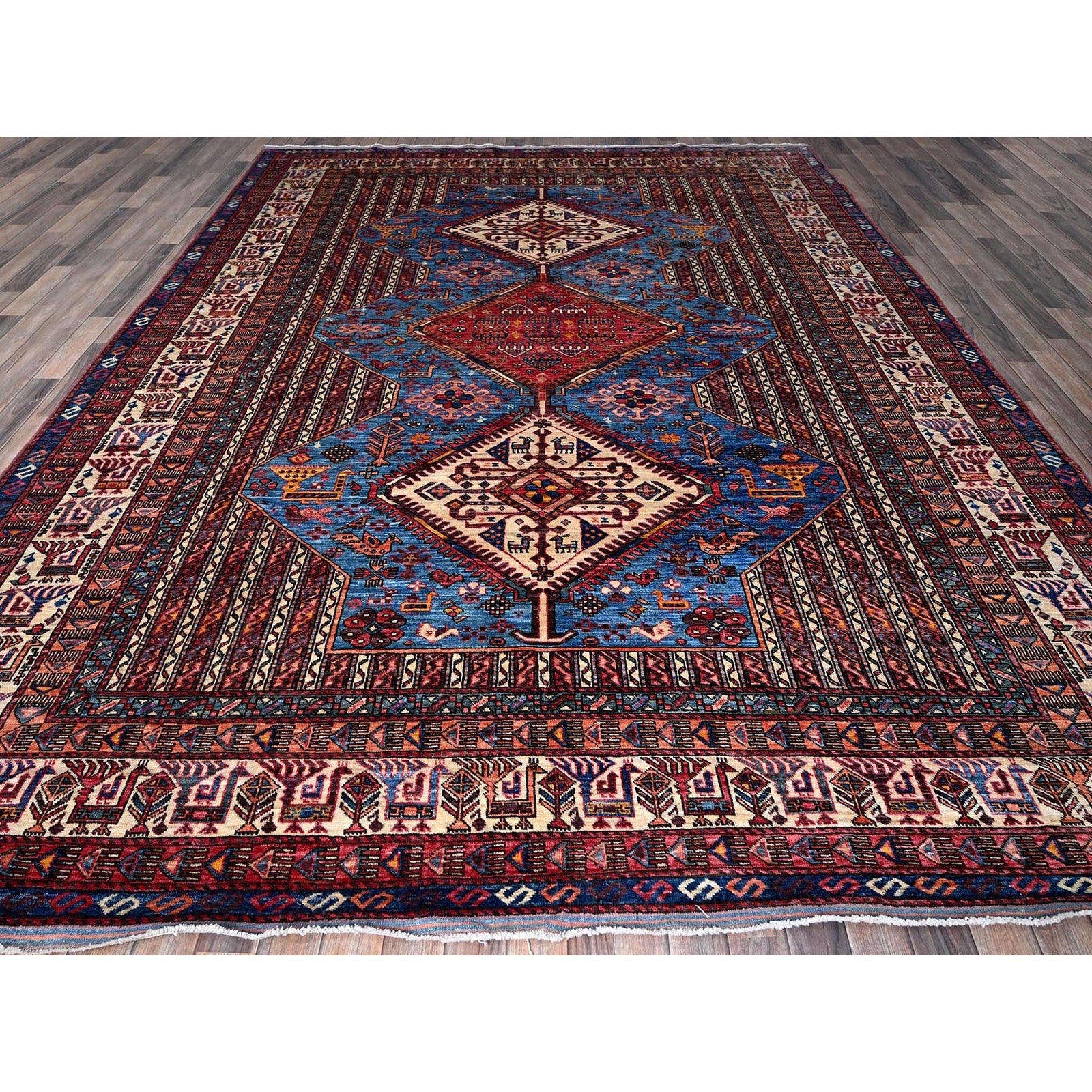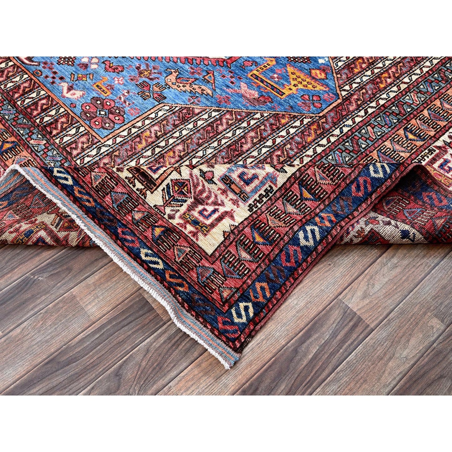 9'5"X12'1" Blue Antique Caucasian Design Revival Hand Knotted Pure Wool Rug