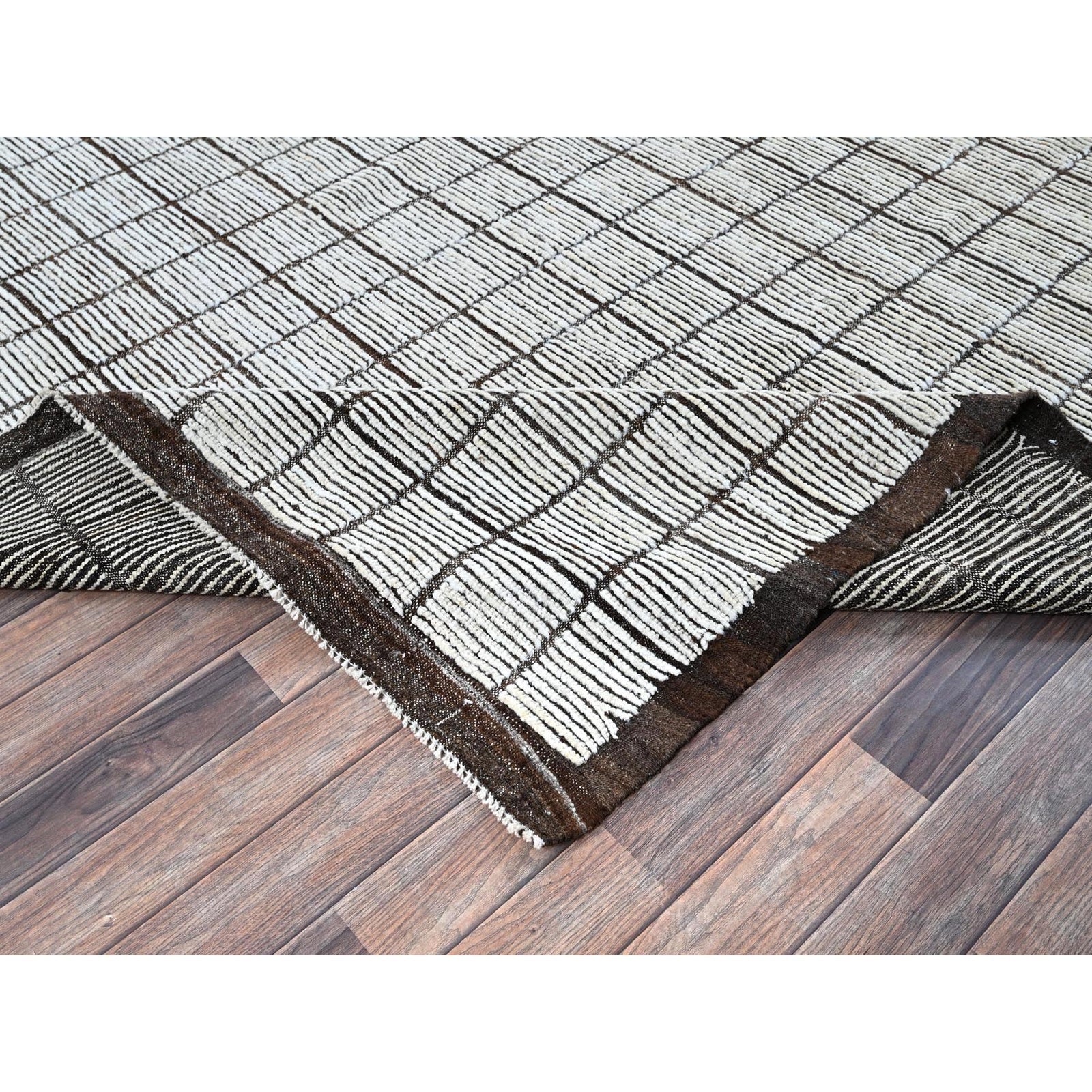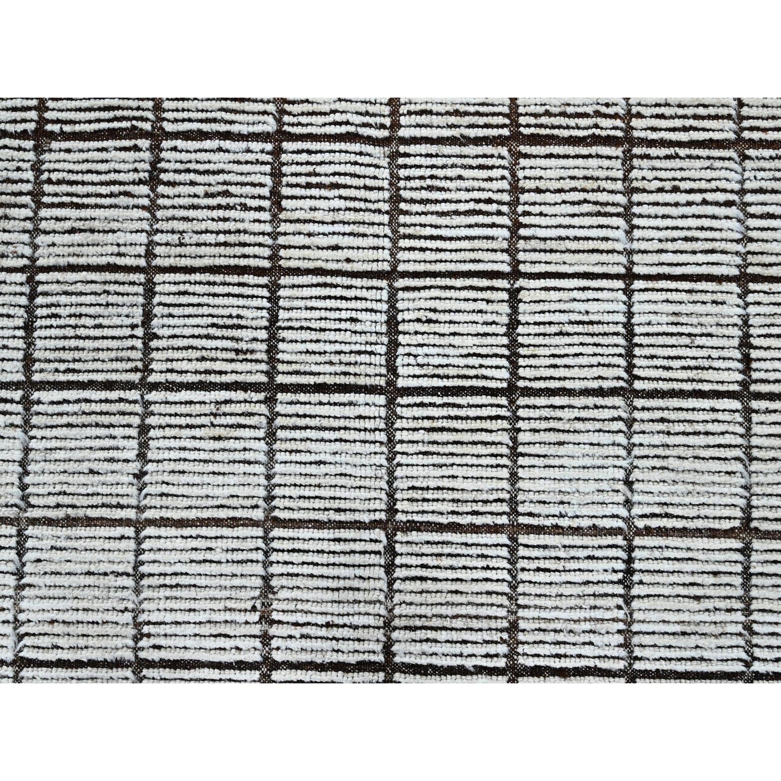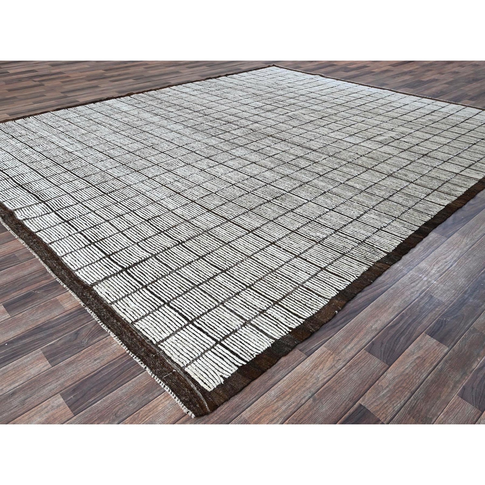9'6"X11'8" White Moroccan Weave With Box Design 100% Wool Hand Knotted Rug