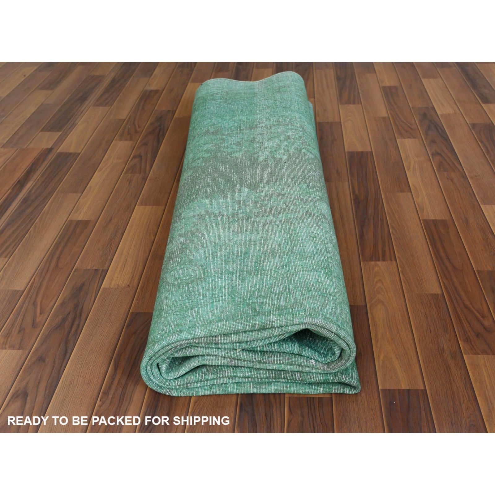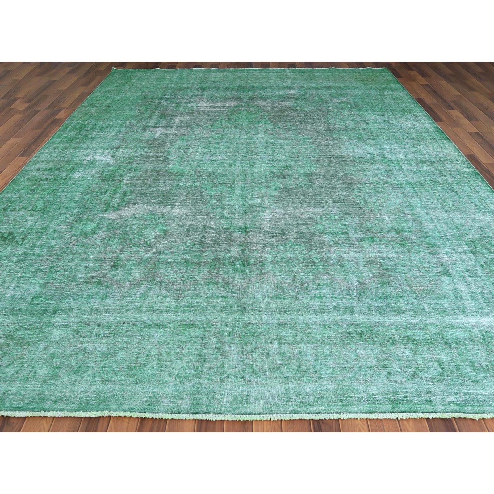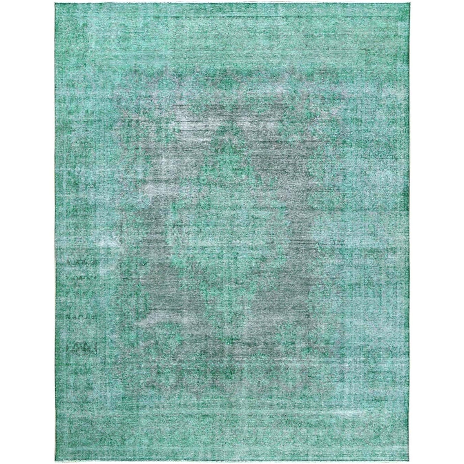 9'7"X12'5" Hand Knotted Shades Of Light Green Overdyed Farsian Karman Rug