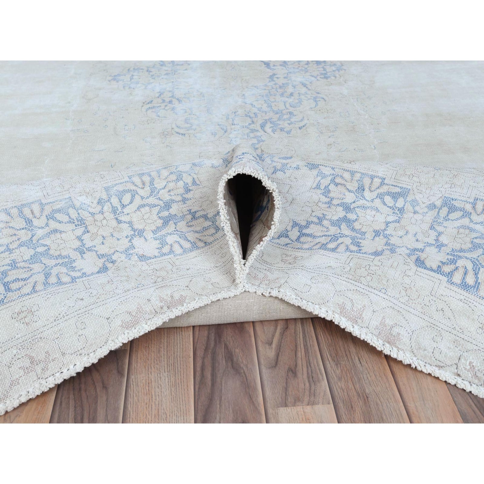 9'7"X12'9" Blue Hand Knotted Worn Wool Distressed Look Old Farsian Rug