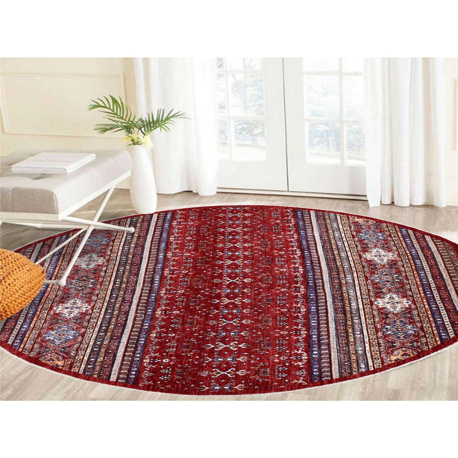 9'7"X9'7" Red Round Super Kazak Khorjin Design Natural Wool Oriental Rug