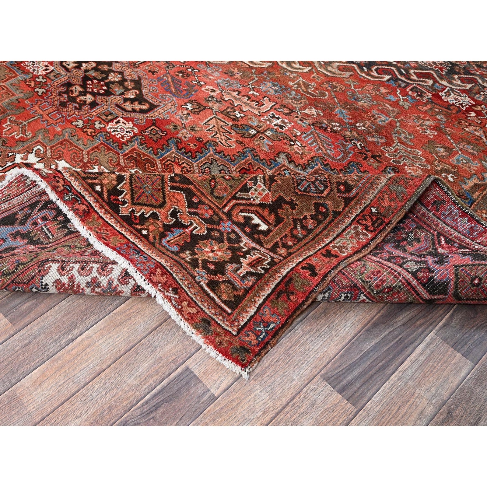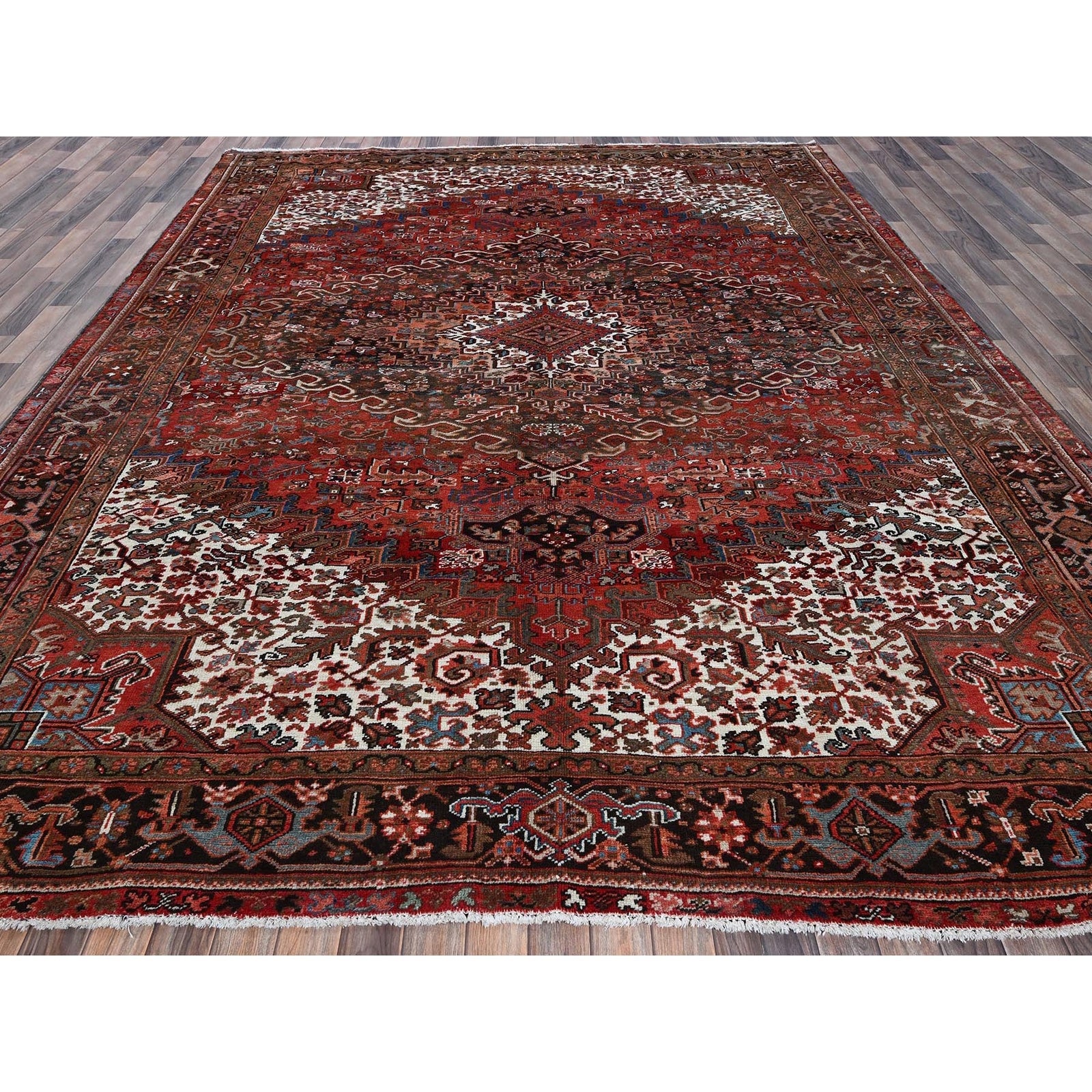 9'8"X12'4" Red Vintage Zoroastrian Heris Even Wear Wool Hand Knotted Rug
