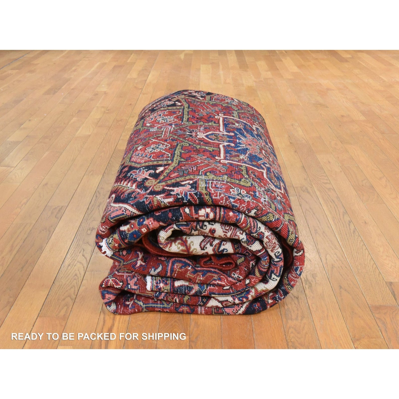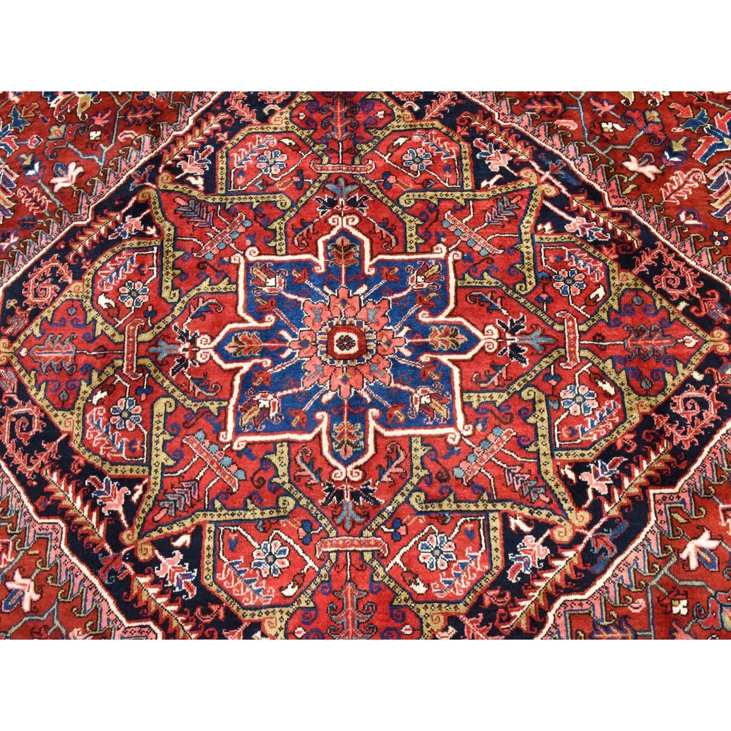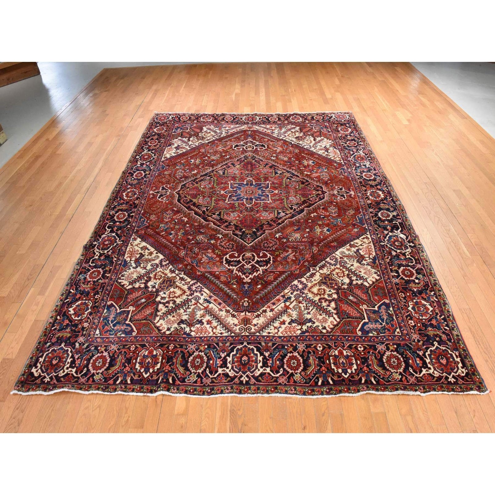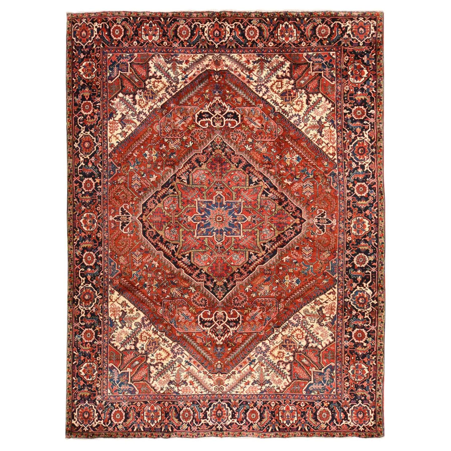 9'8"X13' Red Semi Antique Zoroastrian Heris Clean Hand Knotted Wool Rug