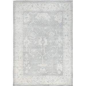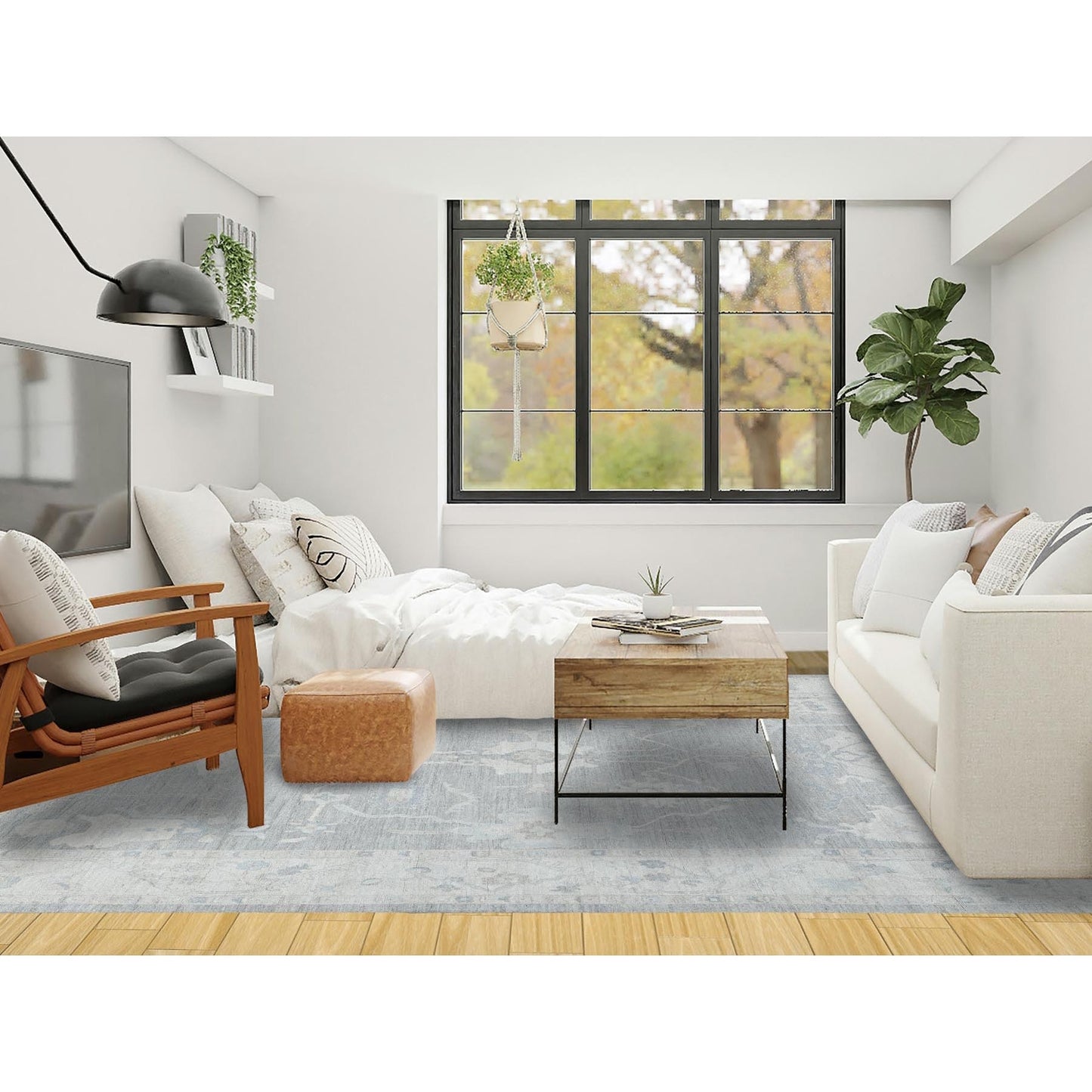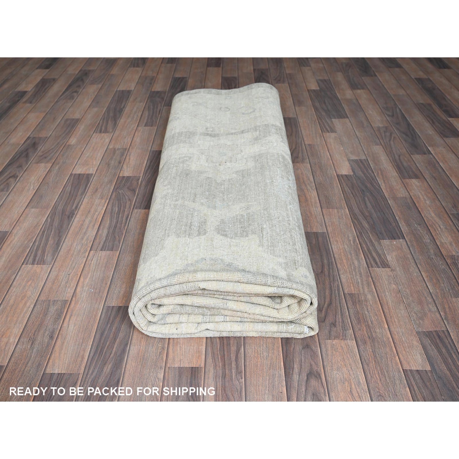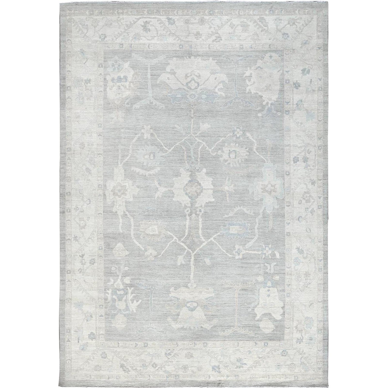 9'8"X13'10" Misty Gray White Wash Peshawar Hand Knotted Pure Wool Rug