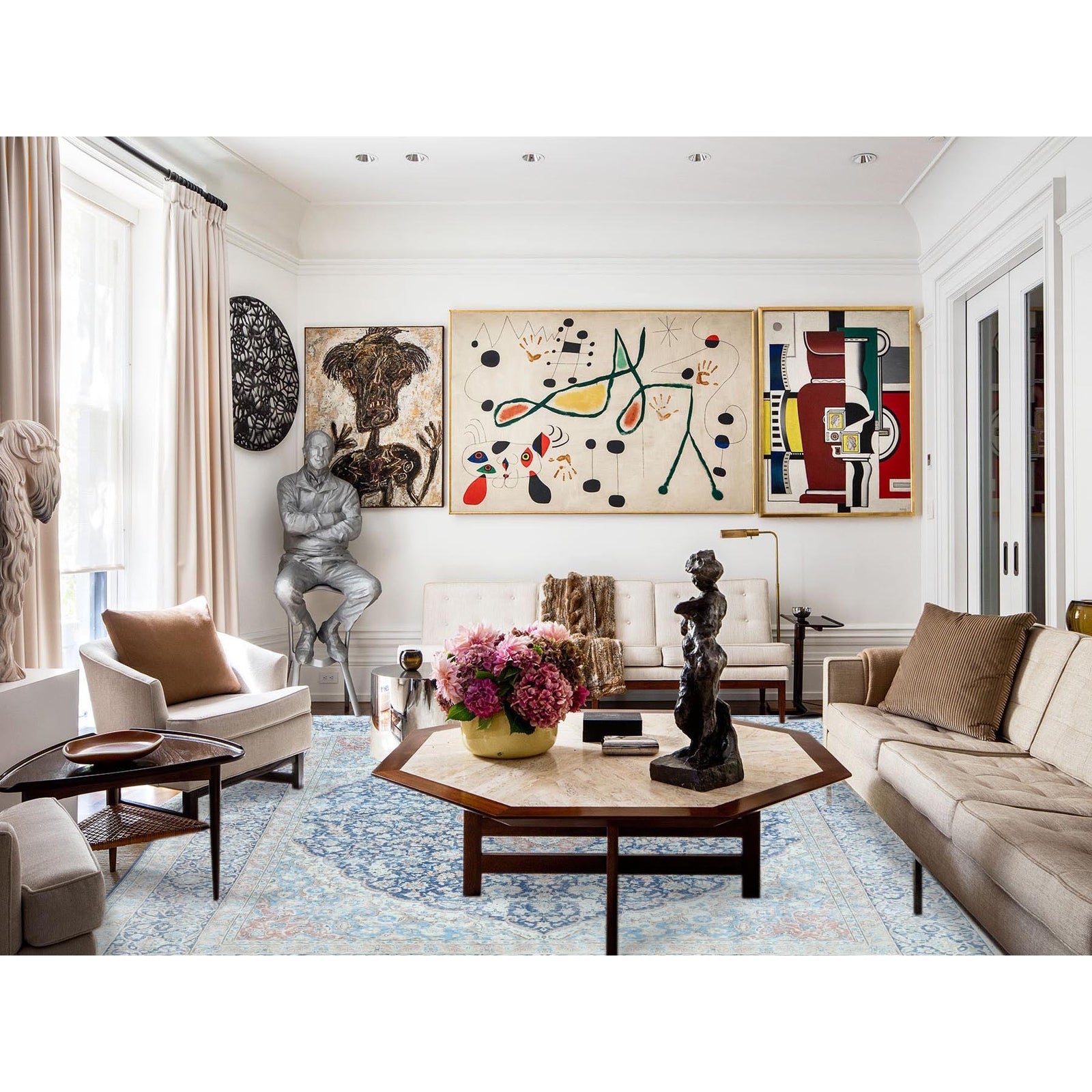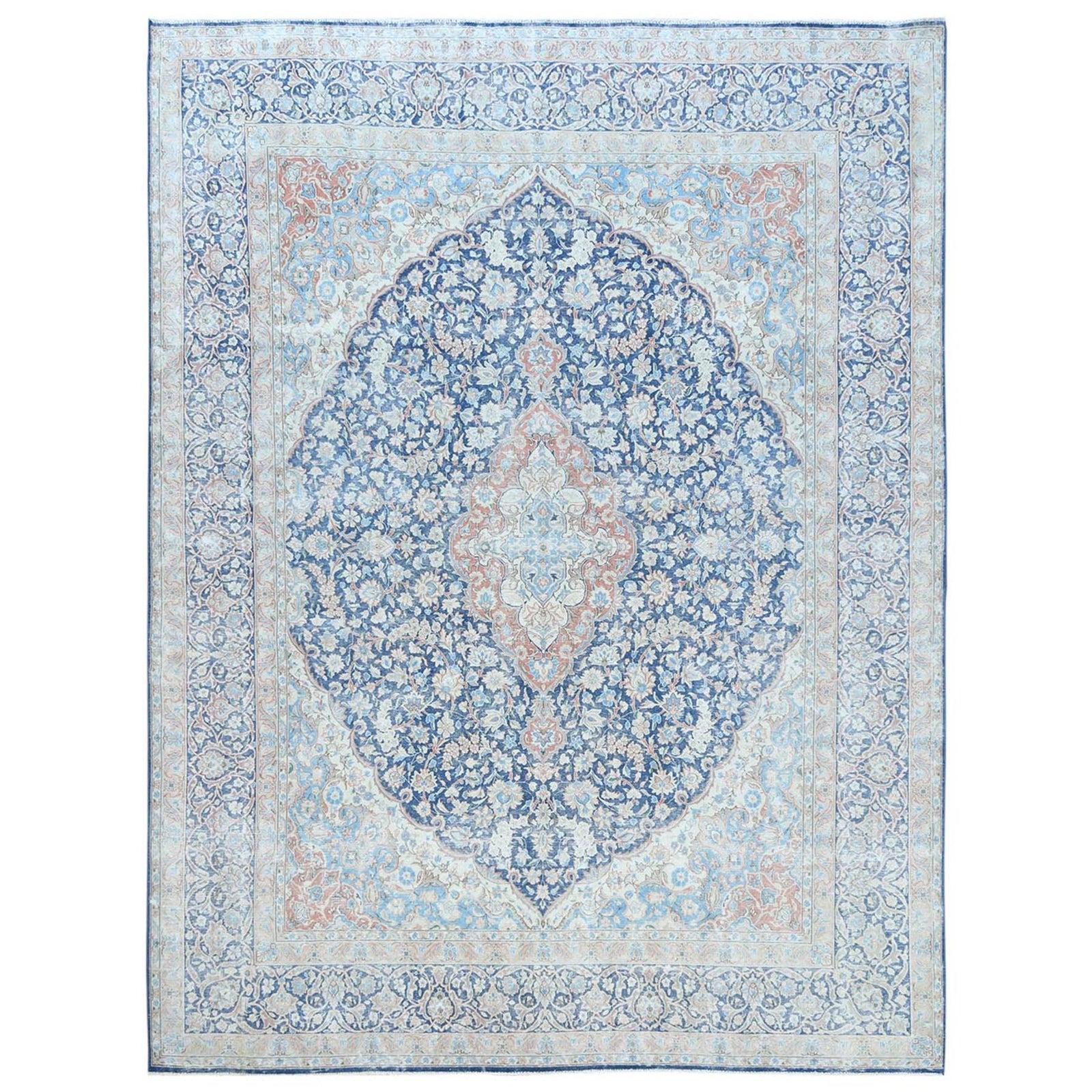 9'9"X12'8" Blue Worn Wool Hand Knotted Distressed Old Farsian Karman Rug
