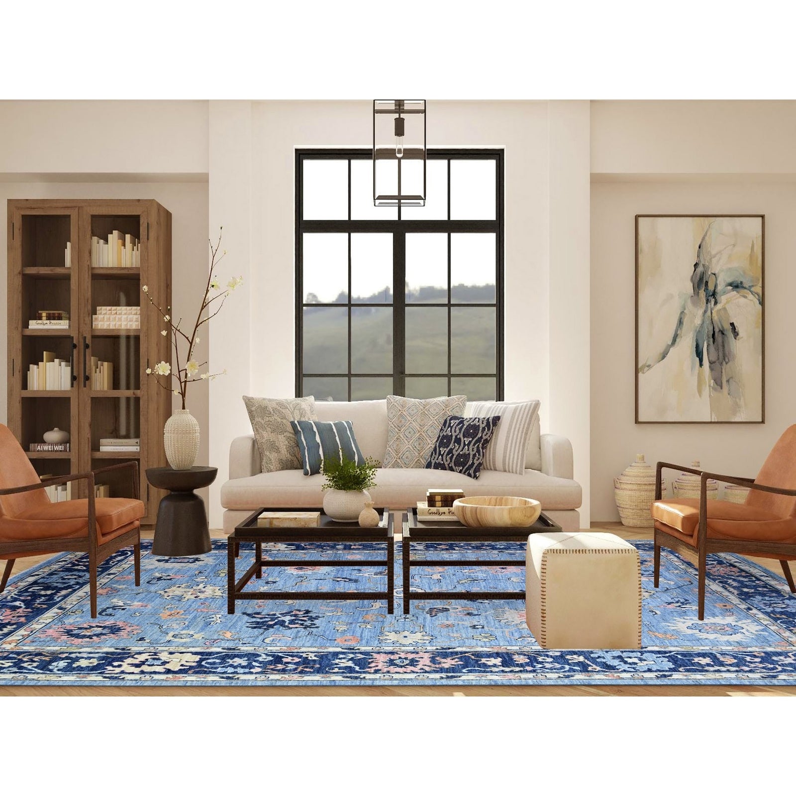 9'9"X13'5" Glaucous Blue Wool Afghan Angora Oushak Wool Hand Knotted Rug