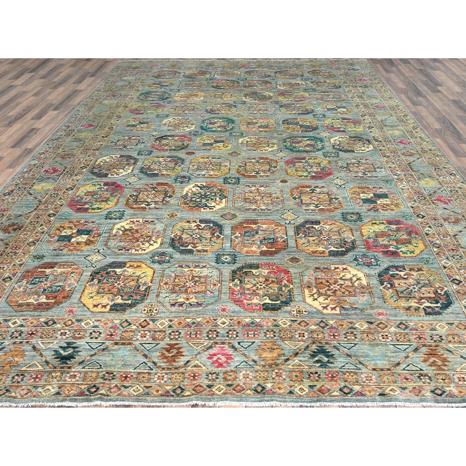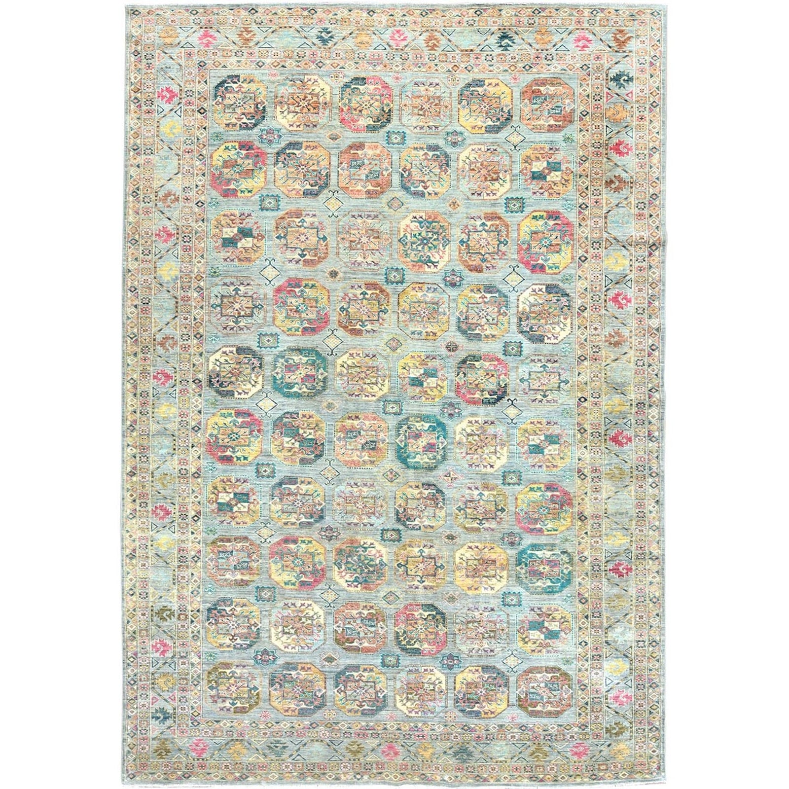 9'9"X14'1" Silver Blue Afghan Super Kazak Pure Wool Hand Knotted Rug