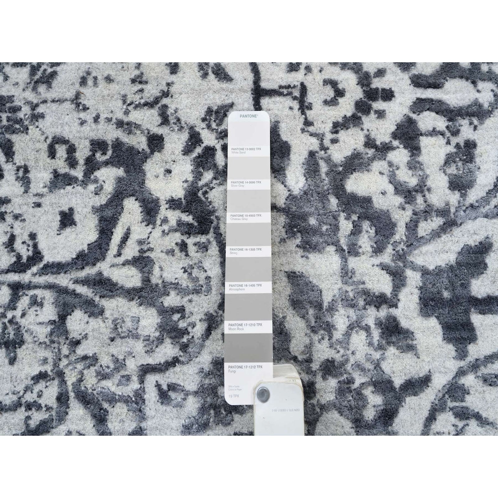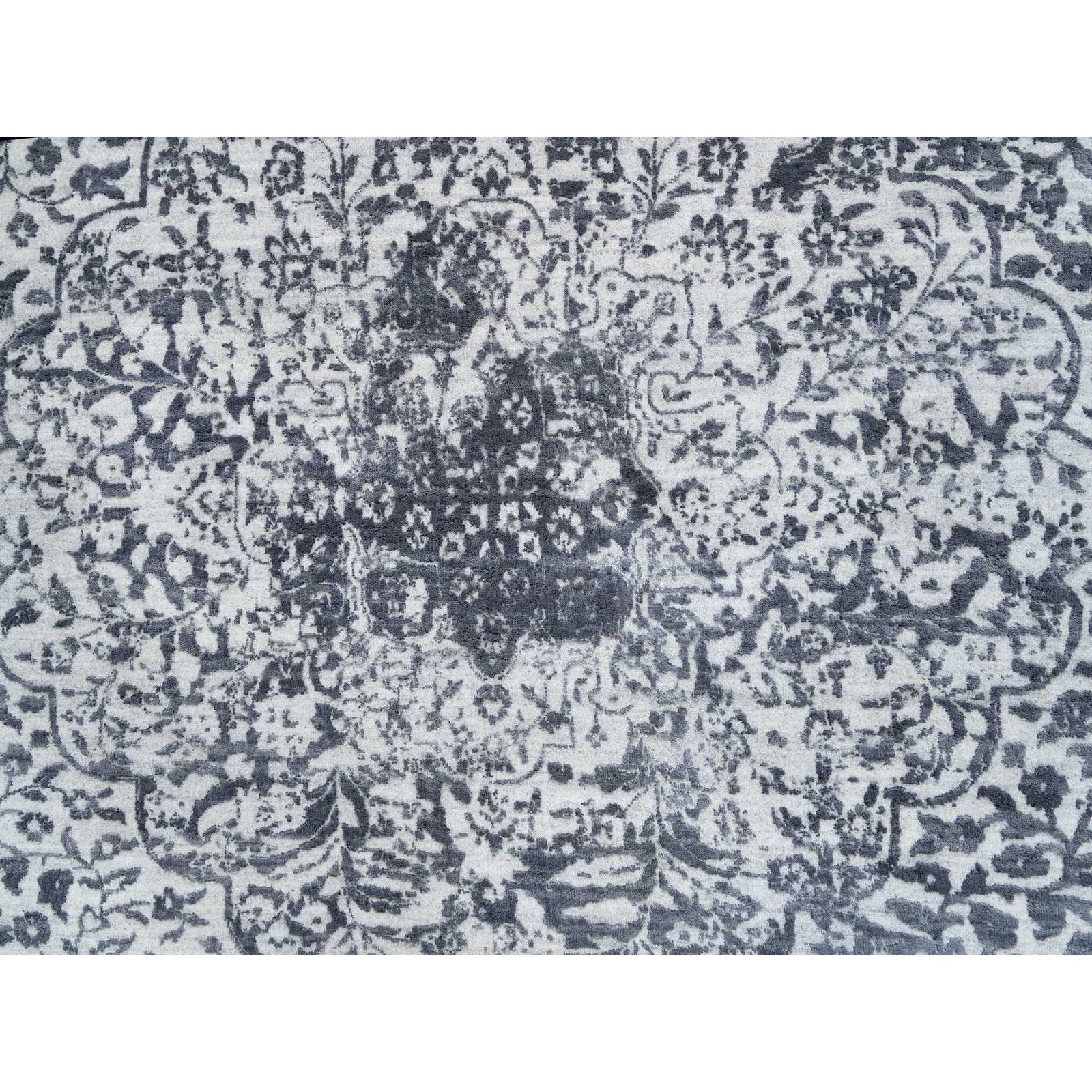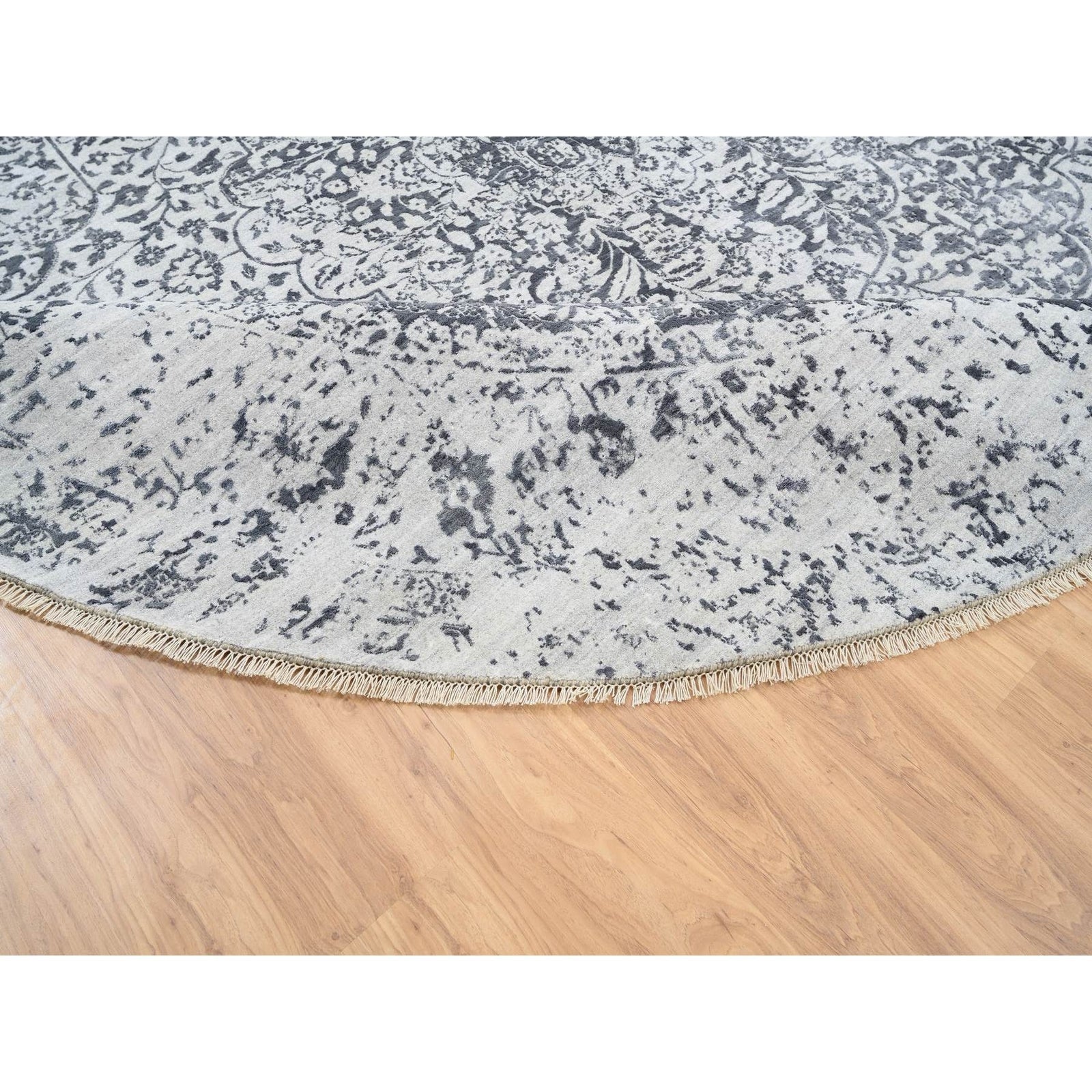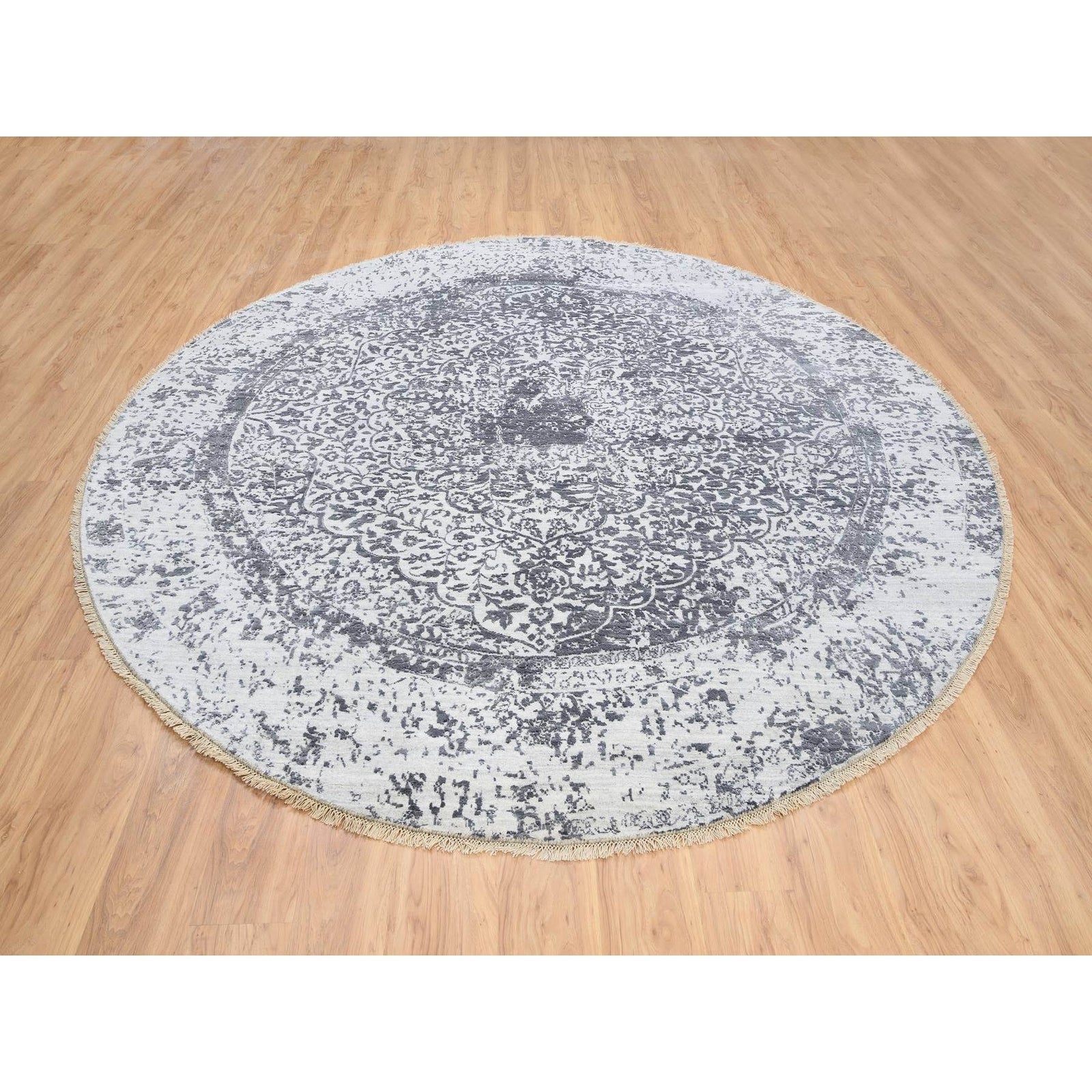 9'9"X9'9" Gray Erased Farsian Design Wool/Silk Hand Knotted Round Rug