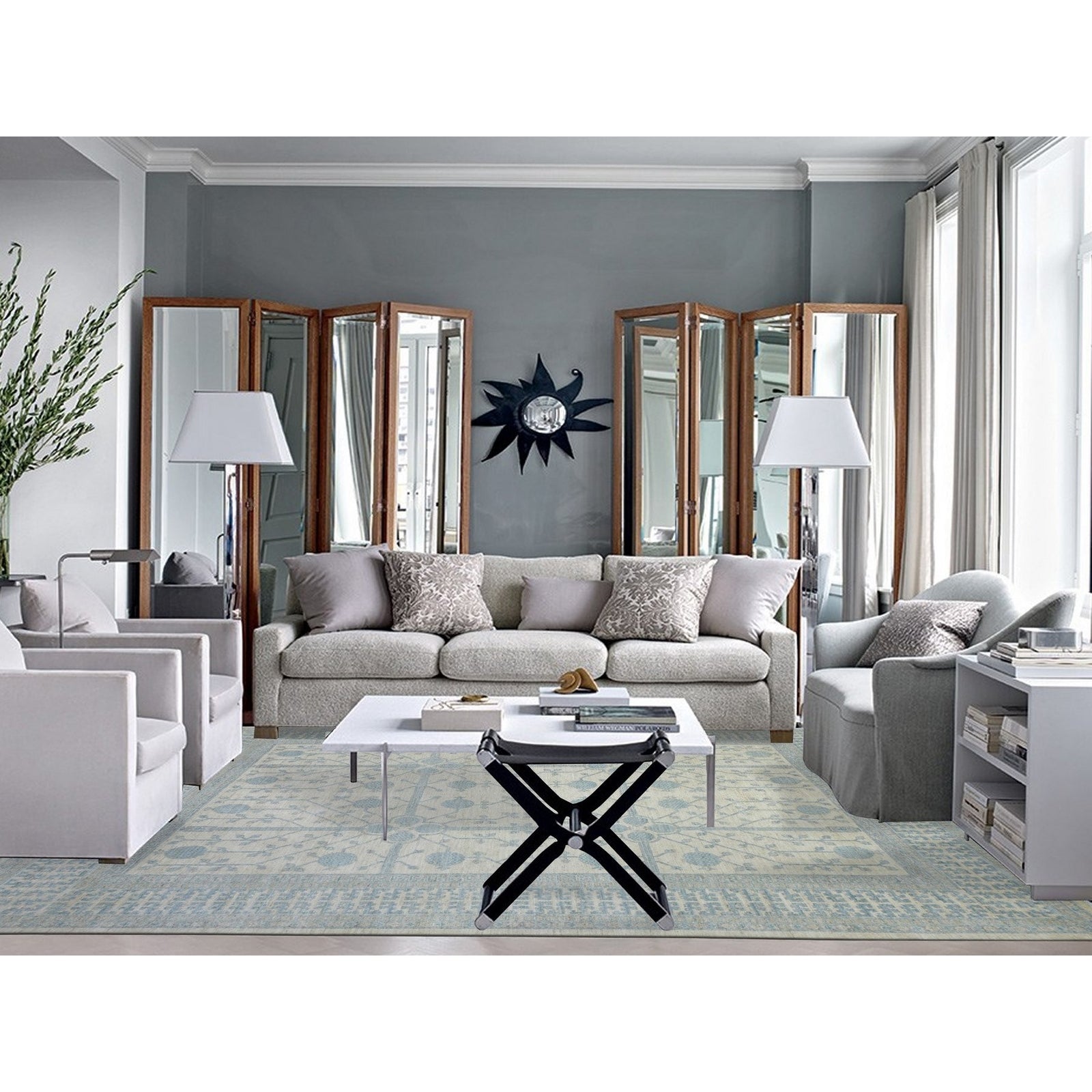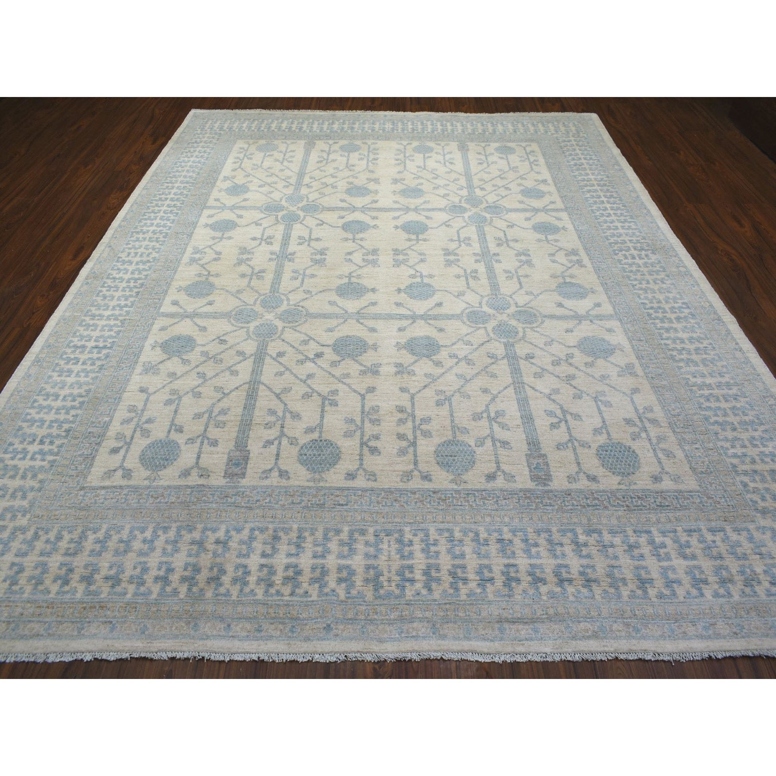 9'X11' Ivory Milk Wash Peshawar, Hand Knotted Pure Wool Natural Dyes, Rug