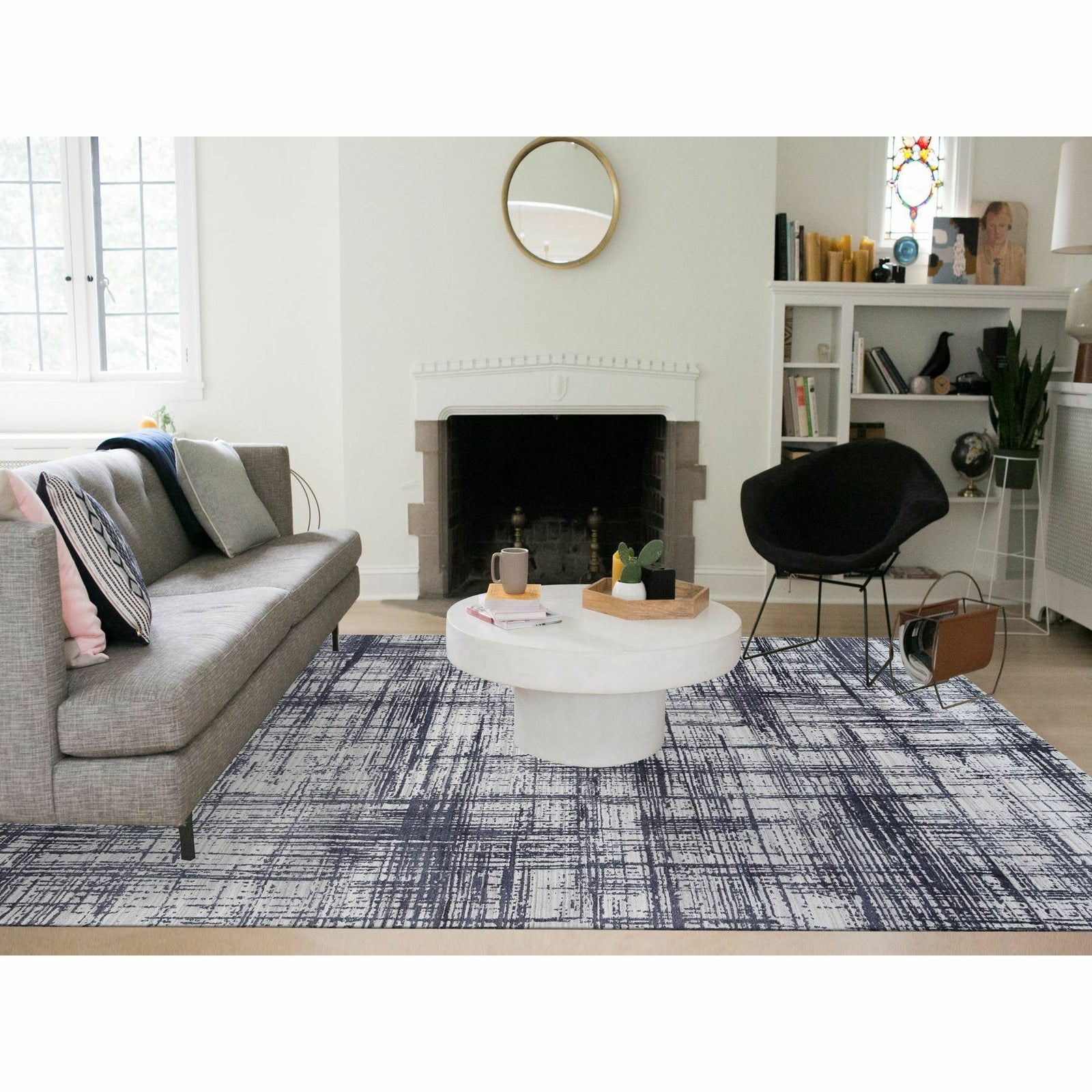 9'X11'10" Black Modern Design Wool And Silk Hand Loomed Rug