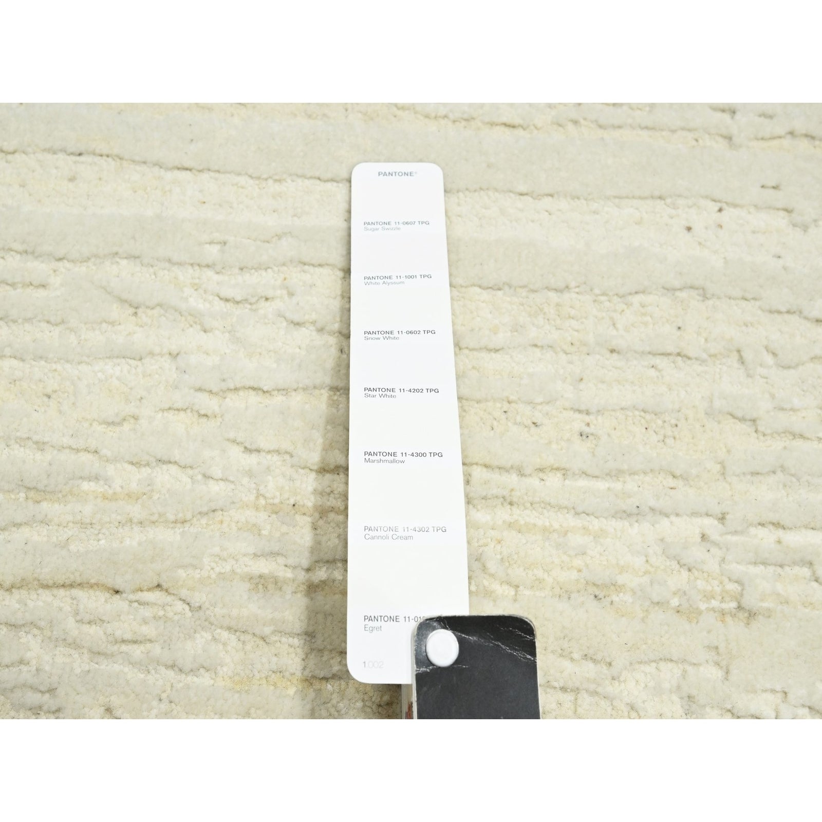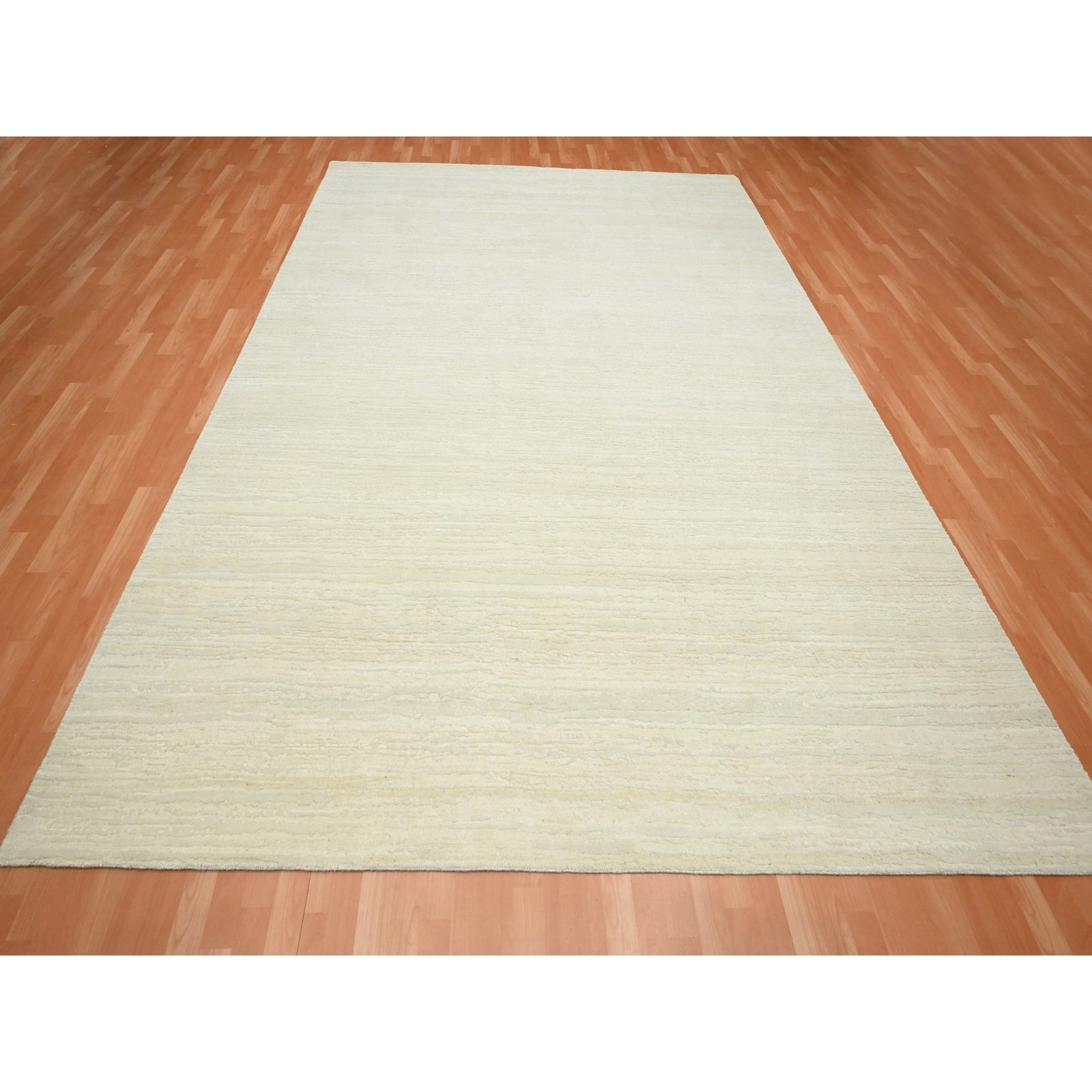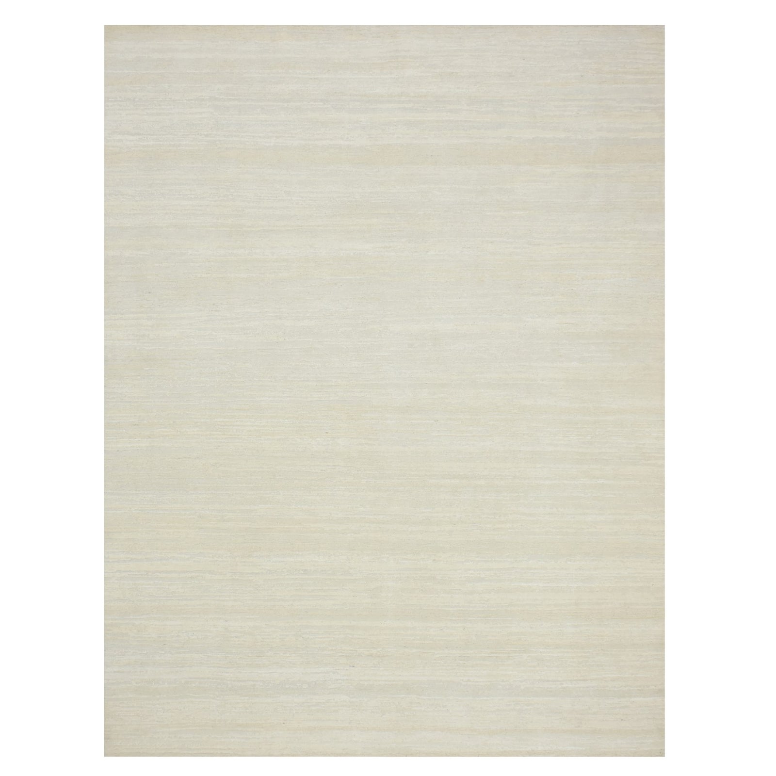 9'X11'10" Chiffon White Plain Solid Design Textured Wool Hand Knotted Rug