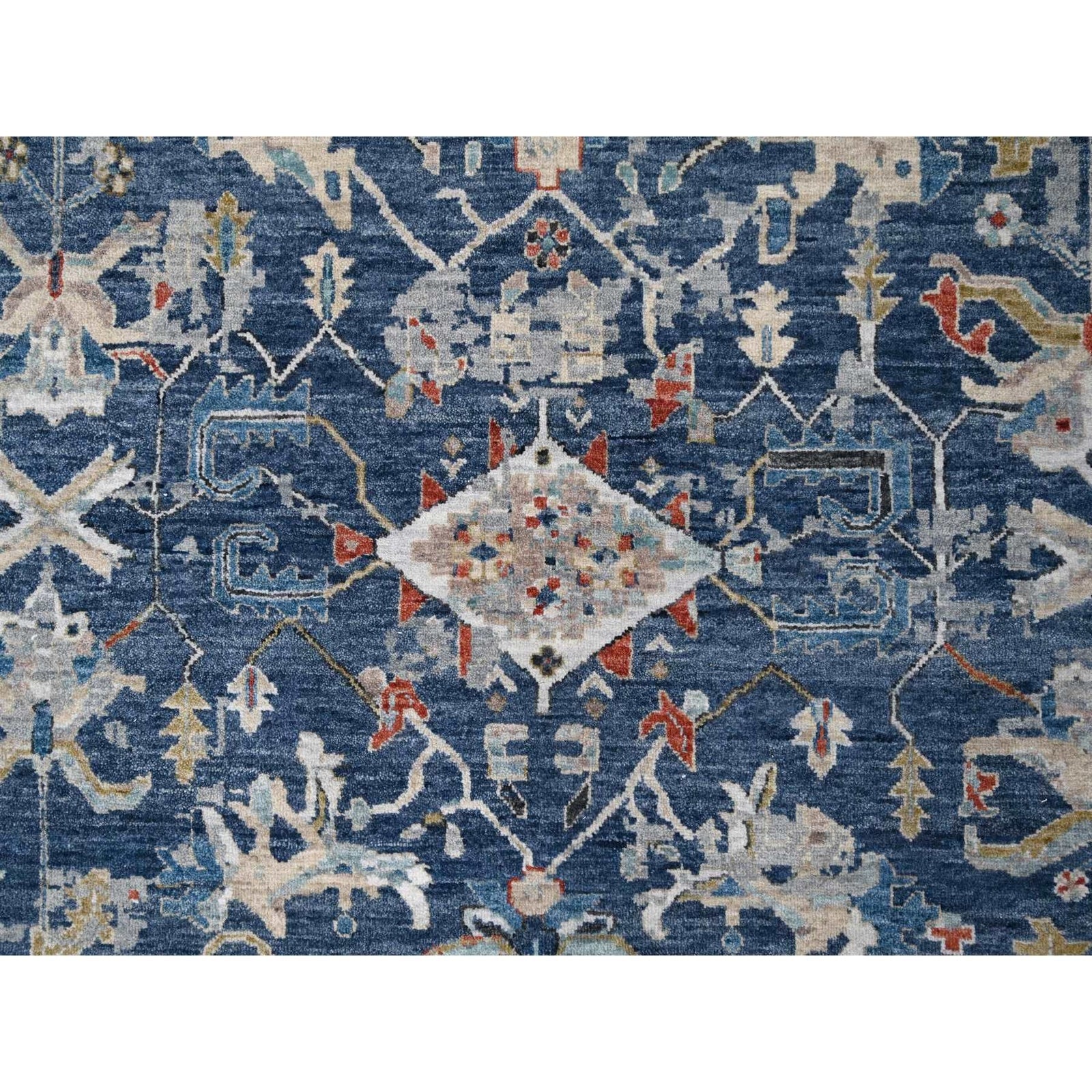 9'X11'10" Dress Blue Erased Heris Design Wool Hand Knotted Oriental Rug