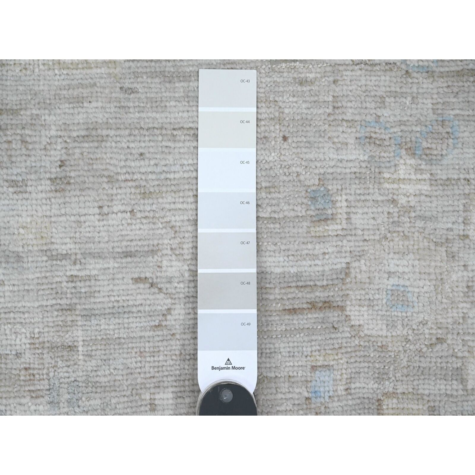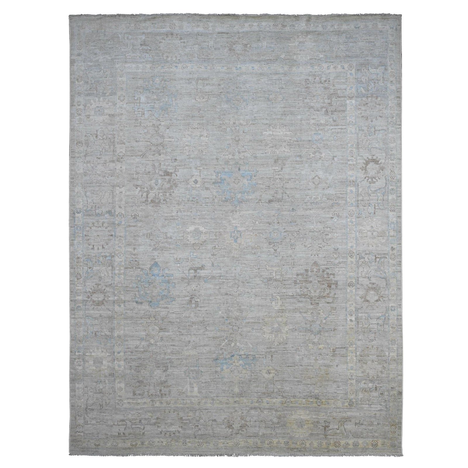 9'X11'10" Gray Afghan Angora Oushak Leaf Design Hand Knotted All Wool Rug