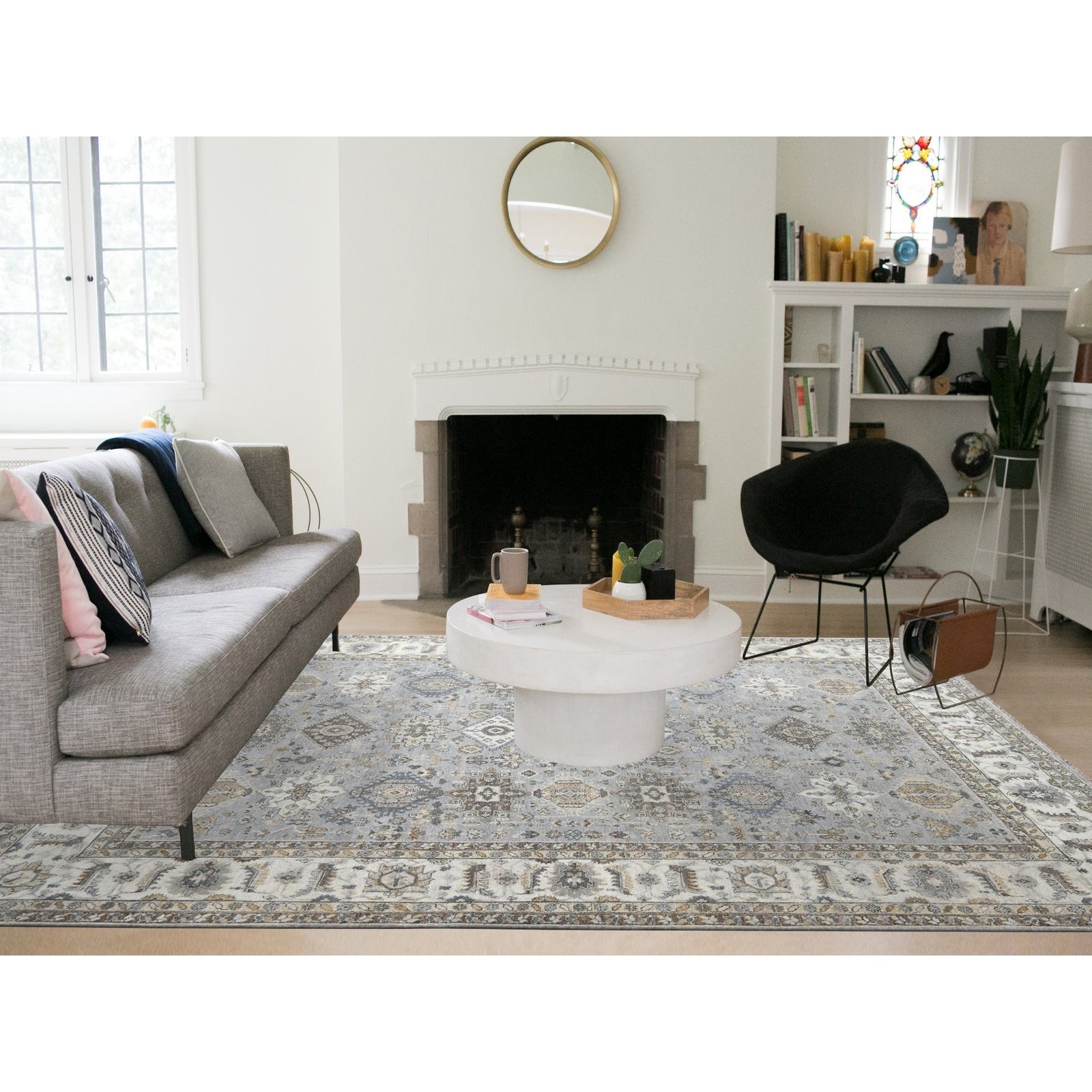 9'X11'10" Oxford Gray Hand Knotted Karajeh Design Soft Wool Oriental Rug