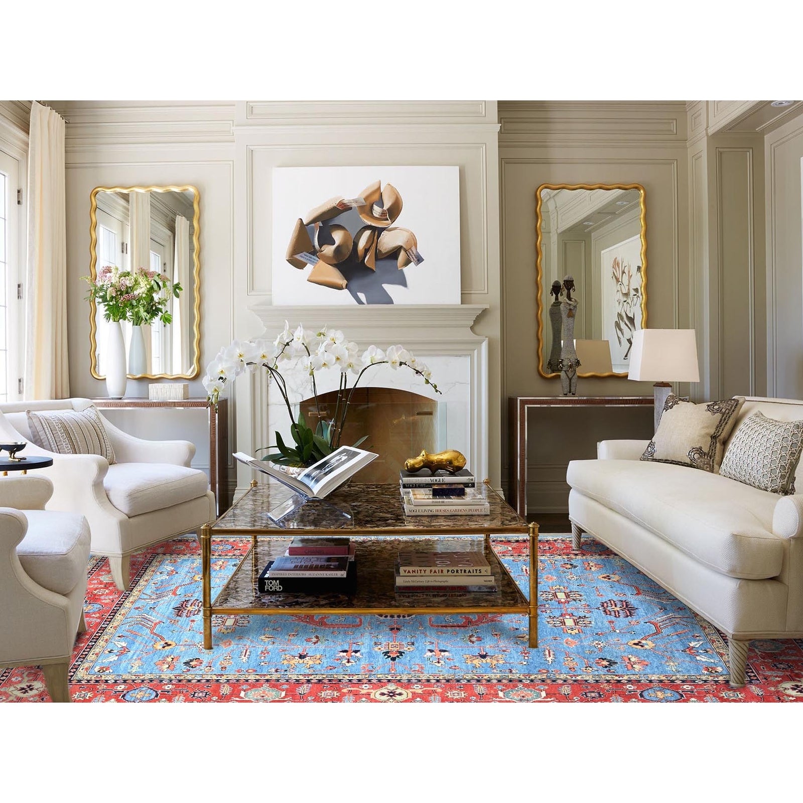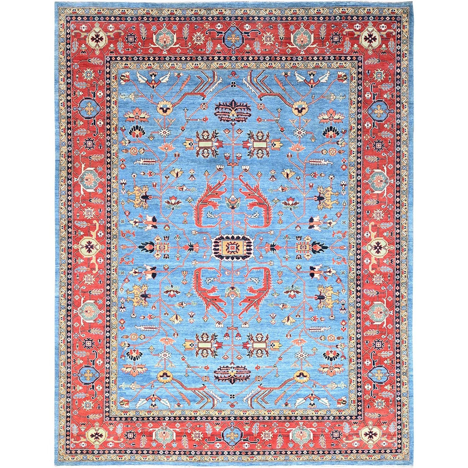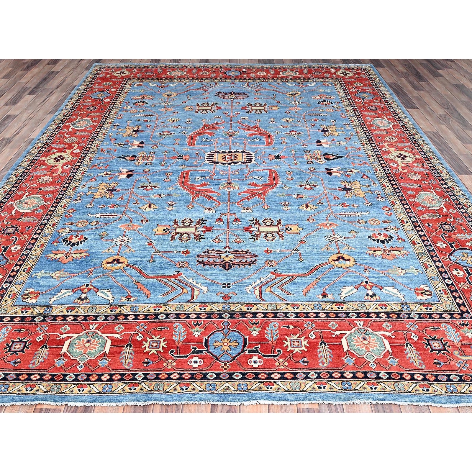 9'X11'6" Blue Extra Soft Wool Afghan Peshawar Hand Knotted Oriental Rug