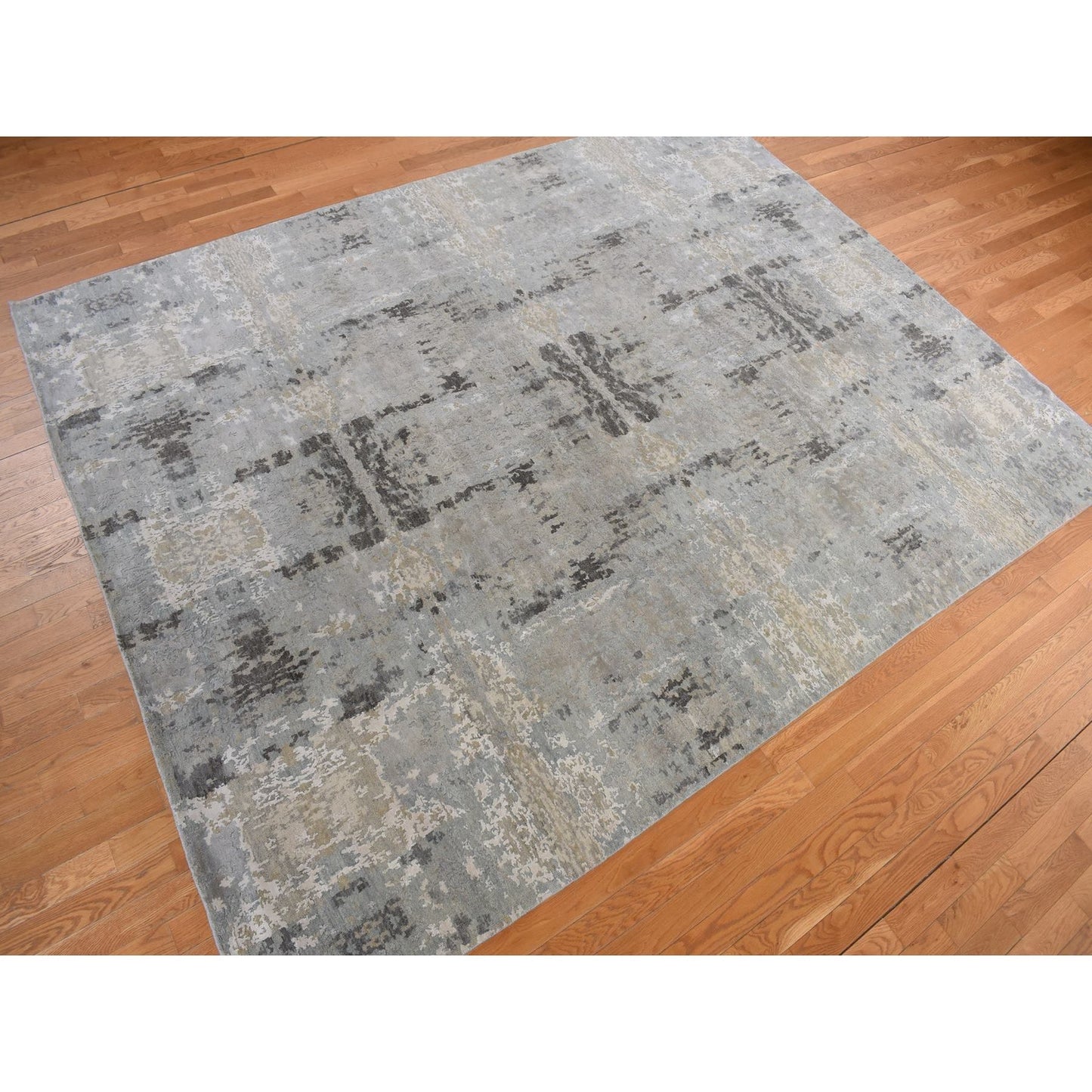 9'X11'7" Gray Modern Nepali Weave Wool And Silk Hand Knotted Rug