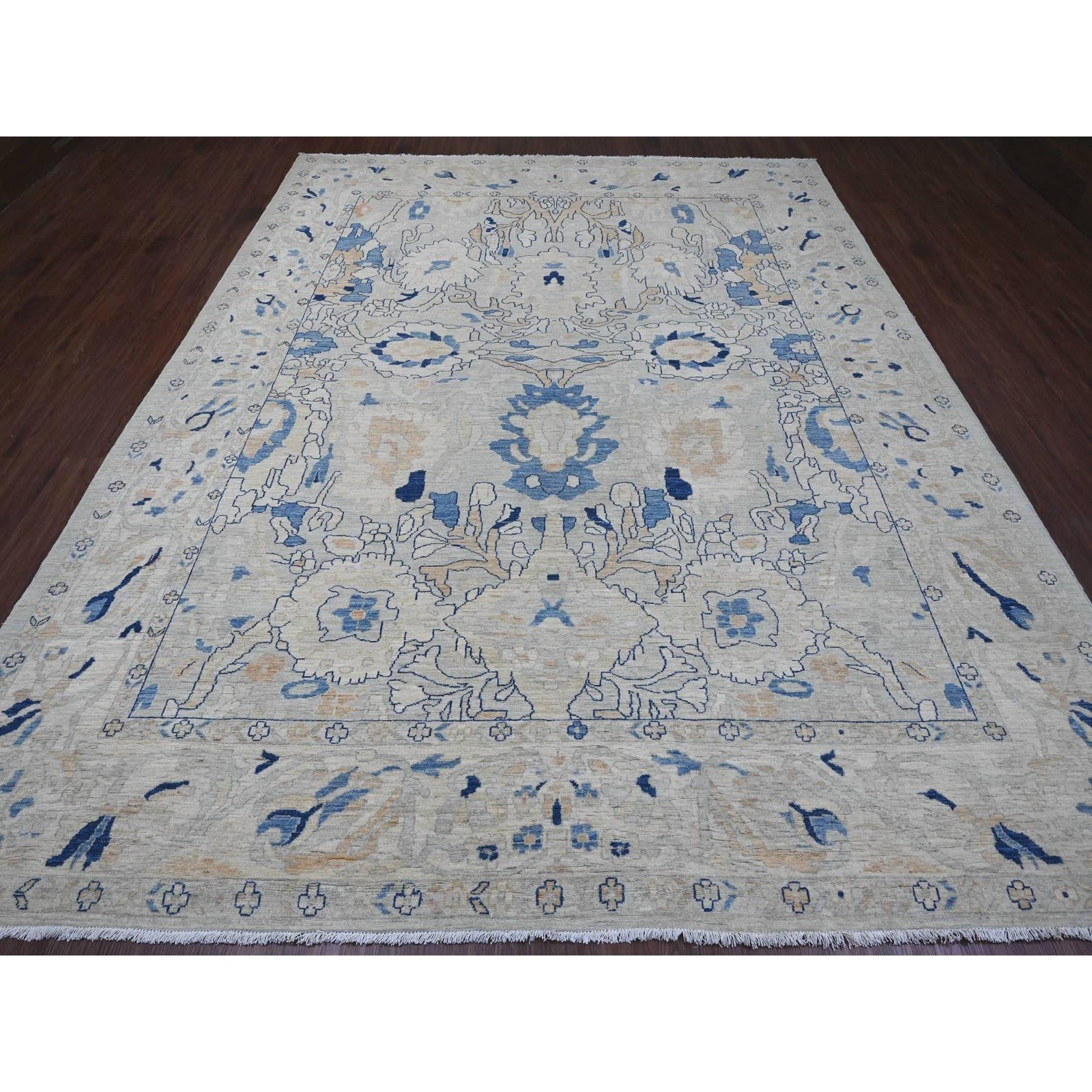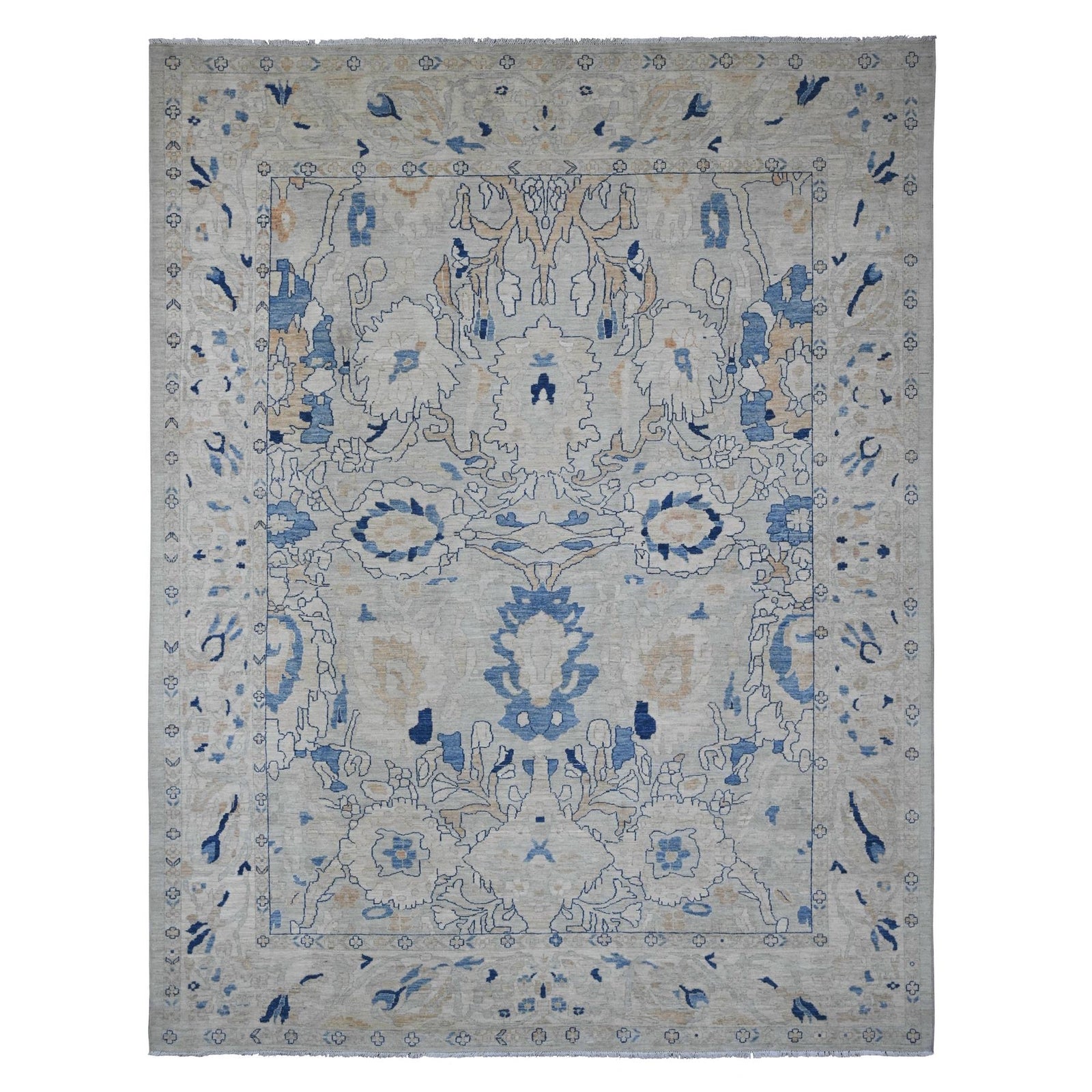 9'X11'7" Oyster Gray Ziegler Mahal Design Peshawar Hand Knotted Wool Rug