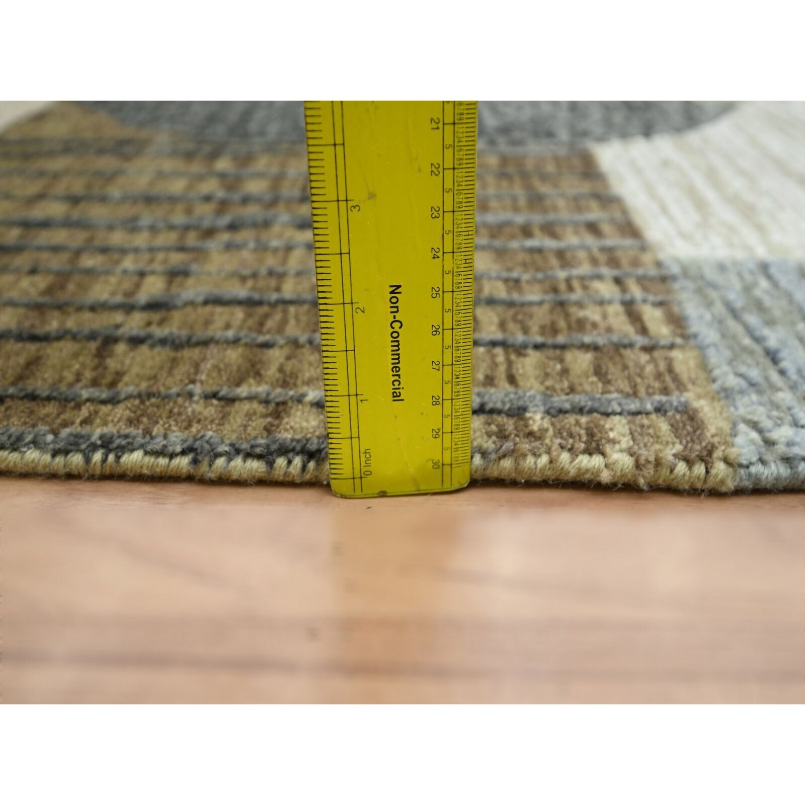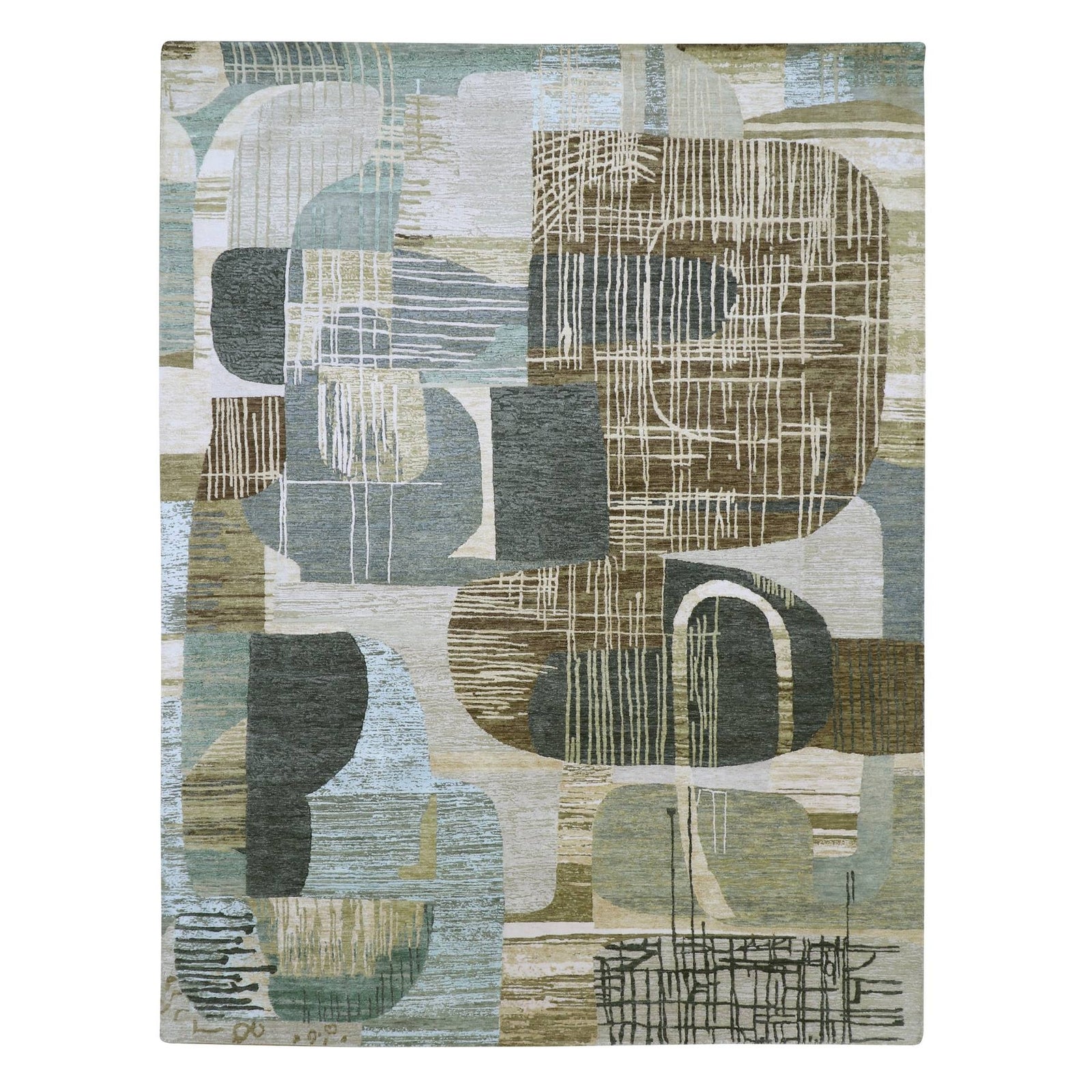 9'X11'9" Gray-Brown Abstract Geometric Pattern Hand Knotted Pure Wool Rug
