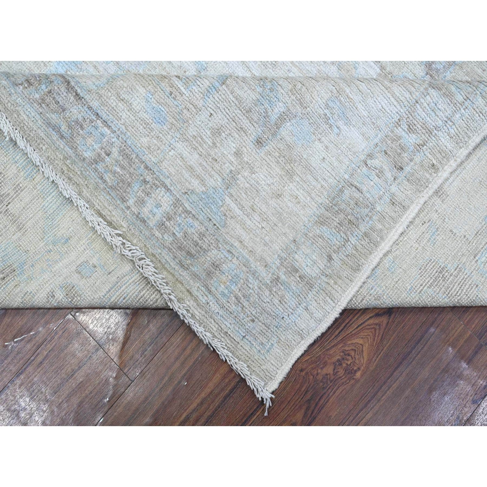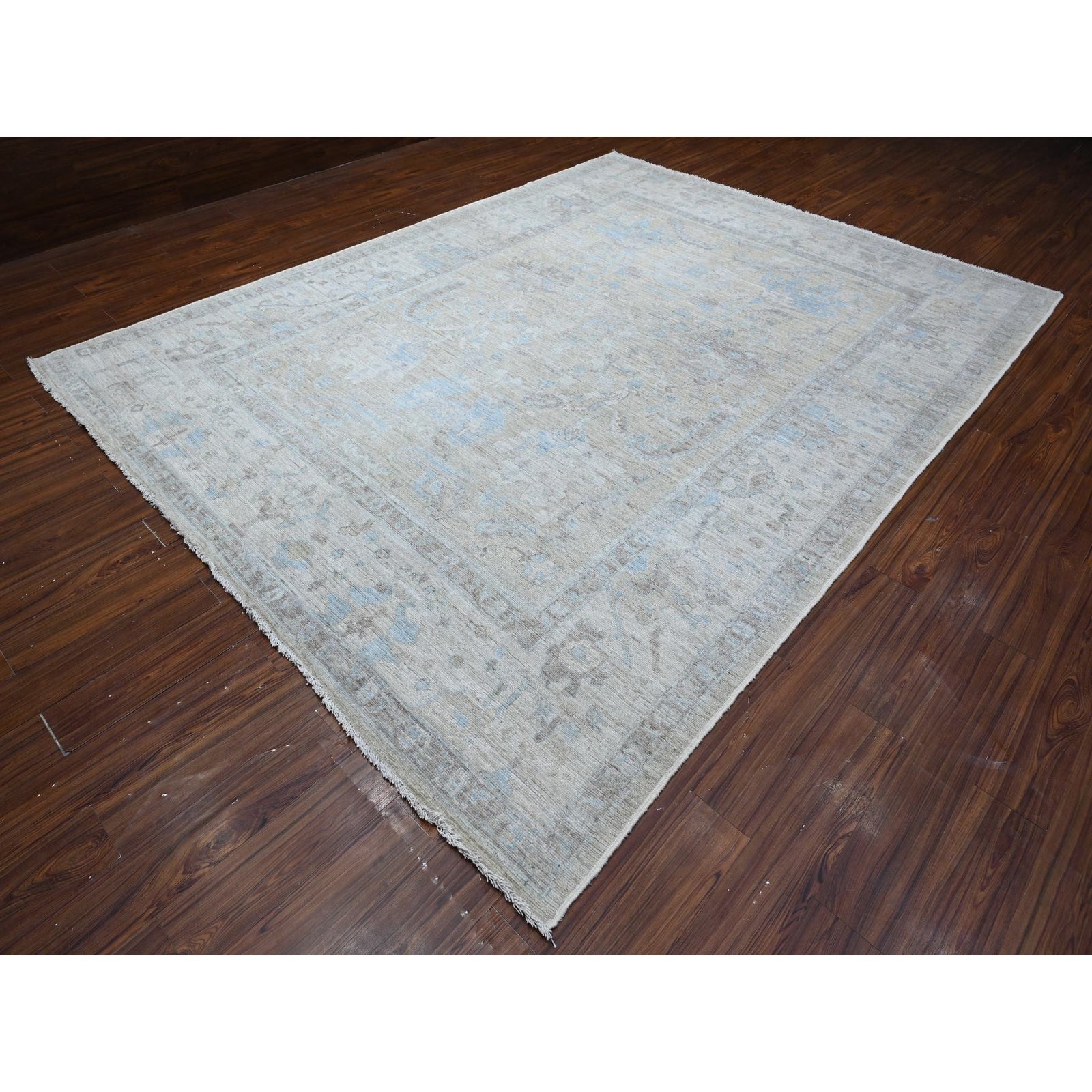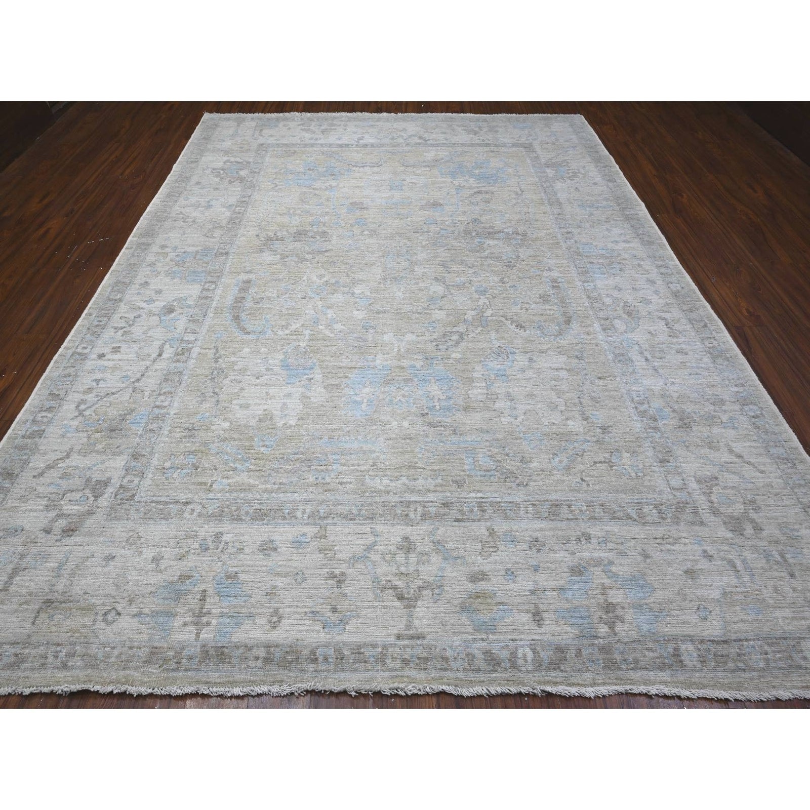 9'X11'9" Silver Gray Hand Knotted Faded Afghan Angora Oushak Oriental Rug