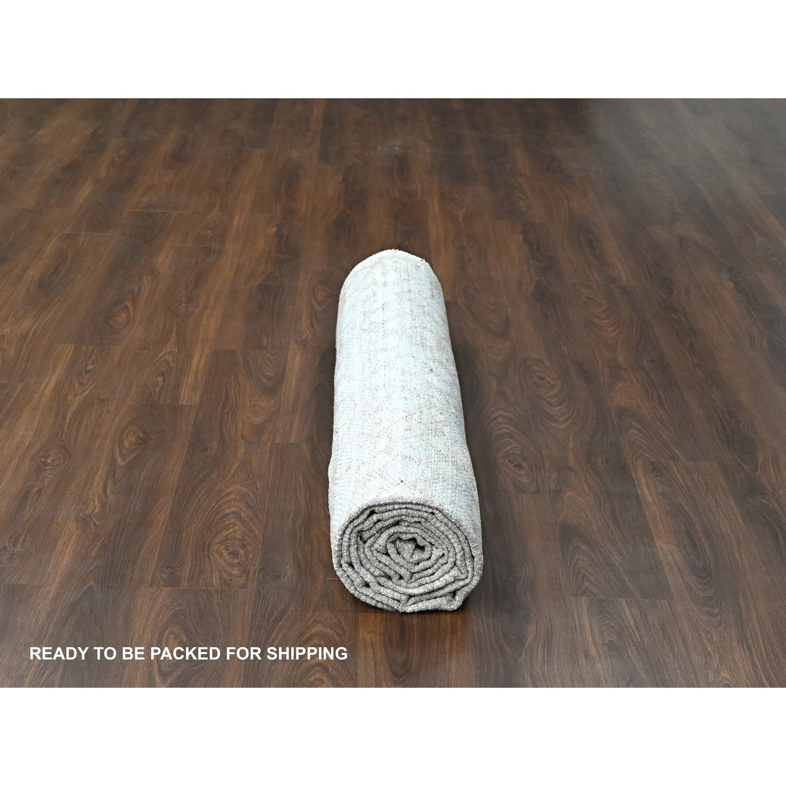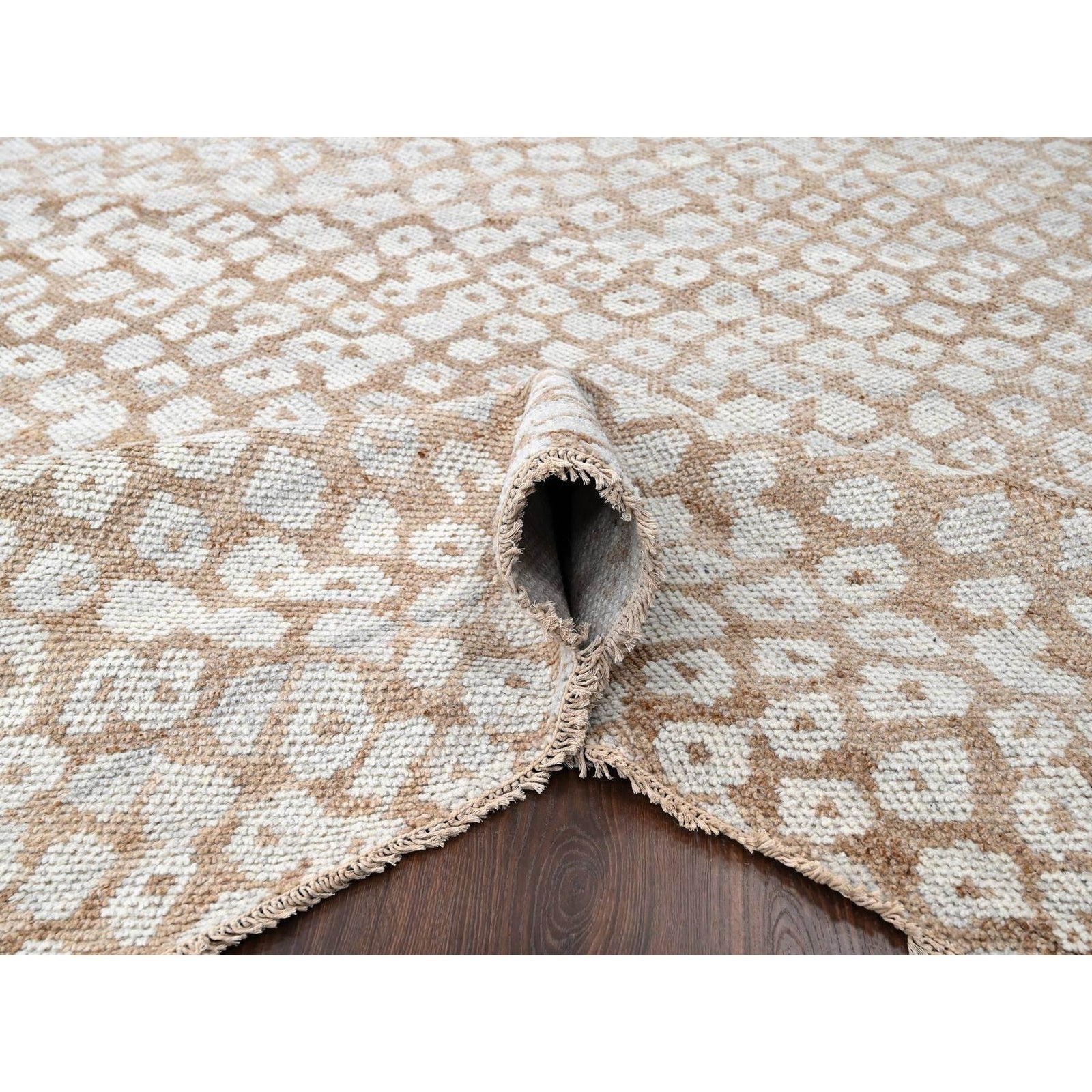 9'X12' Almond Brown Cropped Thin Hand Knotted Natural Wool Oriental Rug