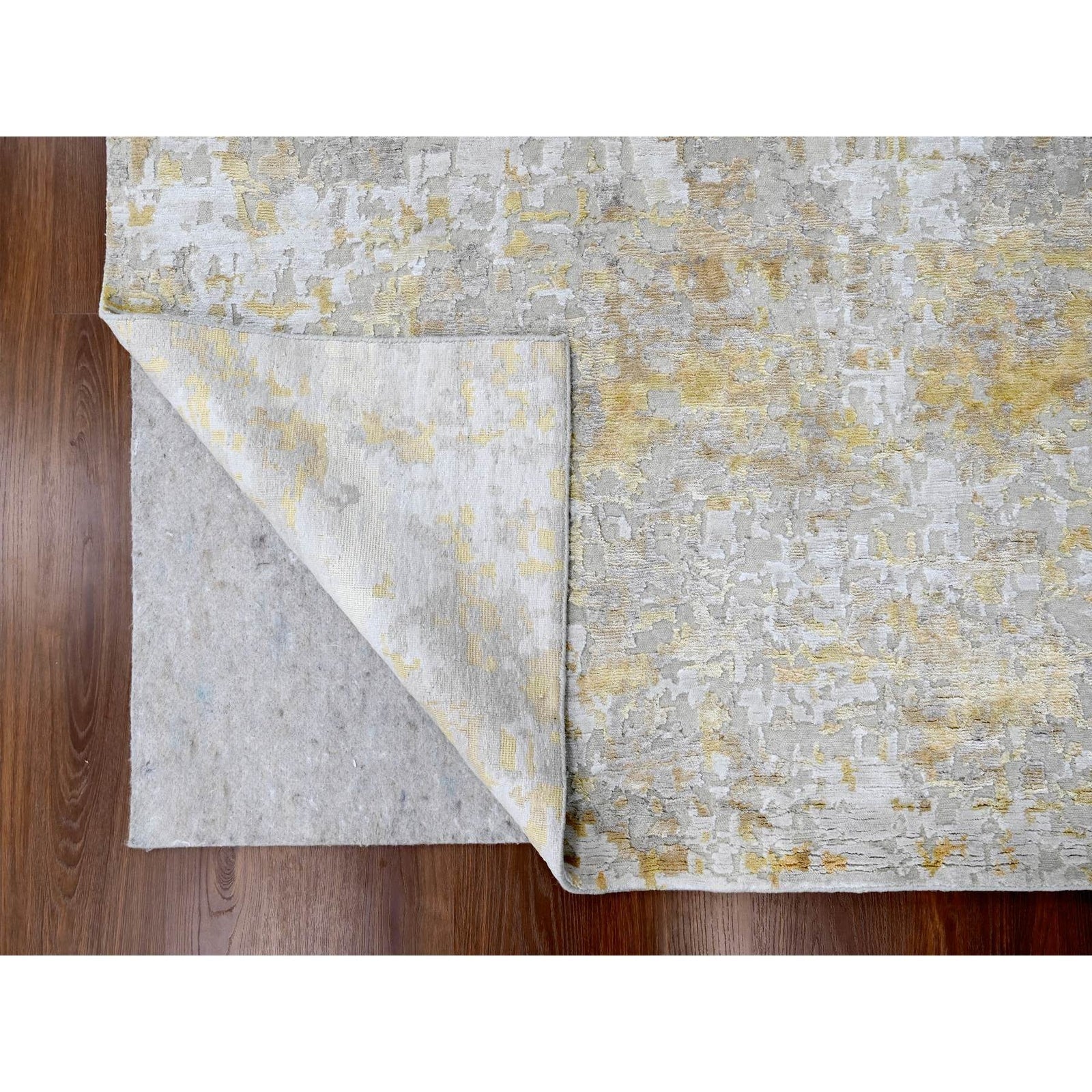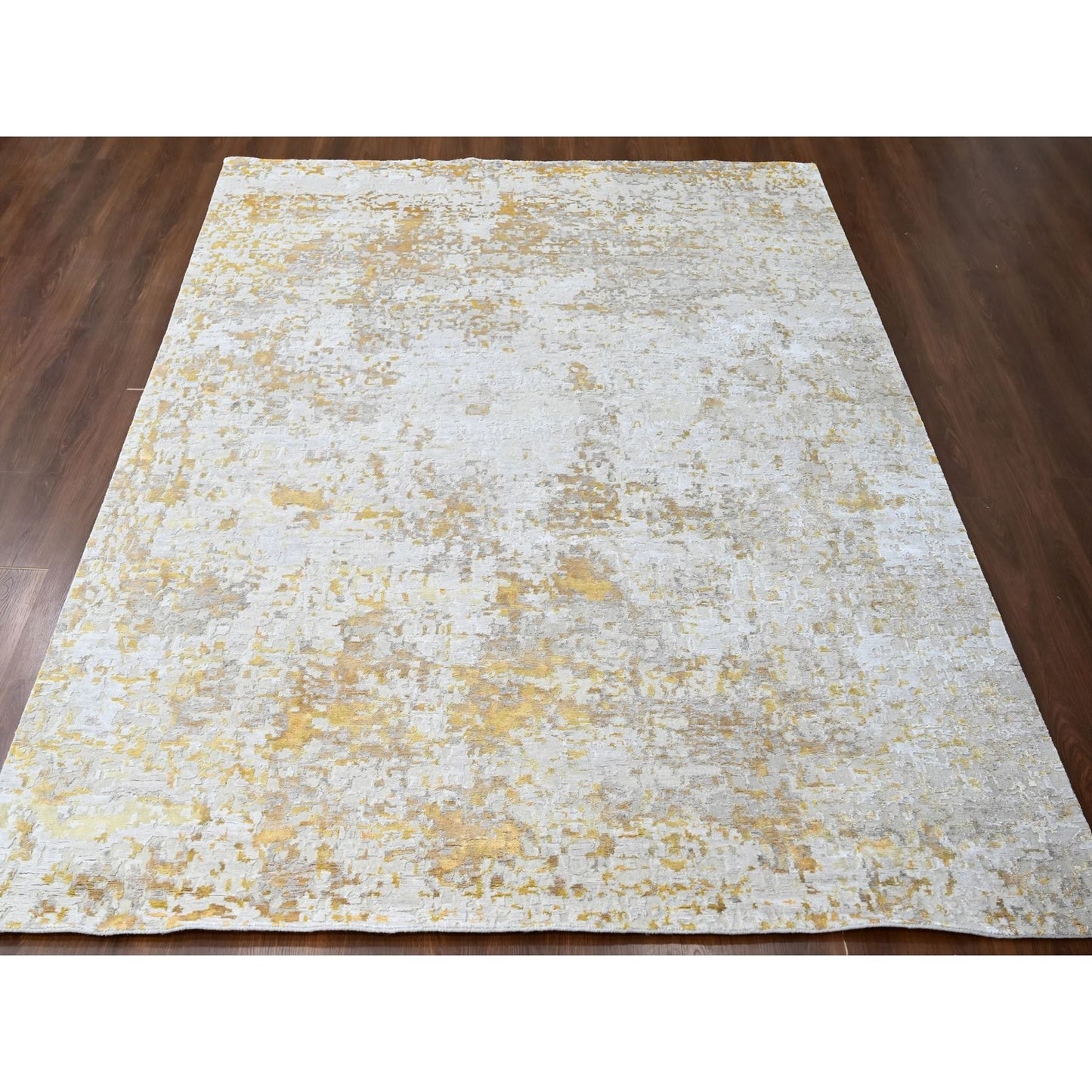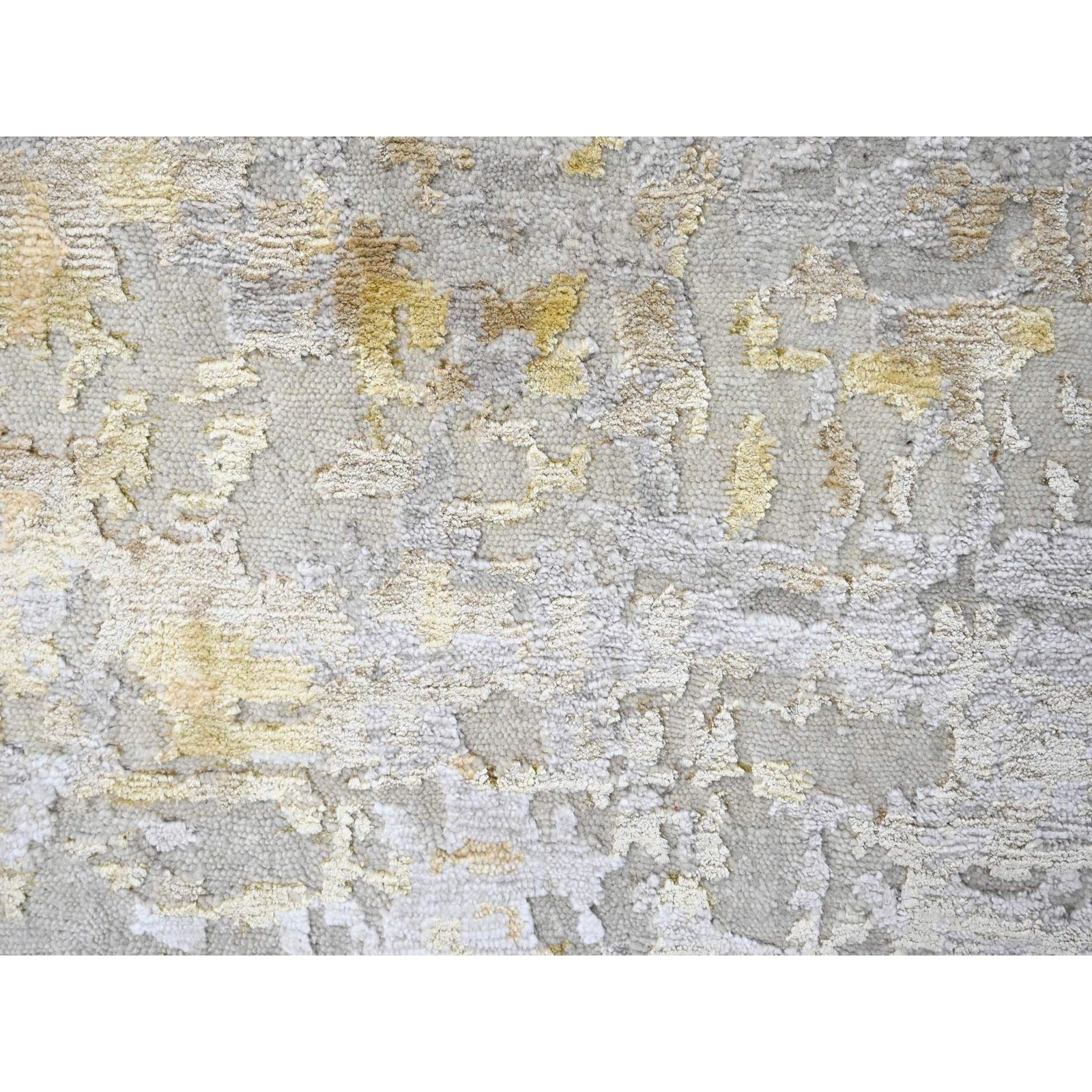 9'X12' Beige With Gold Abstract Design Wool And Silk Hand Knotted Rug