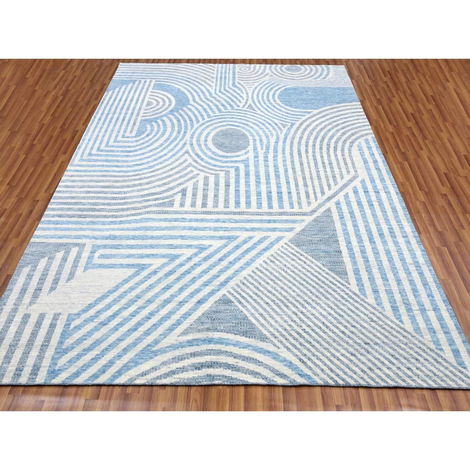9'X12' Blue Hand Knotted Geometric Art Deco Collection Pure Wool Rug