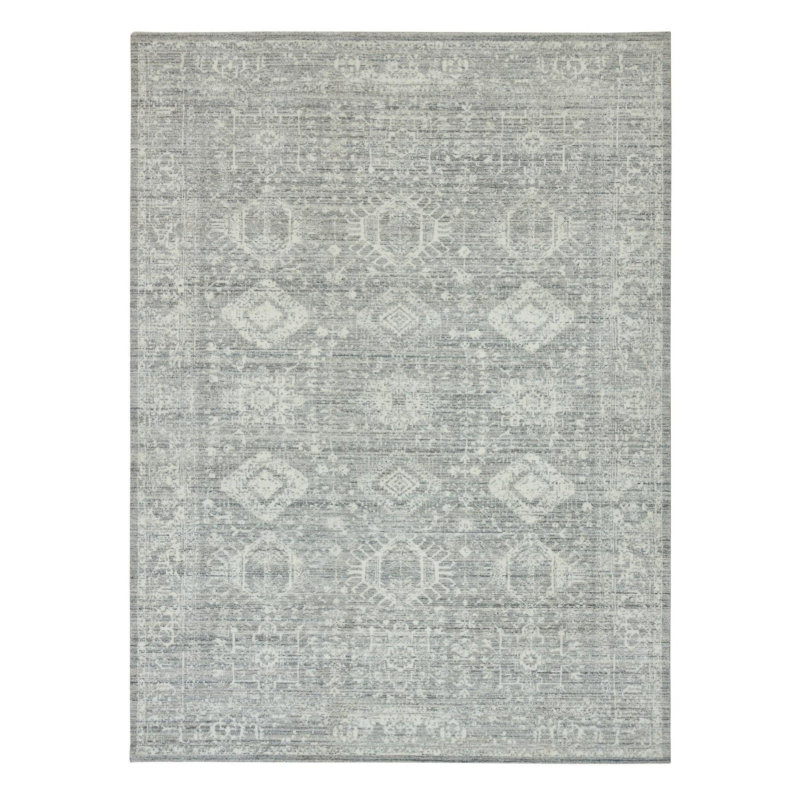 9'X12' Cloudy Gray Karajeh Design 100% Wool Hand Loomed Oriental Rug
