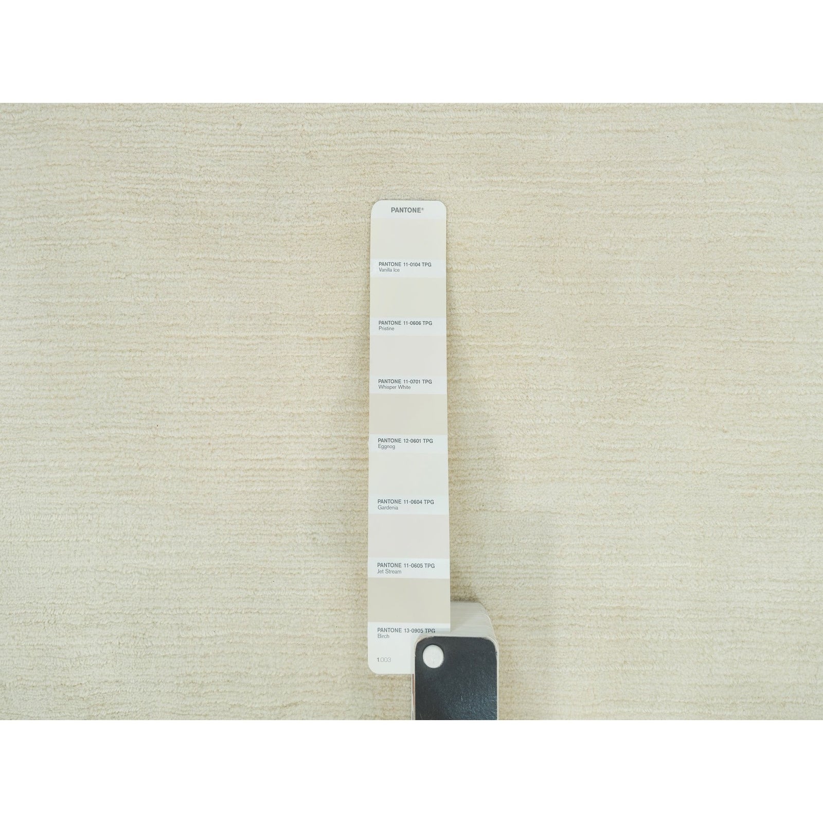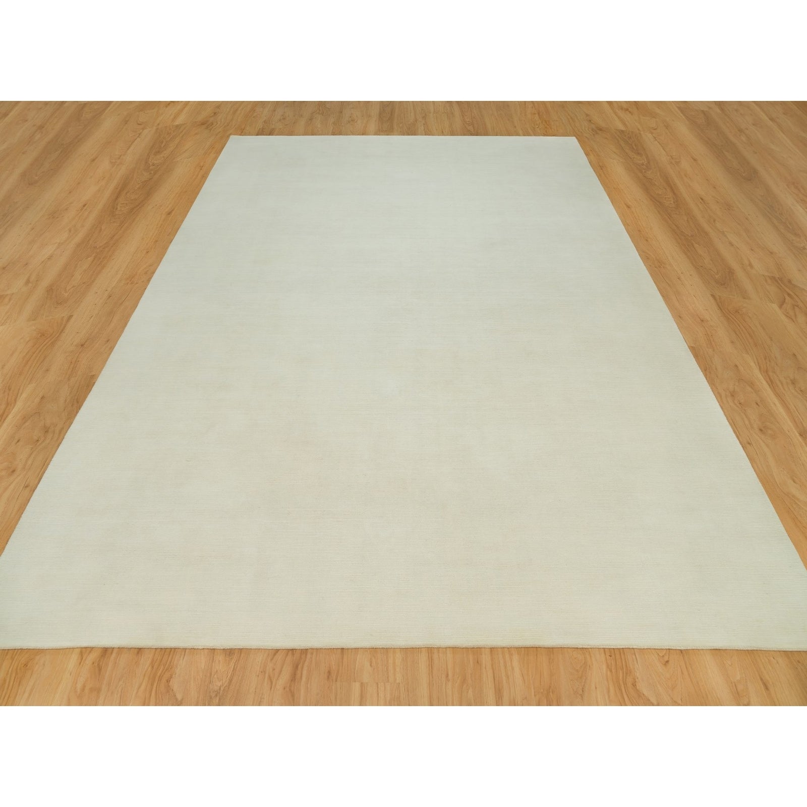 9'X12' Comfort Ivory Modern Loom Knotted Wool And Silk Plain Oriental Rug