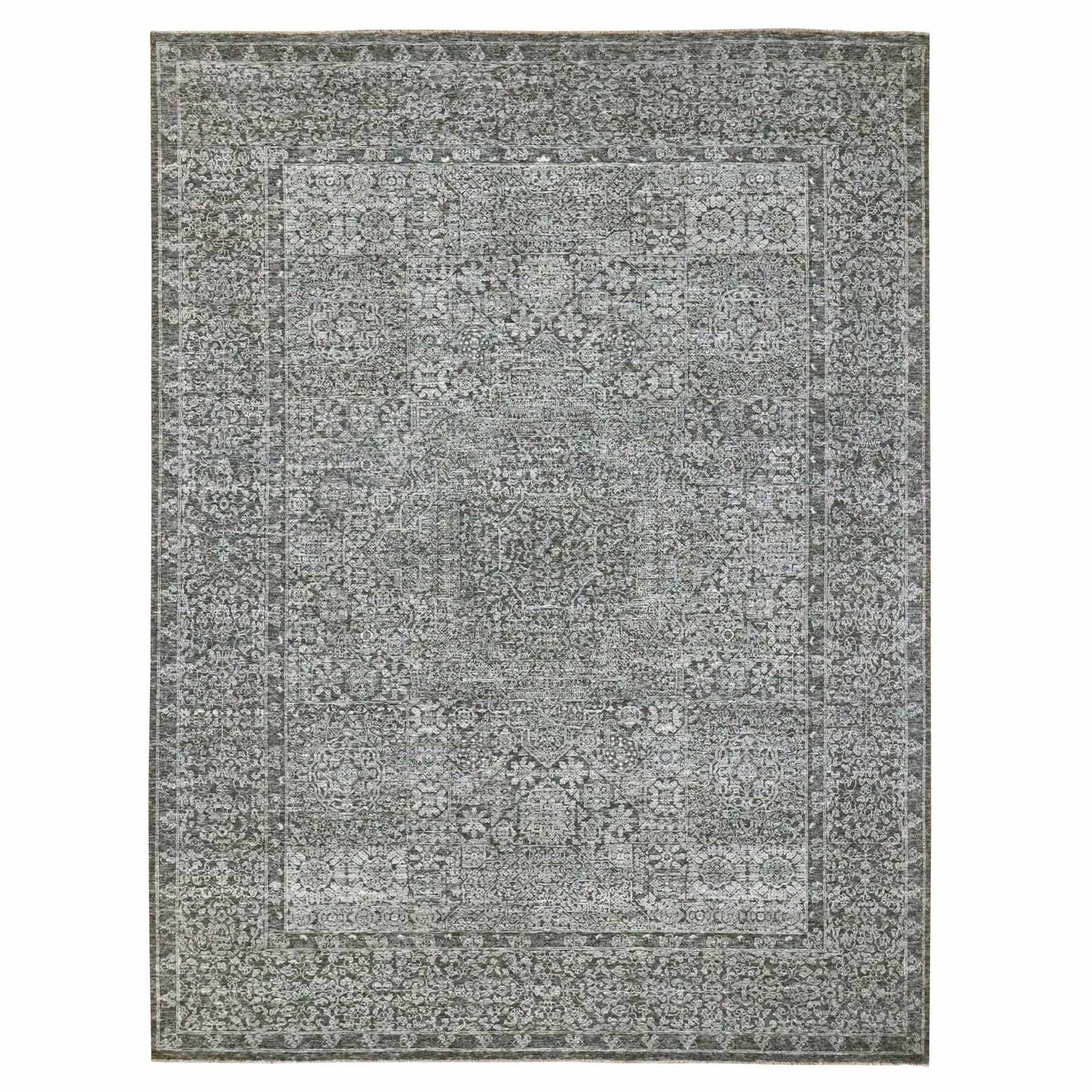 9'X12' Dove Gray Pre Historic Mamluk Design Hand Knotted Pure Wool Rug